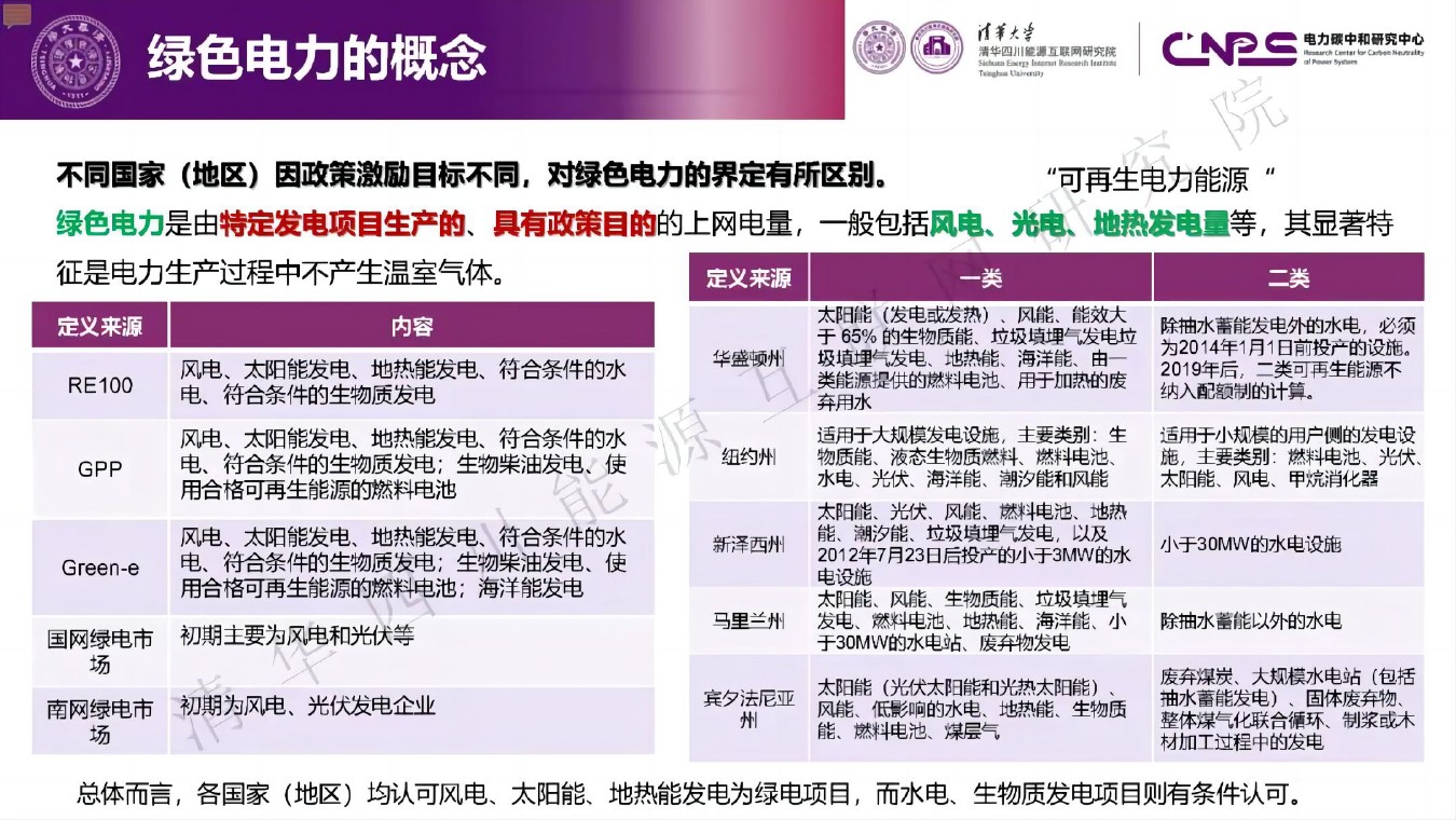 不同国家(地区)因政策激励目标不同,对绿色电力的界定有所区别。
