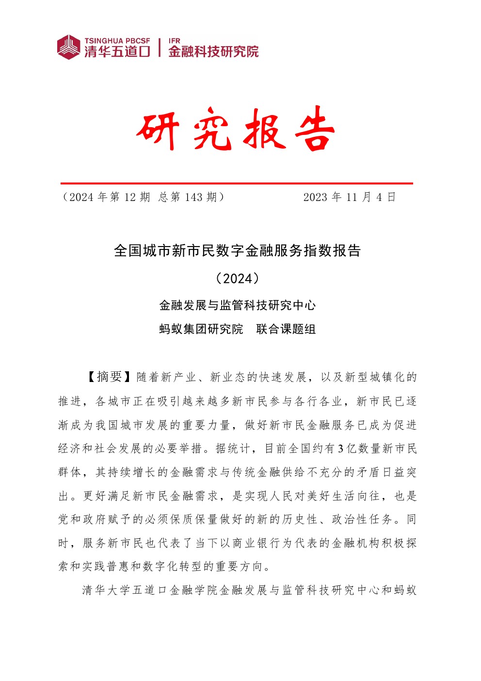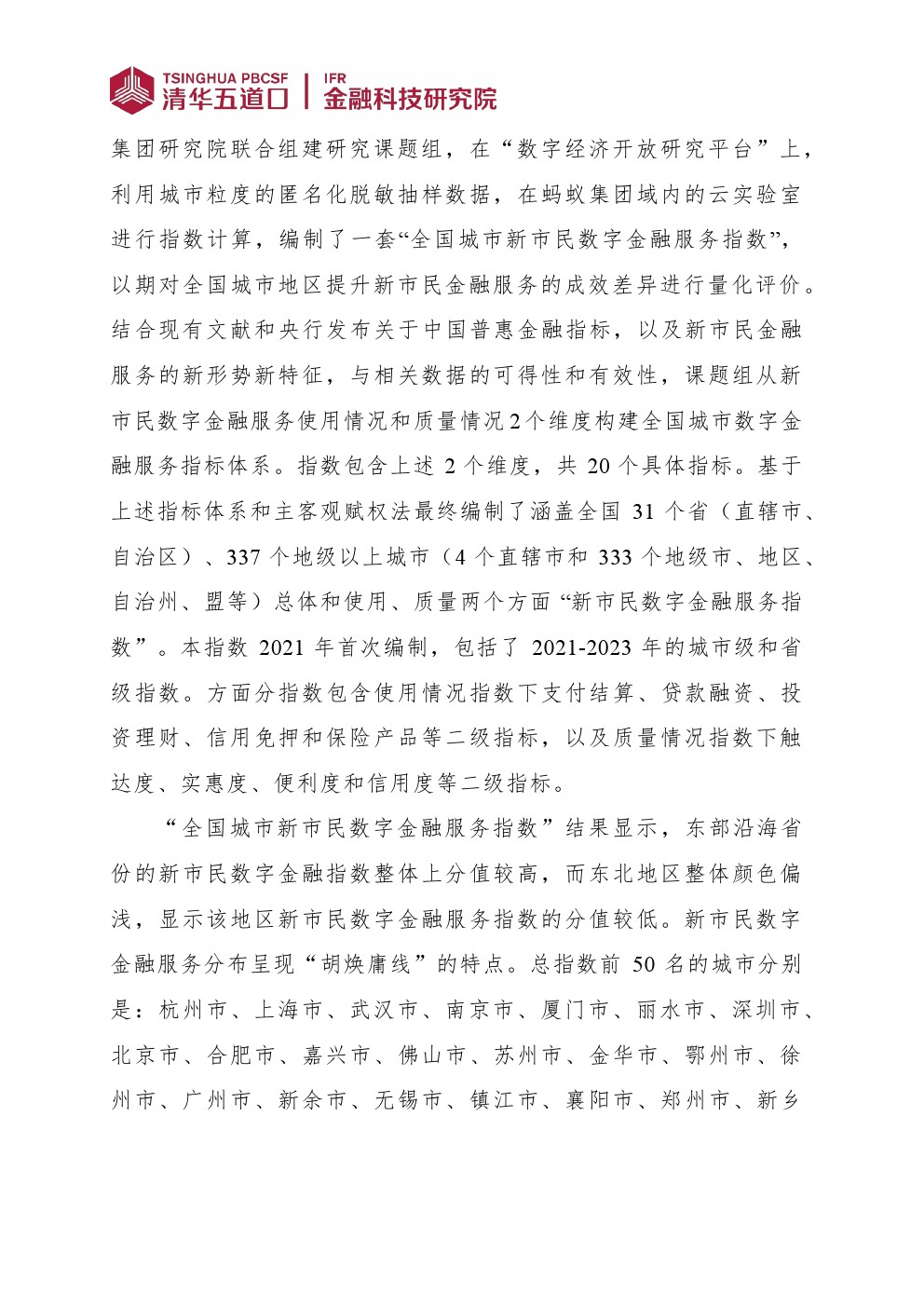 清华五道口:全国城市新市民数字金融服务指数报告(2024)