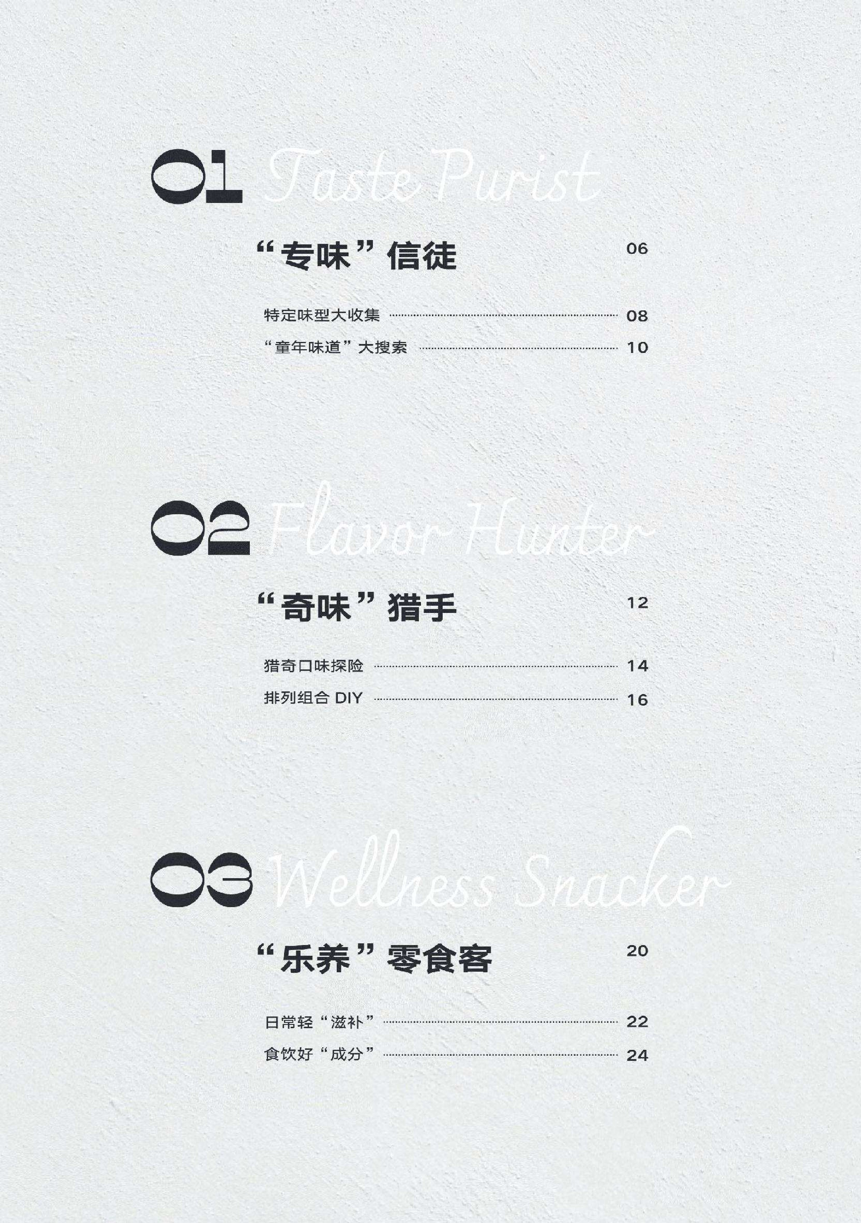 “专味”信徒TA 们是绝对的味蕾主义者TA 们有着固定的口味偏好,对品牌产品有着极高的忠诚度在众多纷繁复杂的口味中,对于口味的偏爱是 TA 们探索食物的风向标。