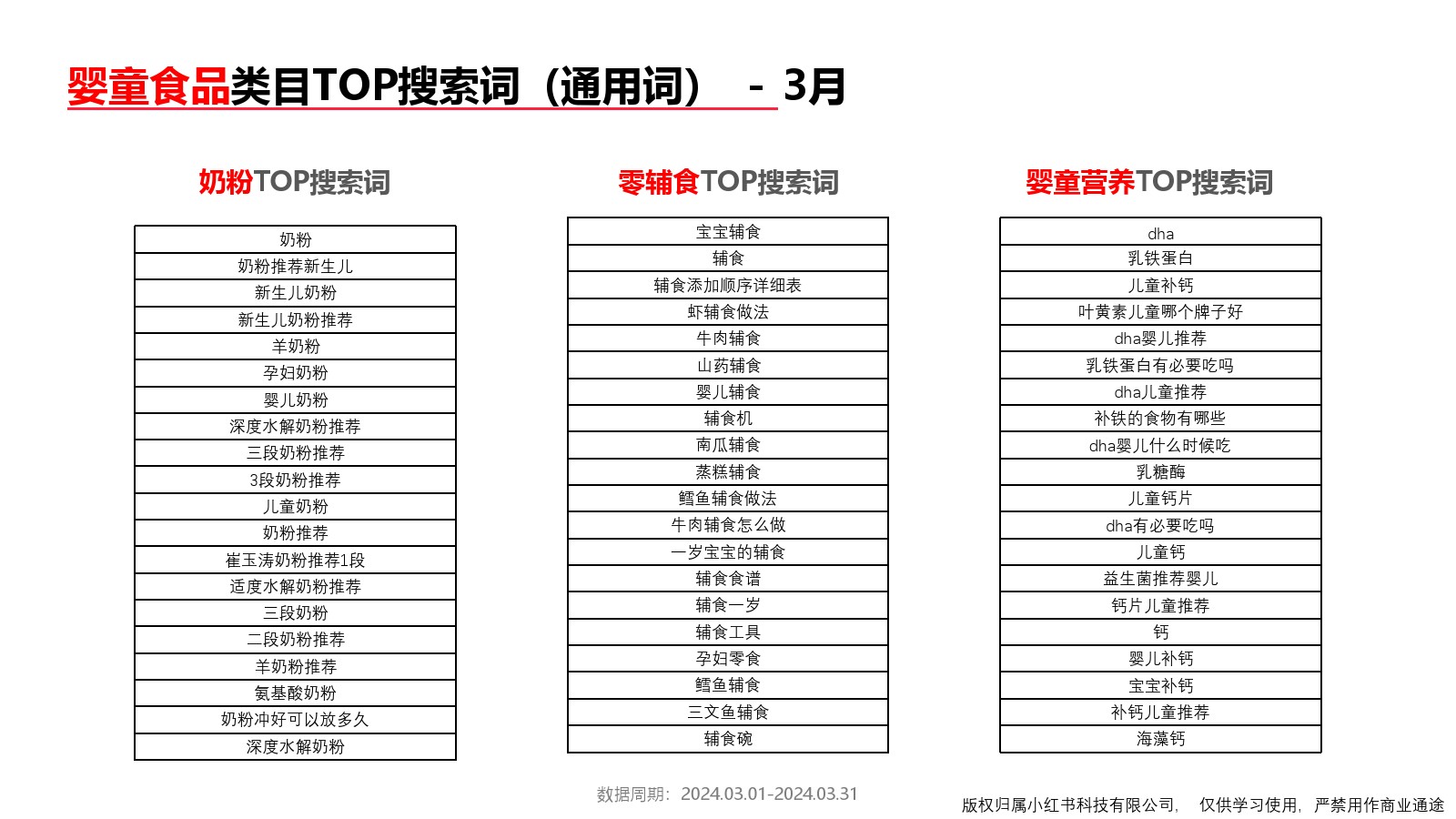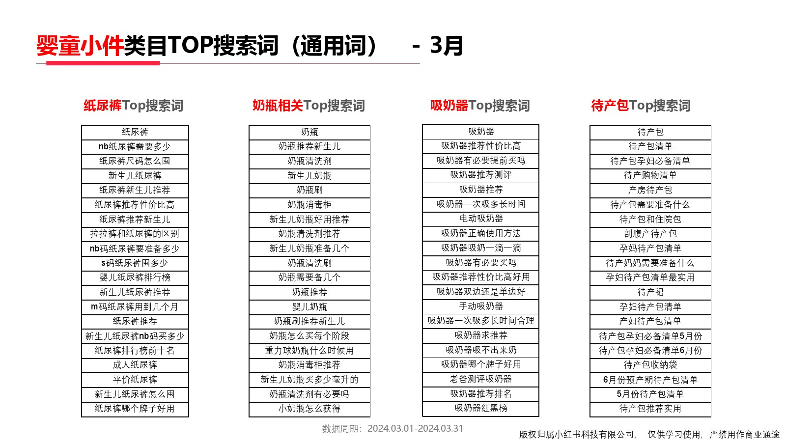 小红书:小红书2024年3月母婴行业月报