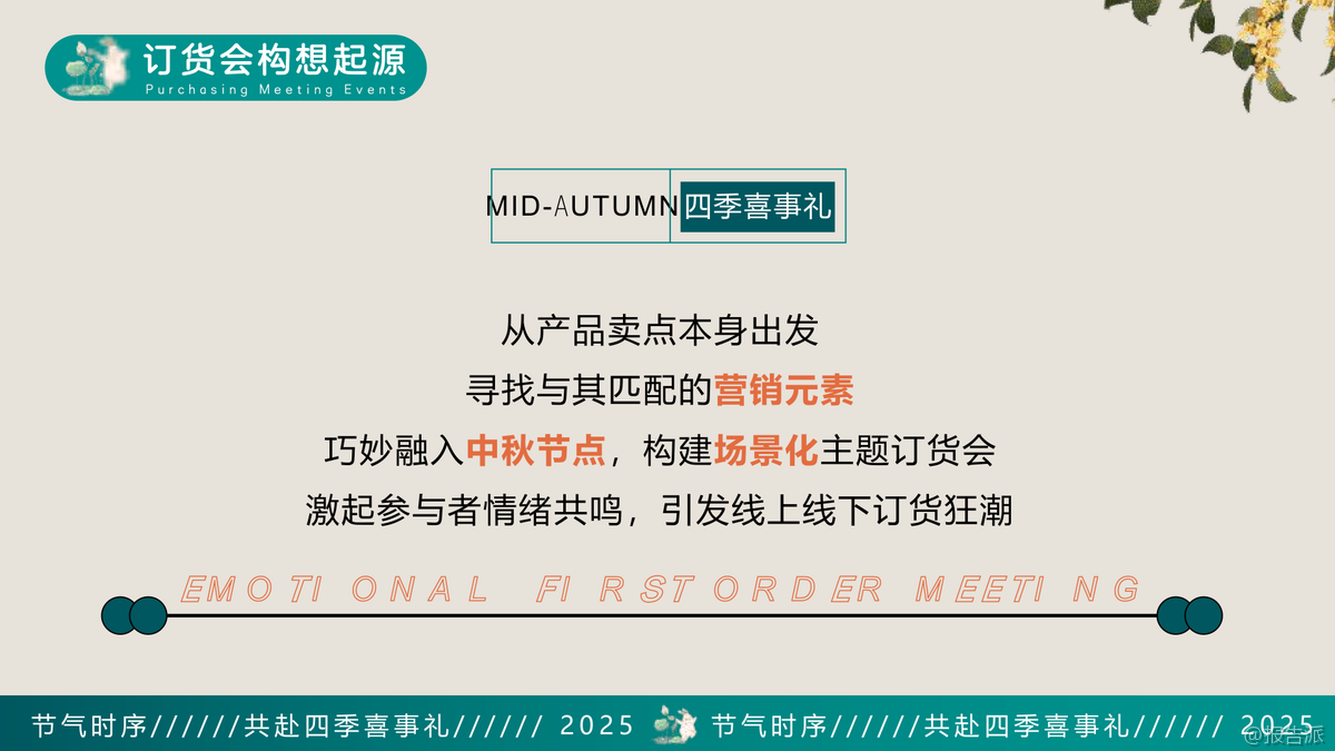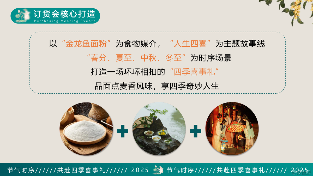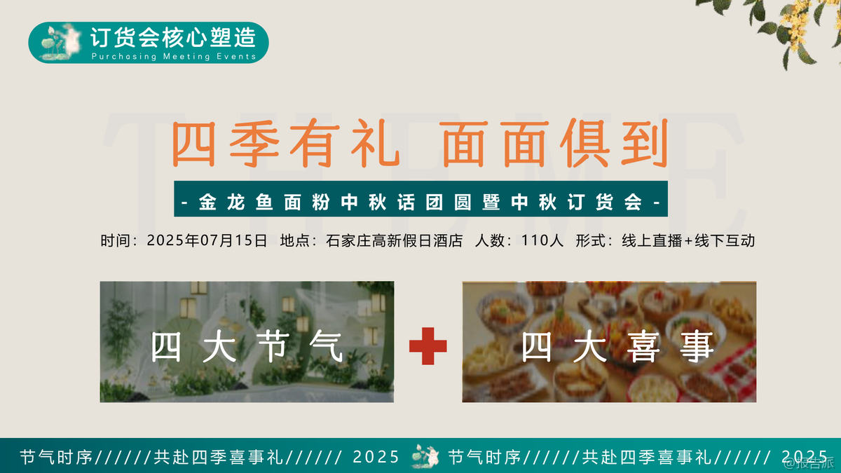| 要说今年最会搞事情的品牌,金龙鱼面粉这次真的杀疯了。 别人还在拼价格、打促销的时候,它直接把一场中秋订货会玩成了国风大秀,搞得像古代大户人家办家宴一样,仪式感拉满。 这哪是卖面粉?分明是在讲中国人一辈子的情感故事。 这场名为“四季有礼 面面俱到”的订货会,表面上是为了冲中秋销量,实际上是一次精准的情绪操控。 他们没干巴巴地念PPT讲KPI,而是用“人生四喜”当主线——孩提之喜、生辰之喜、他乡遇故知、归家话团圆,四个中国人骨子里最认的幸福瞬间,全被揉进了面粉里。 你说狠不狠?更绝的是,他们把这四喜跟二十四节气挂钩。 春分吃春卷、夏至吃长寿面、中秋吃月饼、冬至吃饺子,每一个都是中国人刻在DNA里的饮食密码。 金龙鱼就顺着这个节奏,拍了一堆剧情短片,告诉你这些传统美食,都离不开自家面粉。 这不是卖货,这是给你洗脑“没有金龙鱼,节日都不完整”。 现场更是整活拉满。 签到不是扫码,是拿毛笔在卷轴上题字,领个香囊进场,秒变古装剧NPC。 开场是河北非遗“休门吹歌”配国风舞蹈,领导穿春夏秋冬四季衣服上台念对联,仪式感直接顶到天花板。 中间还有非遗大师现场用金龙鱼健康新食面粉做河北特色月饼,边吃边下单,经销商嘴还没合上,单子已经签了。 抽奖也玩出了花。 夏至环节,领导亲自嗦一根超长的长寿面,咬断那一刻,大屏抽奖停住,谁中奖谁欢呼。 这种设计既搞笑又有寓意,谁不想自己也能这么“一口吃到福”?到了最后颁奖环节,走的是红毯,两边站着汉服侍女,颁的是“四喜印章”,奖品从戴森吹风机到飞天茅台、中国黄金金砖,直接让经销商感觉今天不是来开会,是来领年度奥斯卡。 你以为这就完了?他们还搞了“逐月而食”的概念,全场布置成月球表面,呼应中秋主题。 从饺子到面条再到月饼,所有情感都被具象成一顿饭。 说白了,金龙鱼想告诉所有人:无论你走多远,胃记得回家的路,而这条路,是由他们的面粉铺成的。 这场活动最狠的地方在于,它把一个原本枯燥的B端订货会,变成了有剧情、有温度、有记忆点的文化事件。 经销商不仅下了单,还记住了品牌。 别的品牌还在比谁返点高,金龙鱼已经用情感牌把你的心占了。 这波操作,属实是把“面粉”做成了“情面”。 要问2025年快消圈谁最懂中式浪漫?金龙鱼,实至名归。 出品方:金龙鱼 发布时间:2025年