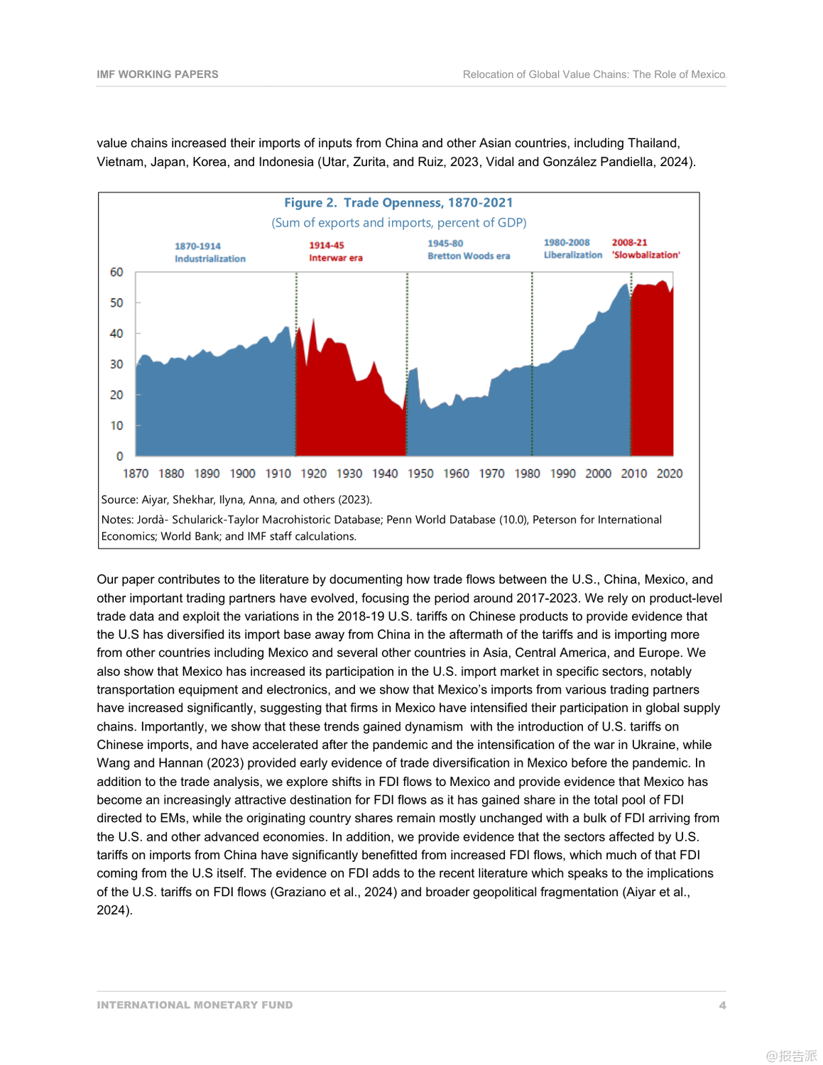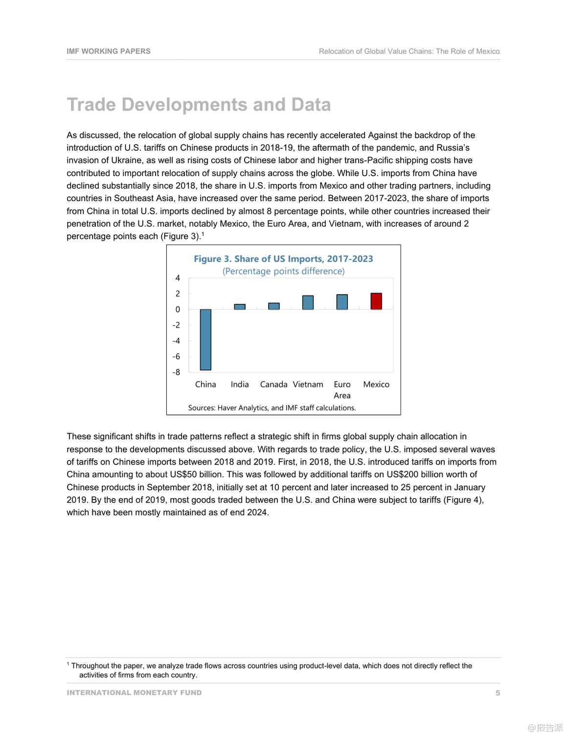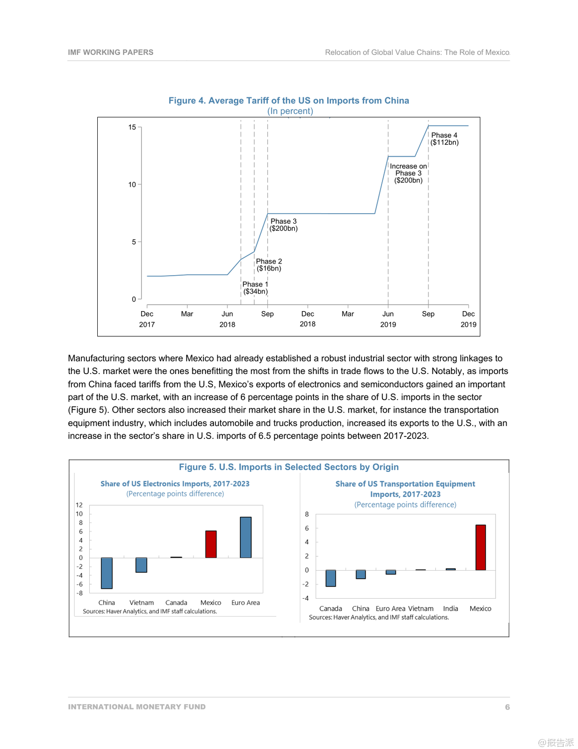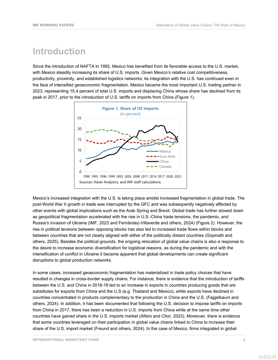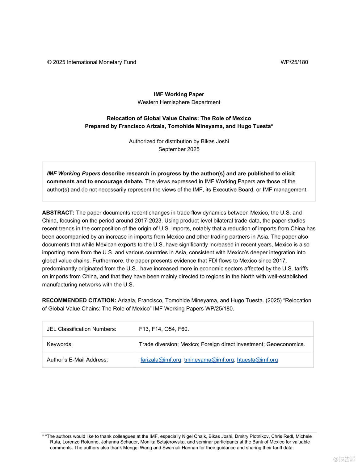| 家人们,谁懂啊?你以为中美贸易战打完就完了?结果现在最爽的竟然是隔壁老墨——墨西哥!最近国际货币基金组织(IMF)发布了一份重磅工作论文,标题叫《全球价值链的重新定位:墨西哥的作用》,看完只能说:这波地缘经济大洗牌,墨西哥简直是躺赢的节奏。 事情得从2017年说起。 那时候中美关系开始紧张,美国对中国商品一轮接一轮地加关税,最高干到了25%。 表面上看是两国掐架,但实际影响的是整个全球供应链。 企业一看:哎哟,从中国运货去美国越来越贵,那能不能换个地方生产?这时候,墨西哥的优势就炸裂了。 离美国近啊!陆路运输,今天下单明天就能进厂组装,比跨太平洋漂半个月香多了。 再加上早就有的NAFTA(现在叫USMCA)自贸协定,墨西哥产品进美国几乎零关税。 天时地利人和,你说谁能不心动?数据不会骗人。 IMF这份报告显示,2017到2023年这六年,墨西哥对美国出口直接暴涨了1630亿美元!什么概念?相当于每天多赚7500万美元。 而且不是随便什么货都涨,主要是美国自己制裁中国最多的那些领域——比如电子产品和半导体,份额直接涨了6个百分点;还有交通运输设备,也就是汽车和卡车,涨了6.5个百分点。 换句话说,美国一边喊着要“脱钩”中国,一边却把原本给中国的订单,悄悄转给了墨西哥。 更骚的操作还在后头。 你以为墨西哥只是个代工厂?错!它现在是“高级搬运工+本地加工王”。 虽然墨西哥对美出口猛增,但它从中国进口的中间品也大幅上升,光受影响的产品类别就增加了约140亿美元。 也就是说,很多中国生产的零部件先运到墨西哥,再贴个“墨西哥制造”的标签,堂而皇之地进入美国市场,完美避开高关税。 这背后,是大量外资,特别是美国资本,疯狂往墨西哥砸钱。 2023年墨西哥吸收的外国直接投资(FDI)占新兴市场的份额已经从十年前的6%飙到接近10%,其中四成来自美国。 这些钱主要流向哪儿?北部几个州,比如新莱昂、奇瓦瓦,全是靠近美国边境的制造业基地,建厂、扩产、搞园区,热火朝天。 有意思的是,墨西哥自己也在升级。 以前进口中国货主要是中间品,现在消费类和资本类商品也猛涨。 比如中国汽车品牌,这几年在墨西哥销量蹭蹭涨,直接抢了本土品牌的市场份额。 说明啥?墨西哥不仅是生产基地,也开始变成一个有购买力的消费市场了。 所以说,这哪是什么简单的“去中国化”?分明是一场全球产业链的“迂回战”。 中国企业也没闲着,不少已经在墨西哥设厂布局,提前卡位。 未来几年,墨西哥可能就是中美博弈之间那个最微妙、最关键的“缓冲带”。 结论就一句话:世界变了,供应链不会消失,只会换个姿势继续卷。 而这次,墨西哥,赢麻了。 出品方:IMF 发布时间:2025年 文档页数:31页