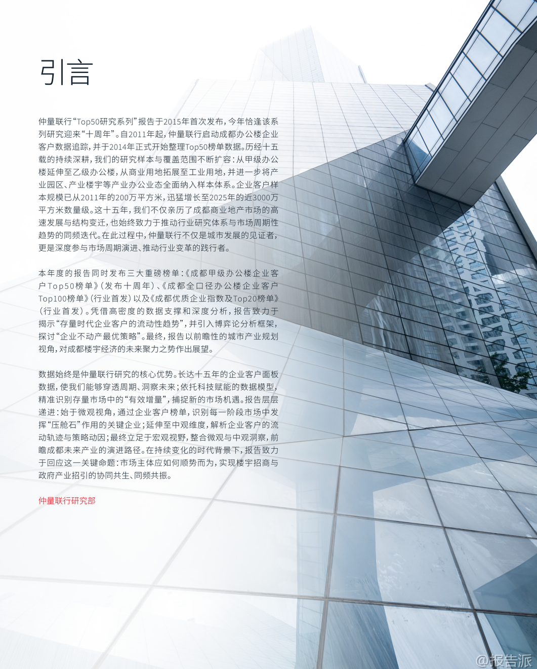 | 2025年,仲量联行发布了《成都办公楼企业流动研究报告》,正值其“Top50研究系列”十周年。 这份报告基于长达15年的企业客户数据追踪,覆盖面积从2011年的200万平方米增长至2025年的近3000万平方米,研究样本也从甲级办公楼扩展至乙级、产业园区、产业楼宇等全口径办公载体,构建了一个立体、动态的城市产业与空间互动图景。 报告首次发布三大重磅榜单:《成都甲级办公楼企业客户Top50榜单》、《成都全口径办公楼企业客户Top100榜单》以及《成都优质企业指数及Top20榜单》,标志着研究从微观企业行为、中观市场流动到宏观产业聚力的全面深化。 在微观层面,头部企业是市场穿越周期的“压舱石”。 2025年Top50榜单呈现“科技领航、金融压舱、国企固本”的格局。 华为首次登顶,彰显科技巨头的引领地位;平安保险及其金融科技公司分列二、八位,凸显金融企业的稳固实力;蜀道集团、四川金控等本土国企跻身前十,体现地方经济的根基。 榜单结构稳健,但流动性依然活跃,过去三年27家企业进出榜单。 流出主因是“自建总部”(30%)和“缩减面积”(31%),反映出总部经济分流租赁需求与企业降本增效的双重趋势。 流入新势力则呈现“科技赛道轮转、专业服务扩张、地方国企崛起”的特征,游戏出海、律所规模化、市属国企改革成为新动能。 报告创新性地发布“优质企业指数”,从规模性、极值性、趋势性、存续性四大维度,对12年来179家上榜企业进行综合评估。 结果显示,国央企凭借长期稳定的租赁策略成为市场“最优客户”,科技互联网与医药生命科学紧随其后,成为未来需求的着力点。 这一指数为业主方提供了科学招商的决策工具,助力从“被动去化”转向“主动引流”。 中观层面,企业流动性是市场去化与租金的生命线。 2022-2025年数据显示,企业搬迁的首要动因是“降级”和“缩减”,但“降级”比例呈下降趋势,反映出企业不动产策略正从简单的成本控制,转向在品质、效率与成本间的“新平衡”。 企业通过搬迁实现平均16.4%的租金降幅,其中科技互联网行业降幅最大(-22.7%),而专业服务等行业因业务粘性,租金降幅最小。 地理上,“企业南迁”趋势显著,高新南区(大源、金融城)成为核心磁极,而市中心、人民南路等传统商务区面临净流出压力。 企业还表现出强烈的“新楼偏好”,迁入楼宇平均比迁出楼宇新1.15年,且偏好度逐年提升,凸显楼宇品质代际差的竞争优势。 面对市场租金“螺旋式”下跌的预期,报告引入博弈论分析,指出业主“不降租”的威胁是“不置信威胁”。 在空置率高企的背景下,企业主动释放搬迁信号,通过“租约重组”谈判,往往能实现续租降租的“双赢”。 专业的第三方机构在此过程中扮演“粘合剂”角色,帮助企业实现“降本增效”的最优策略。 宏观层面,报告将企业流动置于成都“9+9+10”现代化产业体系的宏大叙事中。 约51.2%的楼宇存量需求与政府规划的前两大产业集群(9大优势+9大新兴)相关,验证了产业与空间的同频共振。 在优势产业集群中,半导体产业链的分析揭示了上、中、下游环节截然不同的空间偏好:上游研发扎堆大源,偏好新楼宇;中游制造看重高新西区的高规格硬件;下游应用则青睐金融城的区位优势。 这为“产业链-载体-区位”的精准匹配提供了方法论。 对于九大战略新兴产业,报告发现其共性是“租金敏感、预算硬约束”,平均租金仅55.4元/㎡/月,普遍“重研发、轻办公”。 但个性差异显著,地理上形成“大源核心+多极协同”格局,功能上对无尘车间、防爆实验室等特殊空间有定制化需求。 这要求载体开发从标准化走向“微定制”,实现普适性与适配性的平衡。 展望十大未来产业(如人形机器人、飞行汽车),其“强研发”属性将彻底重构空间需求,楼宇需从“地产开发商”转型为“产业服务商”,提供高品质、灵活性、生态化的创新社区,实现资产价值的“穿越周期”。 总而言之,这份报告揭示了成都楼宇经济已进入存量时代,核心逻辑从“增量开发”转向“生态运营”。 市场主体需深刻理解头部企业的“进退”、把握企业流动的“新平衡”、前瞻产业跃升的“聚力之势”,方能在空间博弈中赢得未来。 本文由【报告派】研读,输出观点仅作为行业分析! 原文标题:2025-09-30-仲量联行-房地产行业2025年成都办公楼企业流动研究报告:企业流动视角下的产业跃升与空间博弈 发布时间:2025年 报告出品方:仲量联行 文档页数:56页