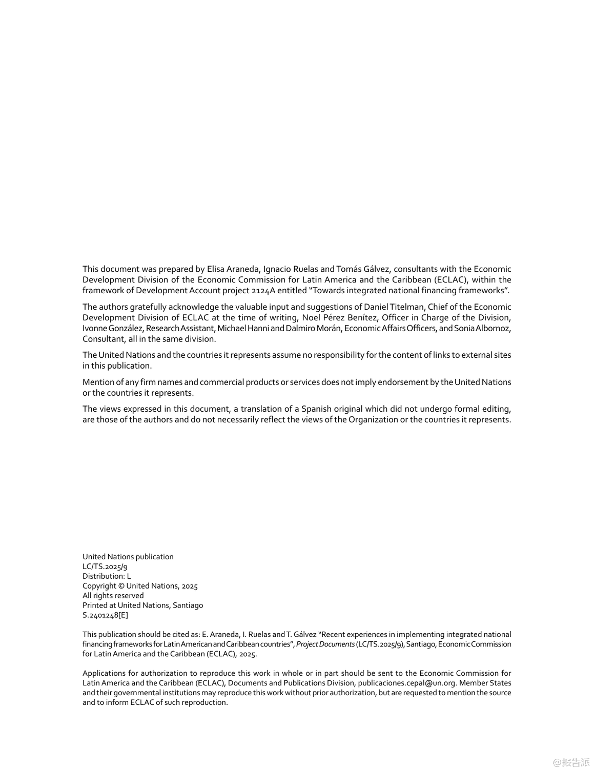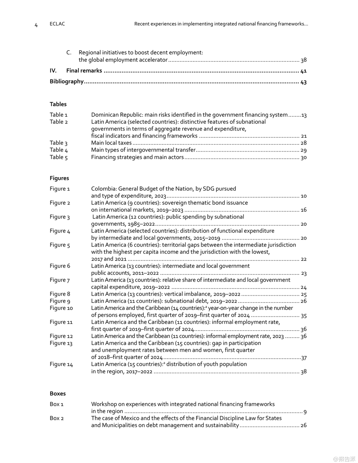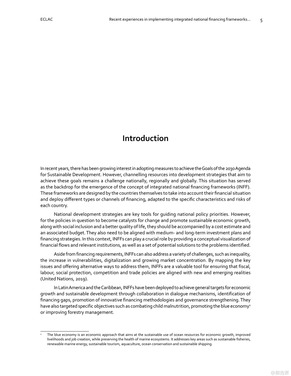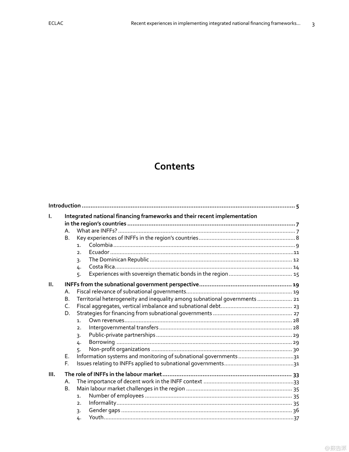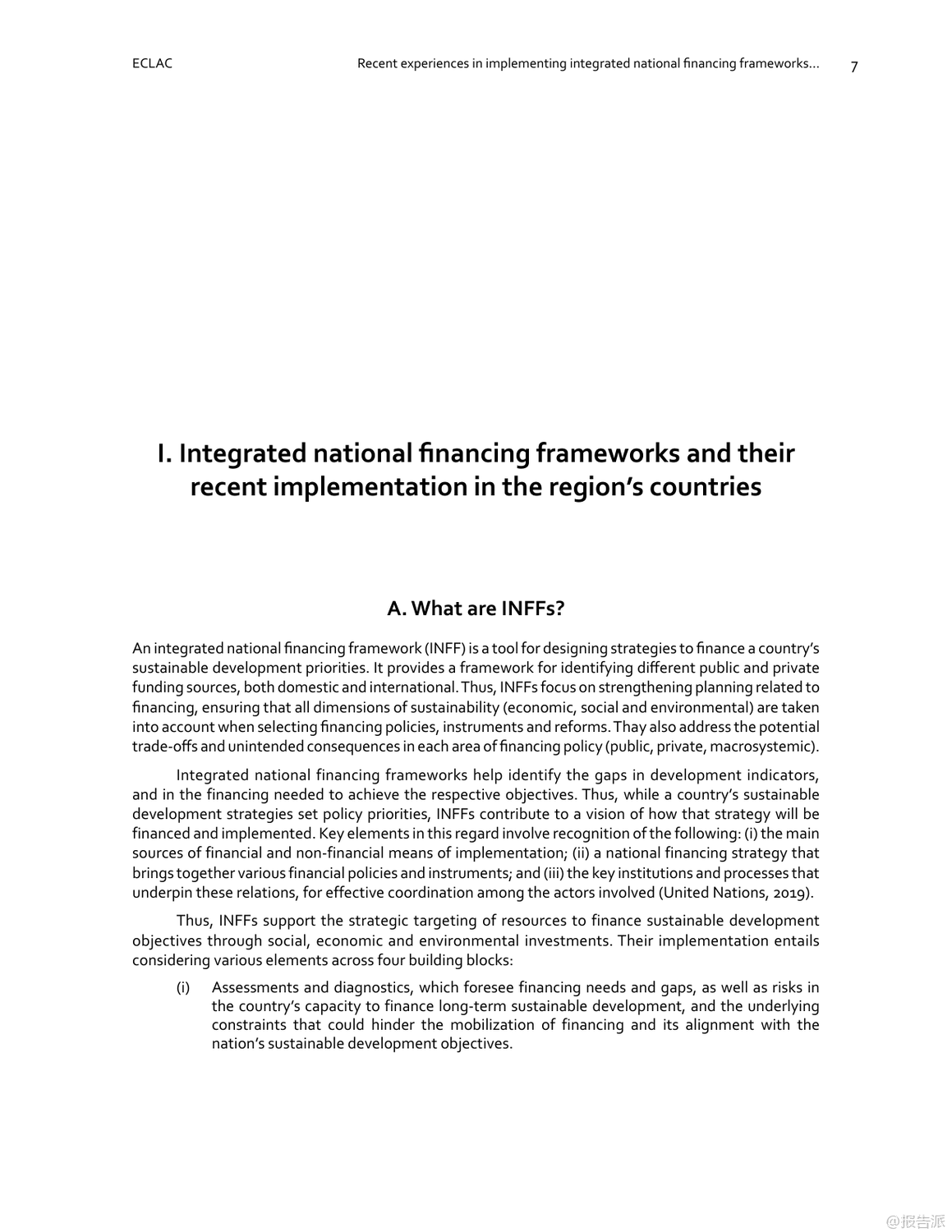 | 近期,联合国拉丁美洲和加勒比经济委员会(ECLAC)发布了一份关于区域国家实施综合国家融资框架(INFF)的最新经验报告。 该报告系统梳理了哥伦比亚、厄瓜多尔、多米尼加共和国和哥斯达黎加等国在推动可持续发展目标(SDGs)融资方面的实践,揭示了INFF作为政策工具在统筹财政资源、促进跨部门协作和提升发展透明度方面的关键作用。 INFF是一种由各国自主设计的融资战略框架,旨在整合公共与私人、国内与国际资金来源,确保财政政策与经济、社会和环境可持续性目标相一致。 其核心包括四大支柱:评估诊断、融资策略、监测审查机制以及治理协调体系。 这一框架不仅帮助识别发展指标与资金需求之间的差距,还强化了政策执行的系统性和前瞻性。 在具体实践中,哥伦比亚走在前列。 该国自2020年起推行预算标签制度,将国家预算与全部169项全球SDG目标对齐。 数据显示,2023年其总预算中高达89.2%的资金用于实现SDGs,其中和平正义、减少不平等、健康福祉和优质教育是重点投入领域。 此外,哥伦比亚还通过发行主权绿色债券筹集超19亿美元,并开发了“SDG投资者地图”和“企业追踪器”等工具,引导私营资本参与可持续投资。 多米尼加共和国则聚焦于国家发展战略的长期融资规划。 通过成本测算与缺口分析,该国识别出教育、医疗、水资源和气候韧性等优先领域的资金瓶颈,并探索绿色债券、债务换自然、 diaspora融资等创新工具。 2024年6月,该国成功发行7.5亿美元绿色主权债券,用于低碳交通和水资源管理项目,标志着其在可持续金融领域的实质性突破。 值得注意的是,次国家级政府在落实SDGs中扮演着关键角色。 拉美地区次级政府支出占总体公共支出约四分之一,尤其在教育、卫生等领域承担主要责任。 然而,普遍存在财权与事权不匹配、横向财政失衡及数据透明度不足等问题。 为此,报告建议加强地方税收能力建设、优化转移支付机制、拓展公私合作(PPP)与地方债务市场,并建立统一的信息监控系统以提升问责能力。 劳动市场方面,INFF也被视为推动体面就业的重要抓手。 拉美面临高非正规就业率(2024年一季度约46%)、性别参与差距(女性参与率低23个百分点)和青年失业等结构性挑战。 报告指出,通过INFF可系统整合就业政策、社会保障与技能培训资源,支持如“全球体面就业加速器”等多边倡议,构建从人力资本投资到生产率提升的良性循环。 综上所述,INFF不仅是融资工具,更是推动政策协同与制度变革的平台。 它要求各国强化顶层设计,打通中央与地方、政府与市场之间的壁垒,从而为实现2030议程提供坚实的资金保障与发展路径。 出品方:ECLAC 发布时间:2025年 文档页数:45页