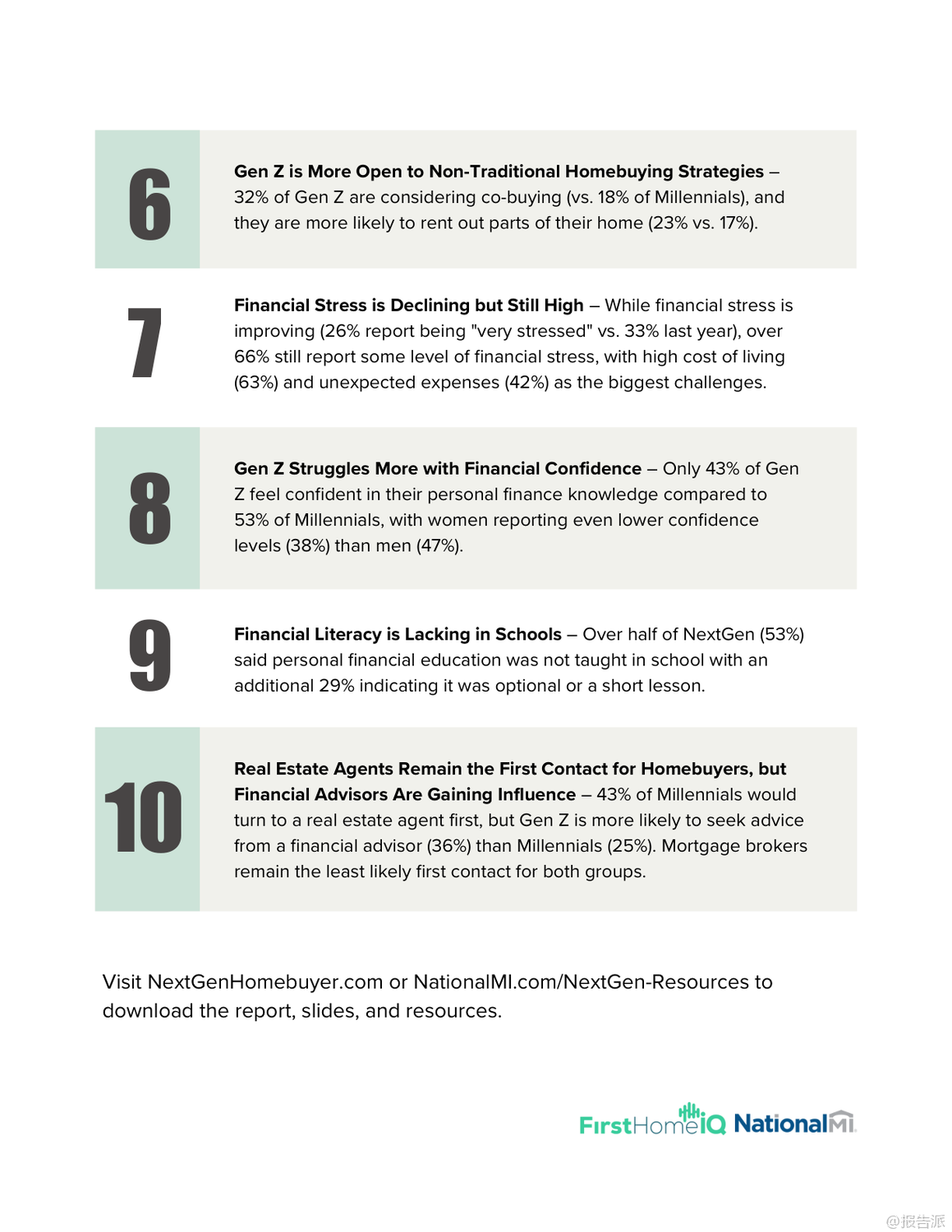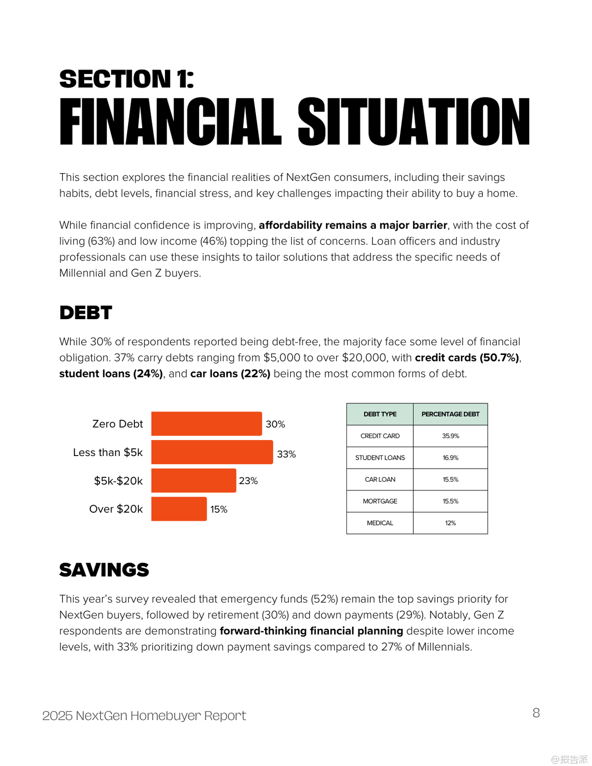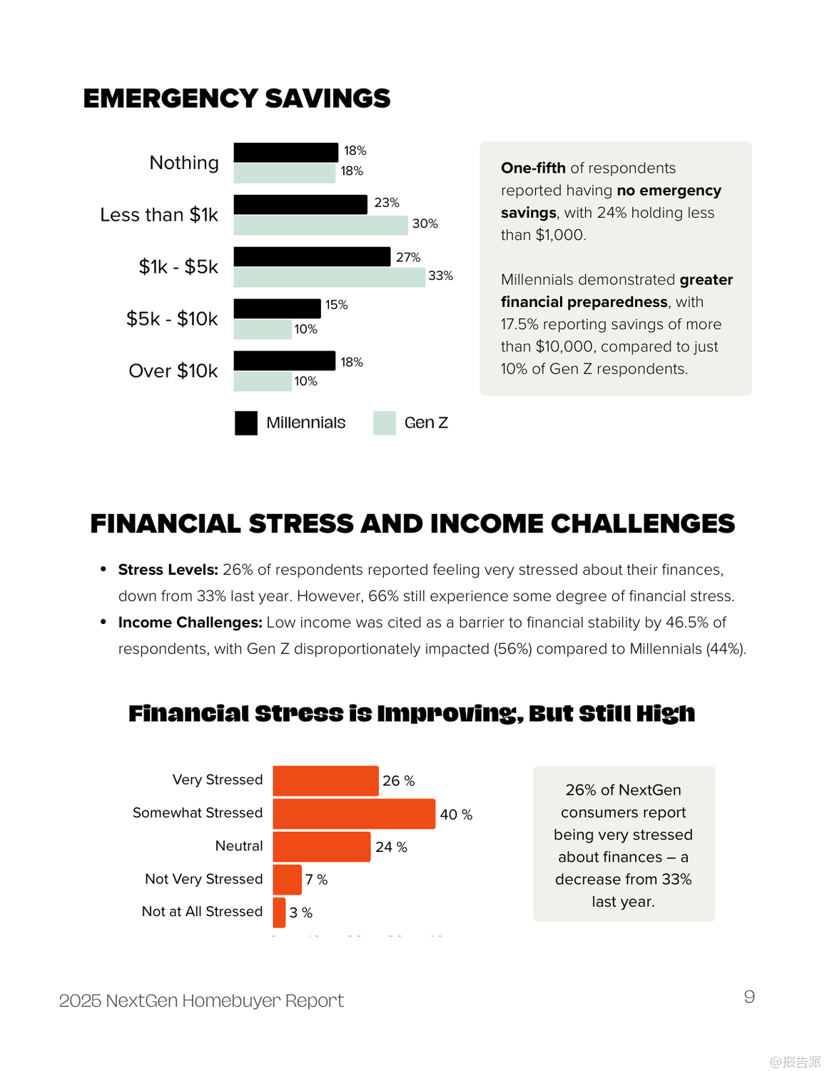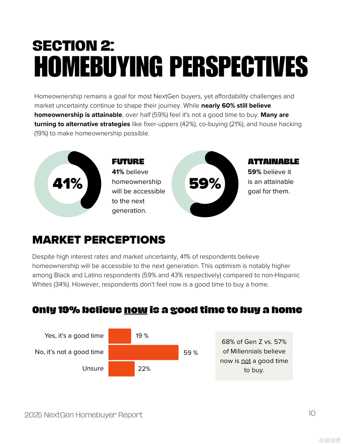 | 2025年新生代购房者报告揭示了当前Z世代与千禧一代在购房路上的真实图景。 这份由FirstHome IQ联合National MI发布的年度调研,基于对1000名18至44岁人群的深度调查,呈现了一个充满挑战、信任危机与创新应对策略的住房市场新生态。 报告显示,尽管高达95%的年轻人都将拥有自己的房子视为人生目标,但现实的压力让仅有约六成(59%)的人认为买房是可实现的,更有高达59%的受访者认为当前并非购房良机。 高企的生活成本成为最大拦路虎——69%的受访者将其列为阻碍购房的主要因素,紧随其后的是低收入(47%)、未来不确定性(39%)和现有债务负担(35%)。 财务压力虽有所缓解,但仍不容忽视。 2025年表示“非常焦虑”的年轻人比例从去年的33%降至26%,但仍有超过三分之二的人存在不同程度的财务困扰。 储蓄方面,应急基金仍是首要目标(52%),而为首付存钱的比例仅为29%。 值得注意的是,Z世代在财务规划上展现出前瞻性,33%的Z世代优先考虑首付储蓄,高于千禧一代的27%。 最令人警醒的趋势是信任体系的崩塌。 对银行的信任度从2024年的61.5%骤降至2025年的40%,而对贷款专员的信任更是跌至惊人的19.5%。 这种系统性不信任源于年轻一代成长过程中经历的多次经济动荡与机构失信事件。 他们不再盲目依赖传统专业人士,转而寻求更自主的信息渠道。 信息获取方式正经历革命性变化。 YouTube以66%的使用率成为最受欢迎的购房教育平台,其中Z世代使用率高达74%。 社交媒体也成为重要阵地,40%的Z世代通过社交平台获取购房信息,远超千禧一代的30%。 更具颠覆性的是AI工具的崛起——35%的受访者使用ChatGPT等AI进行信息查询,Z世代使用率高达43%。 这标志着年轻买家正利用技术主动掌控决策过程。 面对高昂房价,新一代购房者积极采用非传统策略。 42%考虑购买“老破小”翻新,21%探索共同购房,19%尝试“房屋套利”(house hacking)。 Z世代尤为激进,考虑合买的比例达32%,比千禧一代高出78%。 此外,35%的年轻人关注房产的创收潜力,如出租房间,显示其购房动机兼具居住与投资双重属性。 报告还揭示了显著的群体差异。 黑人和拉丁裔受访者对未来住房可及性表现出更高乐观度,但历史上系统性歧视导致的信息网络薄弱和专业指导获取障碍依然存在。 女性购房比例高,但金融自信明显低于男性(38% vs 47%),她们更依赖Zillow等平台和专业顾问,体现了一种“谨慎而周全”的决策风格。 综上所述,2025年的新生代购房者是一群理想未灭却深谙现实、渴望自主又缺乏信任的复杂群体。 他们用技术创新弥补知识鸿沟,以合作模式对抗高房价,用务实策略追求安居梦。 对于行业而言,重建信任、拥抱数字渠道、提供灵活产品并推动金融教育普及,是赢得这一代人的关键所在。 出品方:FirstHome IQ 发布时间:2025年 文档页数:26页