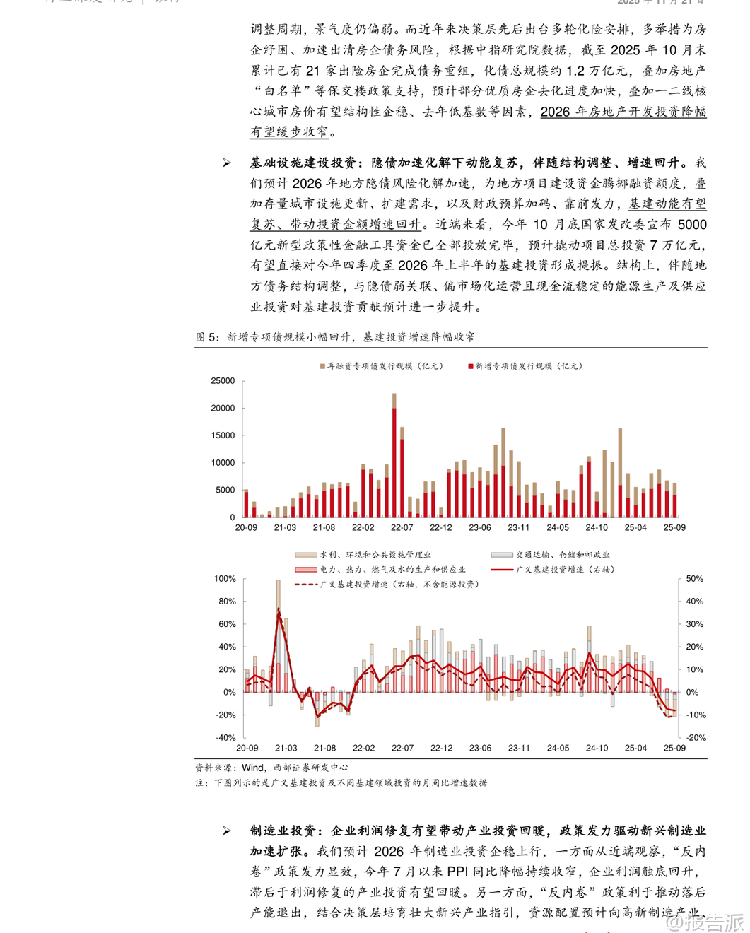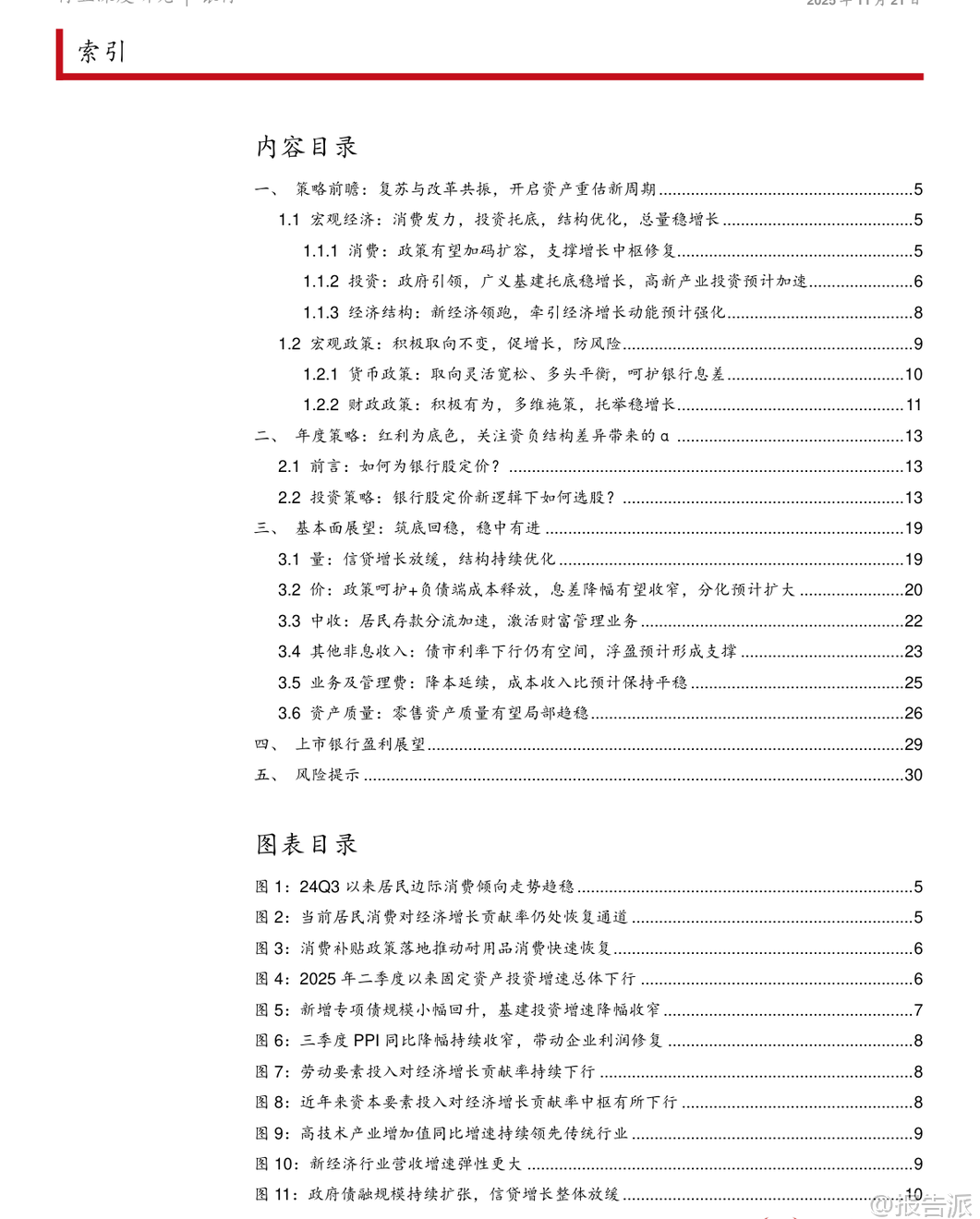 | 2026年银行业投资策略的核心逻辑正在发生深刻转变。 根据西部证券最新发布的《银行业2026年度策略》报告,银行股的定价权正逐步从短期业绩弹性的追逐者,转向由中长期资金主导的价值确定性逻辑。 这一变化背后,是险资、社保基金等稳健型机构投资者加速入市,以及国有控股背景下市场风格的结构性迁移。 在此背景下,红利成为银行股配置的底色,而真正能带来超额收益(α)的关键,则在于不同银行间资负结构的差异化优势。 展望2026年,宏观政策将继续保持积极取向,以稳增长为核心目标。 货币政策预计维持适度宽松,但全面降息空间有限,更多通过结构性工具调节流动性;财政政策则将发挥更大作用,广义财政温和扩张,靠前发力,并可能在外部需求承压时通过增发特别国债等方式进一步拉动内需。 政府投资尤其是广义基建和高新技术产业投资将成为托底经济的重要力量。 同时,消费端有望在政策加码下逐步修复,居民边际消费倾向已趋稳,耐用品消费受补贴政策推动明显回暖。 整体经济环境将为银行业的稳健经营提供坚实基础。 基本面方面,上市银行业绩预计将呈现“筑底回稳、稳中有进”的态势。 信贷规模增长方面,企业投资回暖有望带动对公贷款增速回升,但零售信贷需求复苏仍显缓慢,因此全年信贷增量预计与2025年基本持平。 净息差表现备受关注,报告认为2026年息差收窄幅度将进一步收窄,主要得益于负债端成本释放及政策对银行合理利润空间的呵护,但银行间的分化将加剧,具备低成本存款优势或资产结构调整能力强的银行更具韧性。 非利息收入将迎来修复窗口期。 一方面,居民存款分流趋势加快,财富管理业务迎来发展机遇,中间业务收入有望稳步回升;另一方面,在债市利率“易下难上”的判断下,银行有动力择机增配固收类资产,并通过捕捉交易机会增强债券组合盈利能力。 此外,兑现投资账户浮盈也有助于平滑整体投资收益波动。 成本端则延续降本增效趋势,业务及管理费用占比预计保持平稳。 资产质量方面,整体账面不良率有望保持稳定。 尽管居民部门杠杆率仍处高位,但偿债压力已显著缓解——过去两年人均利息支出占收入比累计下降6个百分点至10.4%,且居民储蓄增速持续高于信贷增速,存贷比回升至接近2016年水平,形成对还款能力的有效支撑。 零售类资产质量局部趋稳迹象显现,信用卡、消费贷等不良生成压力有望持续缓解。 对公领域不良率延续下行趋势,信用成本预计同比下降。 基于上述判断,报告提出“一基两线”的核心投资策略。 “一基”即优先选择具备低资产风险特征的优质银行作为配置基石;“两线”则是在此基础上进行优中选优:第一条是“红利扩张主线”,聚焦那些经营策略契合政策导向、盈利具备高增长潜力并能带动股息提升的银行,推荐杭州银行,建议关注宁波银行、青岛银行、重庆银行;第二条是“红利持续主线”,关注能够长期稳定提供较高股息回报、具备逆周期调节能力的银行,建议关注中银香港(H)、中信银行(H)、建设银行(H)以及招商银行。 总体来看,2026年银行板块的投资逻辑已从“高增长预期”转向“高确定性分红”。 在宏观经济温和复苏、政策托底明确的环境下,银行股的估值锚正由息差弹性转向资负结构所决定的盈利稳定性。 对于投资者而言,应重点关注那些资产质量扎实、负债结构优化、分红能力强的优质标的,把握行业分化背景下的结构性重估机遇。 本文由【报告派】研读,输出观点仅作为行业分析! 原文标题:原文标题:2025-11-21-西部证券-西部证券-银行业2026年度策略:红利为底色,关注资负结构差异带来的α 发布时间:2025年 报告出品方:西部证券 文档页数:30页