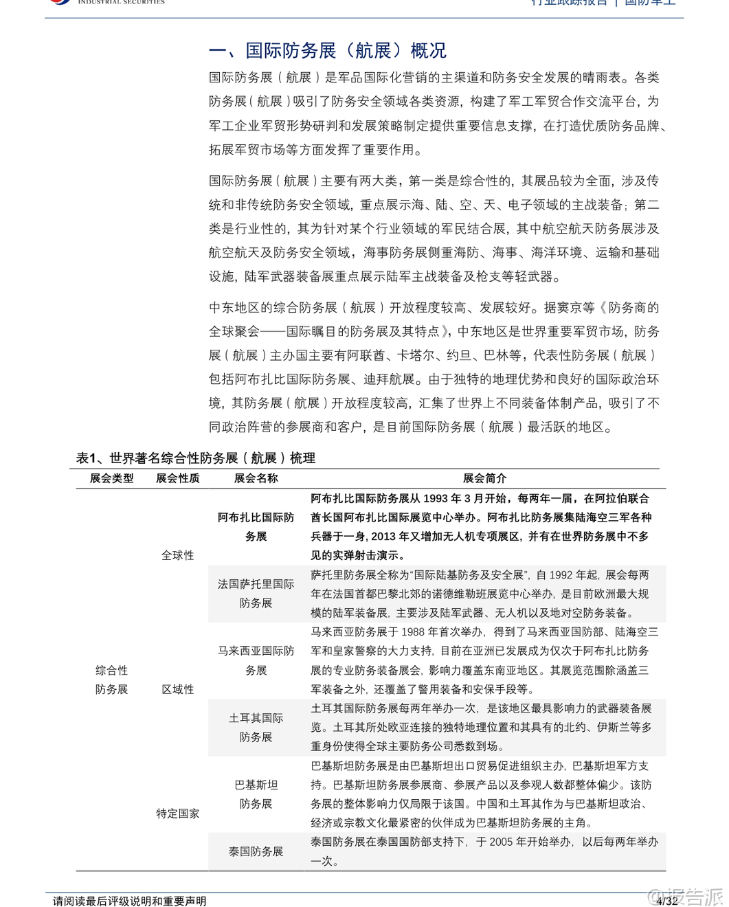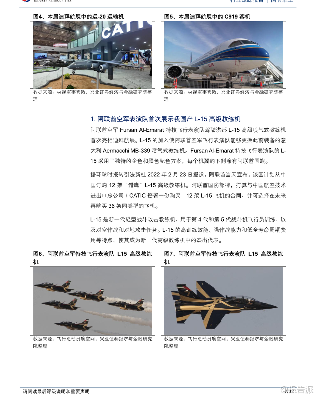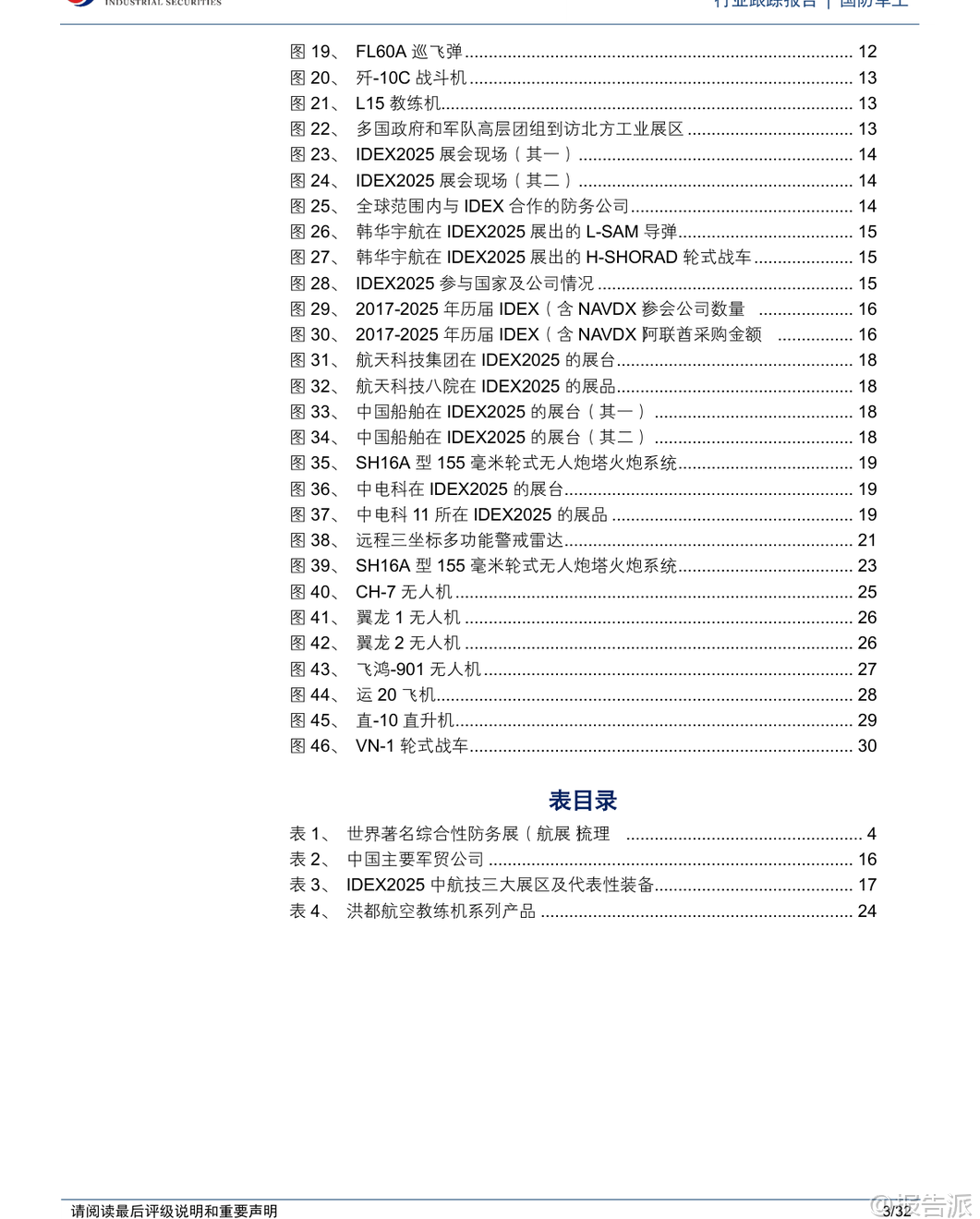 | 第19届迪拜航展于2025年11月17日至21日在迪拜世博城举行,作为全球发展最快的航空防务展会之一,本届航展吸引了来自全球1500余家航空航天企业与机构参展,展出超过200架商用、军用飞机及无人飞行器,成为国际防务合作与技术交流的重要平台。 中东地区凭借其独特的地理优势和中立的政治环境,已成为全球军贸市场最活跃的区域之一,阿布扎比国际防务展(IDEX)与迪拜航展共同构成了该地区两大核心防务展览体系。 本次迪拜航展亮点纷呈,中国展团实现多项“首次”突破。 洪都L-15高级喷气式教练机首次亮相并由阿联酋空军Fursan Al-Emarat特技飞行表演队进行展示,标志着我国高端教练机成功进入中东市场。 C919大型客机首次在中东地区公开展示,彰显国产民机国际化进程加速。 翼龙-X无人机首次以1:1全尺寸模型形式在境外静态展出,代表我国高端察打一体无人机技术水平获得国际关注。 此外,中国航发以“‘中国心’与世界同行”为主题首次独立参展,集中展示了“太行”发动机、AES100等19型动力产品,是我国国产航空发动机在海外展出谱系最全、内容最丰富的一次。 商业航空与低空经济成为本届航展重要看点。 阿联酋航空宣布将在未来几年内为其全部232架现役机队部署Starlink高速Wi-Fi服务,参观者可在波音777-300ER上亲身体验空中互联网。 美国Joby Aviation的S4 eVTOL电动垂直起降飞行器在航展期间进行静态与飞行演示,并计划于2026年在阿联酋获得认证投入使用。 Skyports公司已与阿布扎比合作开发商业垂直起降机场网络,首批两个站点预计2026年初建成,为未来城市空中交通商业化奠定基础。 回顾上届2023年迪拜航展,总签约额达1010亿美元,同比增长29.49%,创下历史新高。 中国参展企业主要为中航技和北方工业,中航技展出了运-20BE大型运输机、AR-2000大型无人直升机等多款主力机型,均为首次亮相;北方工业则重点展示了火箭炮、巡飞弹、制导弹药等地面装备体系。 中国空军八一飞行表演队换装歼-10C后首次海外亮相,同时枭龙Block3战斗机也完成国际首秀,展现我国多用途战机出口竞争力。 阿布扎比国际防务展(IDEX)同样是中东最具影响力的综合性防务展。 2025年2月举办的IDEX2025为历届规模最大,汇聚了来自65个国家的1565家企业,其中731家为首度参展。 阿联酋本土采购总额达251.5亿迪拉姆(约68.53亿美元),同比增长7.75%。 我国9家军贸公司以“中国军工”国家展团形式集体亮相,涵盖隐身战斗机、察打一体无人机、新型防空导弹、模块化装甲车及轻武器等多个领域,全面呈现智能化、无人化发展方向。 中航技在IDEX2025设立三大展区:“无人智战,精确打击”展出旋戈-2000无人直升机;“攻防一体,制胜空天”聚焦FC-31隐身战斗机、歼-10CE、运-20、L15等主战装备;“飞发一体,携手出海”联合中国航发展出“太行”、AEP-100B等五型发动机,体现动力系统自主化进程。 长征国际展出CH-9长航时无人机、HHQ-10E舰空导弹等明星产品。 中国船舶集团展出虎鲸号无人作战艇(JARI-USV-A),排水量约420吨,具备超视距火力打击、反潜攻潜能力,配置通用垂发系统可发射多种导弹。 北方工业推出SH16A型155毫米轮式无人炮塔火炮系统,配备智能火控与模块化装填装置,支持远程操控与协同作战,已完成研制可随时量产。 上市公司方面,报告建议关注中航沈飞、洪都航空、中航成飞、中航西飞、中直股份、国睿科技、航天南湖、航天电子、中无人机、航天彩虹、高德红外、内蒙一机等具备军贸潜力的企业。 需注意的是,军贸业务受进口国政治、经济、财政状况及第三方干预影响较大,谈判周期长、不确定性高,且订单存在被延期、取消或无法回款的风险。 国内军工企业利润模式与国际同行存在差异,主要通过军贸公司对接外方客户并管控风险。 总体来看,迪拜航展与阿布扎比防务展已成为观察全球防务格局演变的重要窗口。 中国军工企业正加快“走出去”步伐,在无人机、教练机、运输机、雷达、动力系统等领域取得实质性突破,逐步构建起覆盖海陆空天电的完整出口体系。 随着“一带一路”沿线国家装备升级需求上升,我国军贸市场前景广阔,但同时也面临地缘政治复杂性带来的挑战。 本文由【报告派】研读,输出观点仅作为行业分析! 原文标题:原文标题:2025-11-20-兴业证券-兴业证券-国防军工行业跟踪报告:迪拜航展盛大召开,防务观察迎新窗口 发布时间:2025年 报告出品方:兴业证券 文档页数:32页