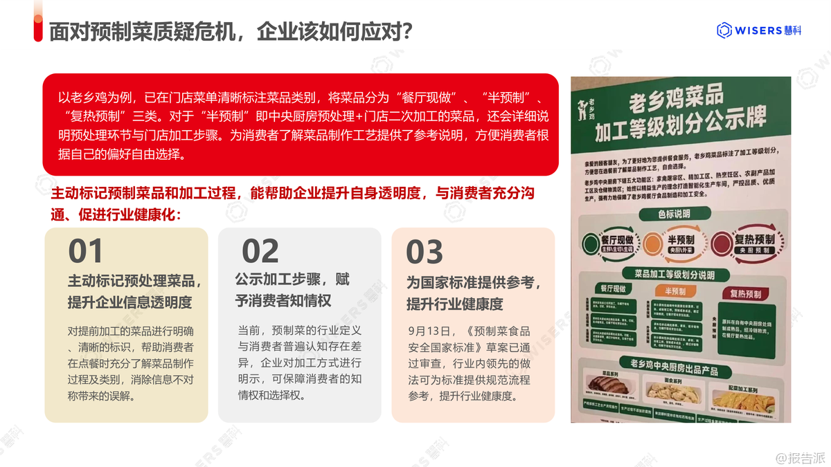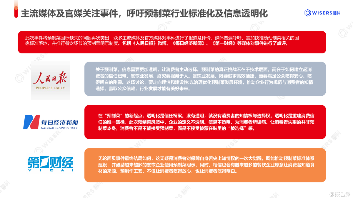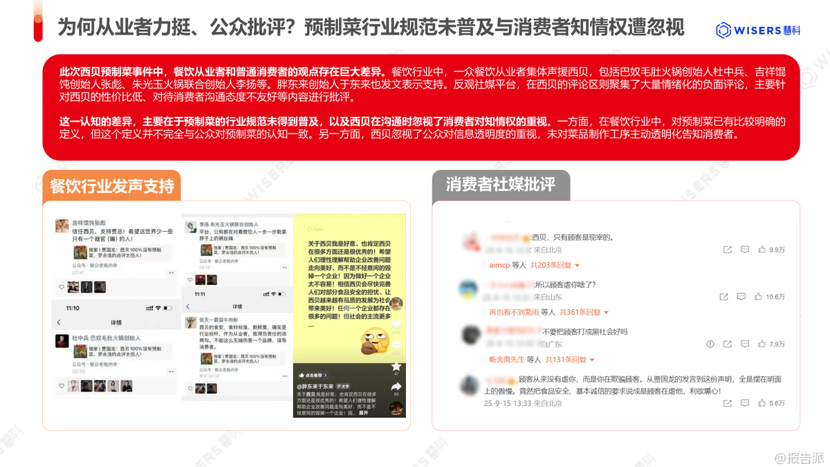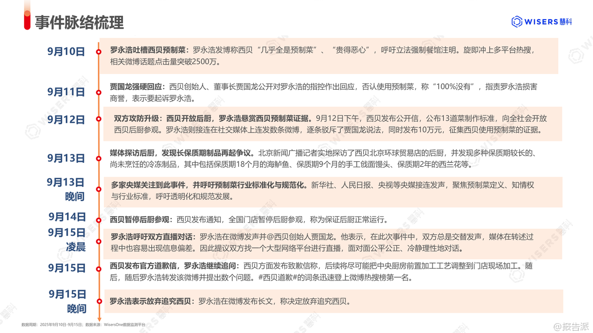 | 近日,一场由罗永浩炮轰西贝使用预制菜引发的舆论风暴迅速席卷全网,演变为一场关于餐饮行业透明度、消费者知情权与预制菜标准缺失的全民大讨论。 事件始于9月10日,罗永浩在微博公开批评西贝“几乎全是预制菜”且价格虚高,直指其“太恶心”,并呼吁立法强制餐厅标注预制菜成分。 该言论迅速引爆社交平台,相关话题阅读量突破2500万,成为全网焦点。 面对猛烈质疑,西贝创始人贾国龙强硬回应,宣称“门店100%没有预制菜”,并指责罗永浩损害商誉,扬言提起诉讼。 这一回应并未平息争议,反而加剧了舆论对立。 9月12日,西贝发布公开信,公布13道菜品的制作标准,并宣布向全社会开放后厨参观,试图以透明化挽回信任。 与此同时,罗永浩则发起10万元悬赏,征集西贝使用预制菜的证据,将事件推向高潮。 转折出现在9月13日,北京新闻广播记者实地探访西贝北京门店后厨,发现多种长保质期的冷冻半成品,如保质期长达两年的西兰花、18个月的海鲈鱼等。 这些“中央厨房预制品”虽符合行业操作规范,但在公众认知中无疑属于“预制菜”范畴,引发新一轮信任危机。 随后,新华社、人民日报、央视等多家央媒相继发声,聚焦预制菜定义模糊、行业标准缺位及消费者知情权问题,呼吁建立透明化、规范化的餐饮供应链体系。 面对持续发酵的负面舆情,西贝于9月15日发布官方致歉信,承认部分菜品存在中央厨房前置加工情况,并承诺将尽可能调整工艺至门店现场加工。 此举迅速登上微博热搜,“#西贝道歉#”话题热度居高不下。 当晚,罗永浩宣布放弃追究西贝责任,事件看似落幕,但其背后暴露的深层次问题远未解决。 此次事件暴露出餐饮行业普遍存在的认知错位:从业者认为中央厨房统一配送属正常操作,而消费者则期待“现点现做”的透明体验。 西贝长期以“健康餐”“儿童餐”为品牌定位,家长群体对其信任度较高,而后厨长保质期食材的曝光,直接击穿了这一信任基础。 数据显示,事件期间社交媒体情绪整体偏负面,尽管西贝曾尝试通过开放后厨短暂提振形象,但因缺乏对公众认知的尊重与有效沟通,最终未能扭转局面。 更深层看,这场风波实为一场“信任危机”。 企业应对中存在三大失误:一是创始人情绪化回应,加剧对立;二是忽视消费者对知情权的核心诉求,纠缠于行业术语定义;三是危机响应滞后,错过黄金24小时。 反观老乡鸡等企业,通过在菜单明确标注“现做”“半预制”“复热预制”类别,并说明加工流程,有效提升了信息透明度,值得行业借鉴。 当前,《预制菜食品安全国家标准》草案已通过审查,行业正迈向规范化。 此次事件无疑是一记警钟:预制菜本身并非原罪,关键在于是否赋予消费者知情与选择的权利。 唯有推动加工流程透明化、建立分类标识制度,才能重建消费者信任,实现行业的可持续发展。 出品方:慧科讯业 发布时间:2025年