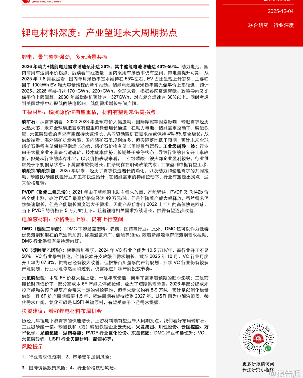 : 本文由【报告派】研读,输出观点仅作为行业分析!原文标题:原文标题:2025-12-04-长江证券-长江证券-锂电材料行业深度:产业望迎来大周期拐点发布时间:2025年报告出品方:长江证券 以上截图为原文节选内容,输出 ...