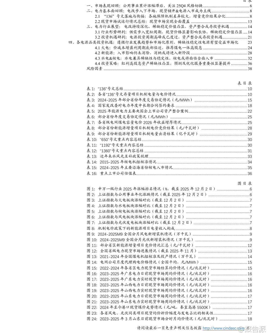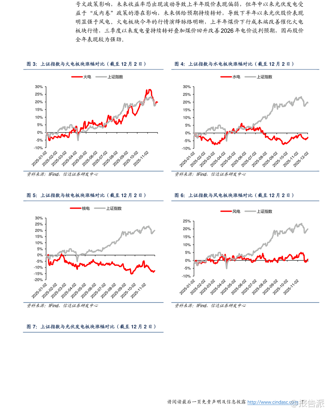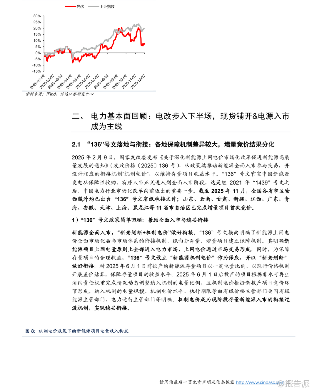 | 2025年即将收官,电力行业正迎来深刻变革的关键节点。 根据信达证券最新发布的《2026电力行业年度策略报告》,我国电力体制改革已正式步入“下半场”,市场化改革加速推进,供需格局、电价机制、电源结构和投资逻辑均发生显著变化。 本篇报告从市场表现、基本面回顾、未来展望及投资策略四个维度,系统梳理了当前电力行业的核心趋势与潜在机遇。 在市场表现方面,2025年以来,公用事业板块整体涨幅落后于大盘,主要受科技股行情主导的市场风格影响。 然而进入四季度后,随着市场风格切换以及电力需求回暖,公用事业板块相对收益差距有所收窄。 展望2026年,行业基本面预计保持平稳,低估值、高股息的电力资产有望迎来补涨机会,成为防御性配置的重要选择。 电力体制改革是贯穿全年的主线。 标志性政策“136号文”的落地,意味着新能源发电全面进入市场化交易时代。 该政策对存量和增量项目实行差异化待遇,导致2025年上半年出现“531抢装潮”。 数据显示,1-5月光伏新增装机达197.85GW,同比增长近150%;风电新增46.28GW,同比增长超134%。 但6月之后,随着政策分界点到来,新能源装机量断崖式下滑,反映出市场对增量项目缺乏保底收益的担忧。 增量项目的机制电量、电价和执行期限均由市场竞争决定,收益不确定性大幅上升。 与此同时,电力现货市场建设取得突破性进展。 “394号文”推动下,截至2025年11月,全国省级电力现货市场已实现基本全覆盖。 现货价格波动对中长期合同形成显著引导作用,电价形成机制更加市场化。 当前电力交易以“年度-月度-现货”三级结构为主,其中年度长协锁定大部分电量,但现货市场的价格信号正逐步影响全年电价水平。 行业供需格局正转向宽松。 一方面,煤电迎来新一轮投运高峰,火电核准与投产规模持续攀升;另一方面,用电需求增长放缓。 叠加能源价格回落和新能源装机高增,电力供大于求的趋势日益明显。 这一背景直接导致现货市场价格下行,并传导至中长期电价。 报告指出,2026年电价仍面临下行压力,尤其是此前中长期电价上浮较多的地区,存在“补跌”风险。 不过,当电价接近下浮20%的政策底线时,将获得一定支撑。 从投资角度看,电源投资周期高峰可能已经过去。 2023-2024年火电投资维持高位,而新能源投资自2025年起明显降温。 这背后是政策驱动向市场驱动的转变。 随着“十四五”收官,电源大规模投资阶段或将结束,未来“十五五”期间,能源央企的资产整合与结构优化将成为重点方向。 2025年作为“国企改革深化提升行动”收官之年,已有多个电力央企推进资产重组,聚焦主业、提升资产证券化率的趋势明确。 细分电源类型中,各类电源面临不同机遇与挑战。 水电兼具稀缺性、稳定性和调节能力,全面市场化可能性低,长期价值凸显,推荐关注长江电力、国投电力等龙头。 煤电方面,虽然电价面临下行压力,但成本端煤炭供需趋于平衡,且容量电价机制有望增厚收益,特别是煤电一体化企业具备成本优势,推荐关注高股息标的如新集能源、国电电力等。 核电发展提速,市场化比例提升,但同样面临电价下行压力。 风光新能源资产收益率承压,消纳和电价竞争加剧,需等待产业理性回归。 此外,随着电力市场化深入,预测与优化服务的重要性显著提升。 市场主体对天气、负荷、电价的精准预测能力,将成为参与市场交易的核心竞争力。 相关技术服务商有望受益,如国能日新、朗新集团等。 总体来看,2026年电力行业将在“宽松供需+深化改革”的背景下运行。 电价中枢或继续下移,但高股息、稳定性强的电源资产价值更加突出。 投资主线将从单纯的装机扩张转向资产质量优化与运营效率提升,红利型资产和具备整合潜力的平台型企业值得关注。 同时,电力市场配套服务领域也将孕育新的成长机会。 本文由【报告派】研读,输出观点仅作为行业分析! 原文标题:原文标题:2025-12-05-信达证券-信达证券-2026电力行业年度策略报告:电改步入下半场,机遇与挑战并存 发布时间:2025年 报告出品方:信达证券