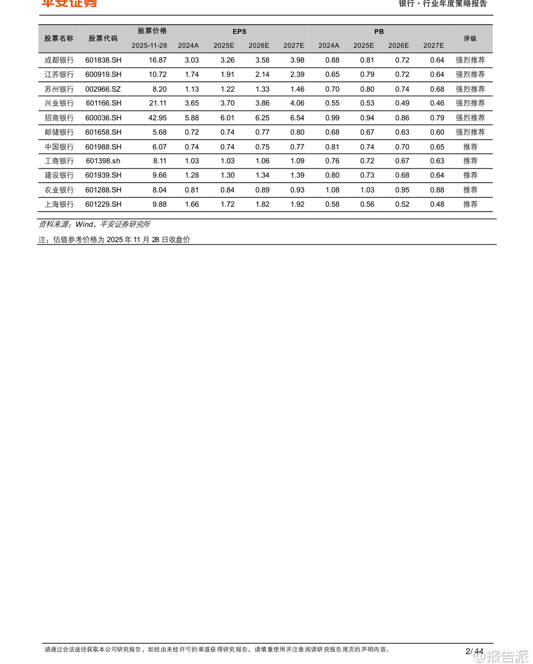 : 本文由【报告派】研读,输出观点仅作为行业分析!原文标题:2025-12-10-平安证券-平安证券-银行行业2026年年度策略报告:红利为盾,盈利为矛发布时间:2025年报告出品方:平安证券文档页数:49页 以上截图为原文节 ...