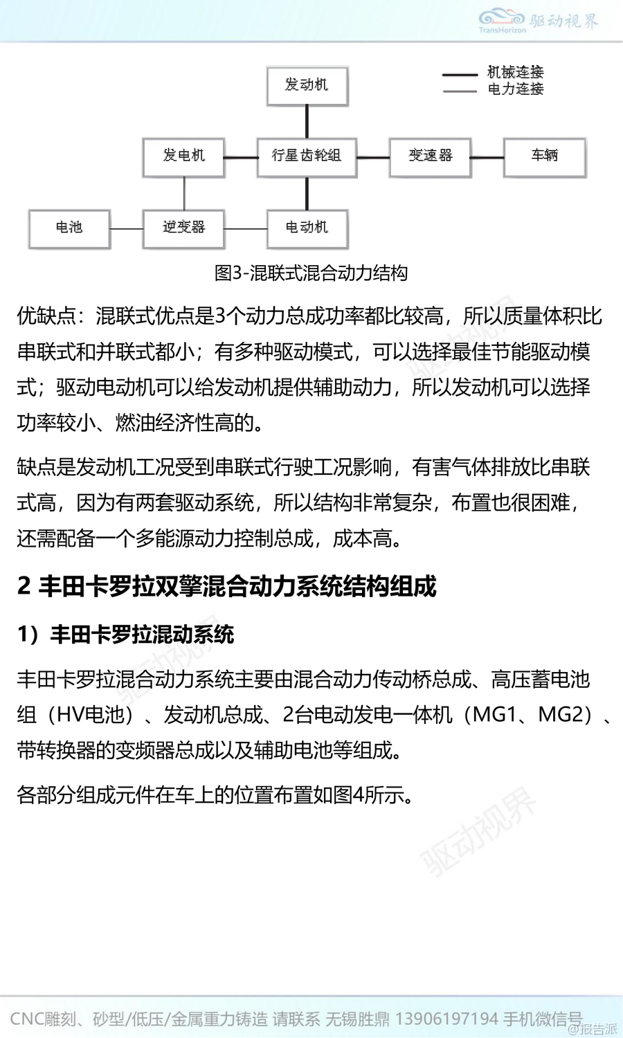 | 丰田卡罗拉双擎作为混合动力车型的代表,凭借其高效节能、低排放和出色的驾驶体验,持续引领家用轿车市场的技术潮流。 本文深入剖析了2025款丰田卡罗拉双擎混合动力系统的结构原理与典型故障案例,揭示其背后的技术逻辑与可靠性设计。 混合动力系统主要分为串联式、并联式和混联式三种架构,而卡罗拉双擎采用的是技术更为先进的混联式系统,结合了串联与并联的优势,实现了全工况下的最优能效匹配。 该系统核心由阿特金森循环发动机、高压蓄电池组(HV电池)、MG1与MG2双电机、带转换器的变频器总成以及动力控制单元(HVECU)构成,通过行星齿轮机构实现动力的智能分配与无级变速。 在车辆起步和低速行驶时,系统完全依赖MG2电动机驱动,实现零油耗、零排放;当中高速巡航时,发动机介入工作,不仅直接驱动车轮,还通过MG1发电为电池充电,维持系统能量平衡;而在减速或制动过程中,MG2切换为发电机模式,回收动能并储存在HV电池中,显著提升能源利用率。 值得一提的是,MG1不仅承担发电任务,还在发动机启动时充当起动机,实现快速、平顺的启停体验,同时通过调节自身转速来控制发动机工作在最高效率区间,这是丰田混动系统实现超低油耗的关键所在。 此外,系统还配备了电子变频空调压缩机、DC/DC转换器和增压转换器等组件,确保高压与低压电气系统的稳定运行。 然而,再先进的技术也面临实际使用中的挑战。 通过对五个真实故障案例的分析,暴露出混动系统潜在的风险点。 例如,MG2解析器因事故维修后防水密封失效导致信号异常,引发车辆无法行驶;动力电池智能单元通讯中断、驱动桥内部齿轮卡死、燃油泵搭铁虚接以及动力电池老化鼓包等问题,均会导致系统故障甚至行车中断。 这些案例表明,尽管丰田混动系统整体可靠性高,但高压电路连接、传感器防护、机械部件润滑及电池健康状态仍是后期维护的重点。 尤其值得注意的是,涉水、碰撞等外部因素极易引发间歇性故障,给诊断带来难度。 综上所述,丰田卡罗拉双擎的混合动力系统是一套高度集成化、智能化的动力解决方案,其在节能减排与驾驶性能之间取得了卓越平衡。 对于消费者而言,了解其工作原理有助于更好地使用和保养车辆;而对于行业来说,这套成熟的技术体系仍具标杆意义,为未来新能源技术的发展提供了重要参考。 出品方:QDSJ 发布时间:2025年