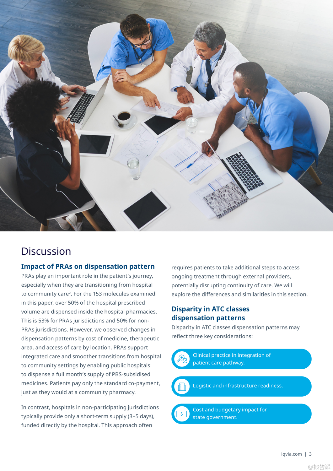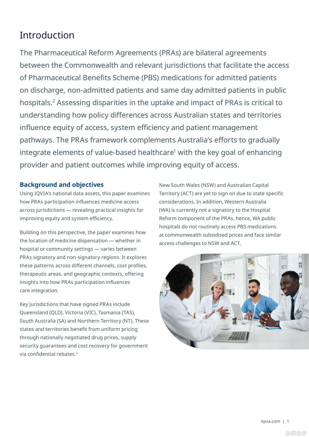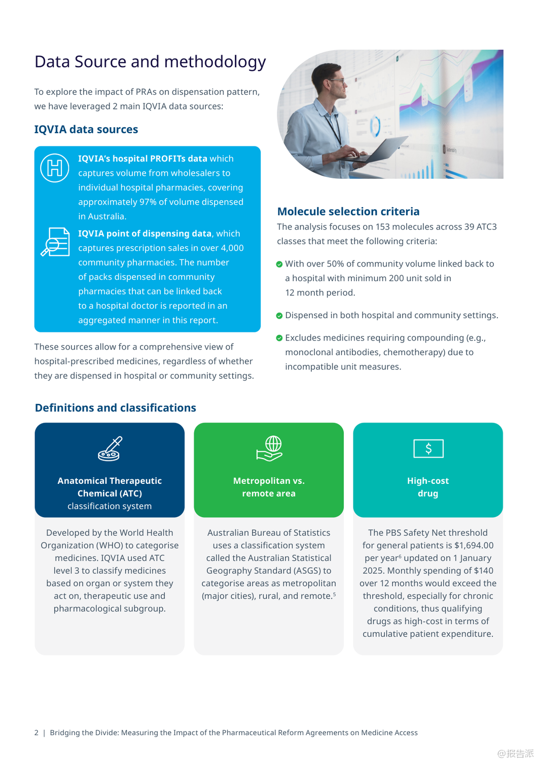 | 近日,艾昆纬(IQVIA)发布了一份题为《弥合分歧:衡量药品改革协议对药品获取的影响》的白皮书,深入分析了澳大利亚各州和地区在实施 Pharmaceutical Reform Agreements(PRAs,药品改革协议)后,对患者获取PBS(Pharmaceutical Benefits Scheme,药品福利计划)药物的影响。 该报告基于IQVIA全国性数据资产,聚焦政策差异如何影响医疗公平性、系统效率及患者管理路径,为未来医疗体系整合提供了重要参考。 PRAs是澳大利亚联邦政府与各州及领地之间的双边协议,旨在提升公立医院住院患者出院后、非住院患者以及当日入院患者的PBS药物可及性。 目前,昆士兰(QLD)、维多利亚(VIC)、塔斯马尼亚(TAS)、南澳(SA)和北领地(NT)已签署协议,享受全国统一药价、供应保障及通过保密回扣实现成本回收等优势。 而新南威尔士(NSW)、首都领地(ACT)和西澳(WA)尚未加入,导致这些地区的公立医院无法常规以联邦补贴价格获取PBS药物,患者面临更大的用药障碍。 报告指出,PRAs显著改变了药物分发模式。 在签署地区,超过53%的医院处方药物在院内药房直接配药,患者仅需支付标准共付额,如同在社区药店购药。 这有助于实现从医院到社区的无缝过渡,增强治疗连续性。 而在未签署地区,医院通常只能提供3至5天的短期药物供应,后续治疗需患者自行前往外部机构续药,易造成护理中断。 研究特别关注高成本药物的分发差异。 在癌症治疗领域,如蛋白激酶抑制剂(L01H)、细胞毒性激素拮抗剂(L02B)等类别,签署PRAs的地区院内配药比例分别高出9%至21%。 对于免疫介导炎症性疾病(IMIDs),分发模式则更多受专科诊疗地点影响,胃肠类疾病因管理路径依赖,院内配药率普遍超50%。 值得注意的是,尽管PRAs和非PRAs地区的医院处方总量相近,但在费用分布上存在巨大差异:签署地区34%的药物成本由医院承担,而未签署地区这一比例仅为16%,意味着84%的高值药物支出转移至PBS公共预算,反映出财政机制对医疗服务供给的深刻影响。 地理与基础设施因素同样关键。 在偏远地区如西澳、南澳和北领地,由于社区药房覆盖不足,医院成为主要药物供给方,院内配药比例高于全国平均水平。 相反,塔州和昆州虽属PRAs地区,但因床位紧张,远程患者仍被导向社区配药。 报告最后强调,PRAs为提升医疗公平提供了框架,但成功实施需因地制宜。 像NSW这样拥有庞大医疗网络的地区,可能更重视政策自主权与预算可控性,而非全国统一分销机制。 未来可通过定制化协议,在保障国家一致性的同时尊重地方特殊需求。 艾昆纬认为,唯有通过数据驱动的协作与灵活执行,才能真正实现全民公平、可持续的药物获取目标。 出品方:艾昆纬 发布时间:2025年
