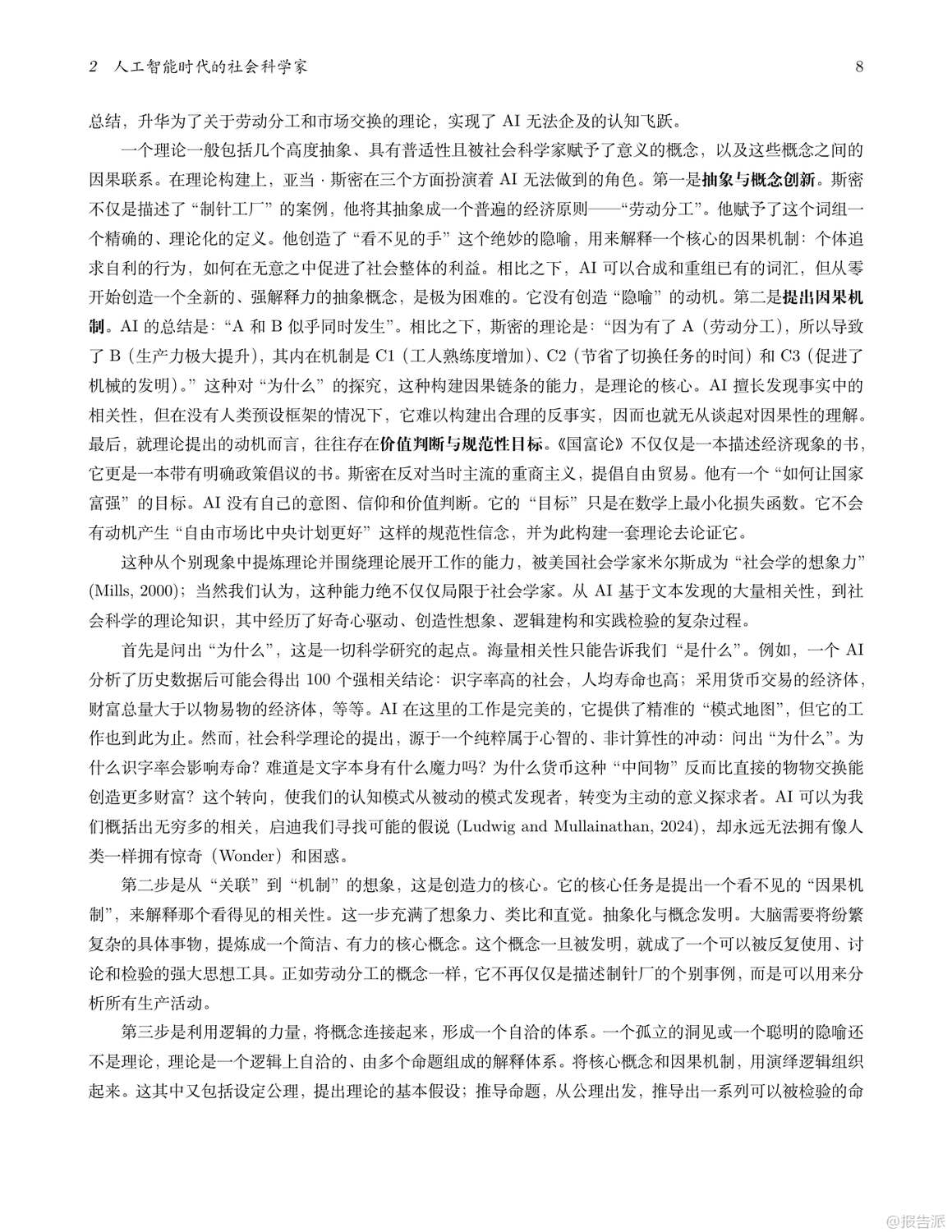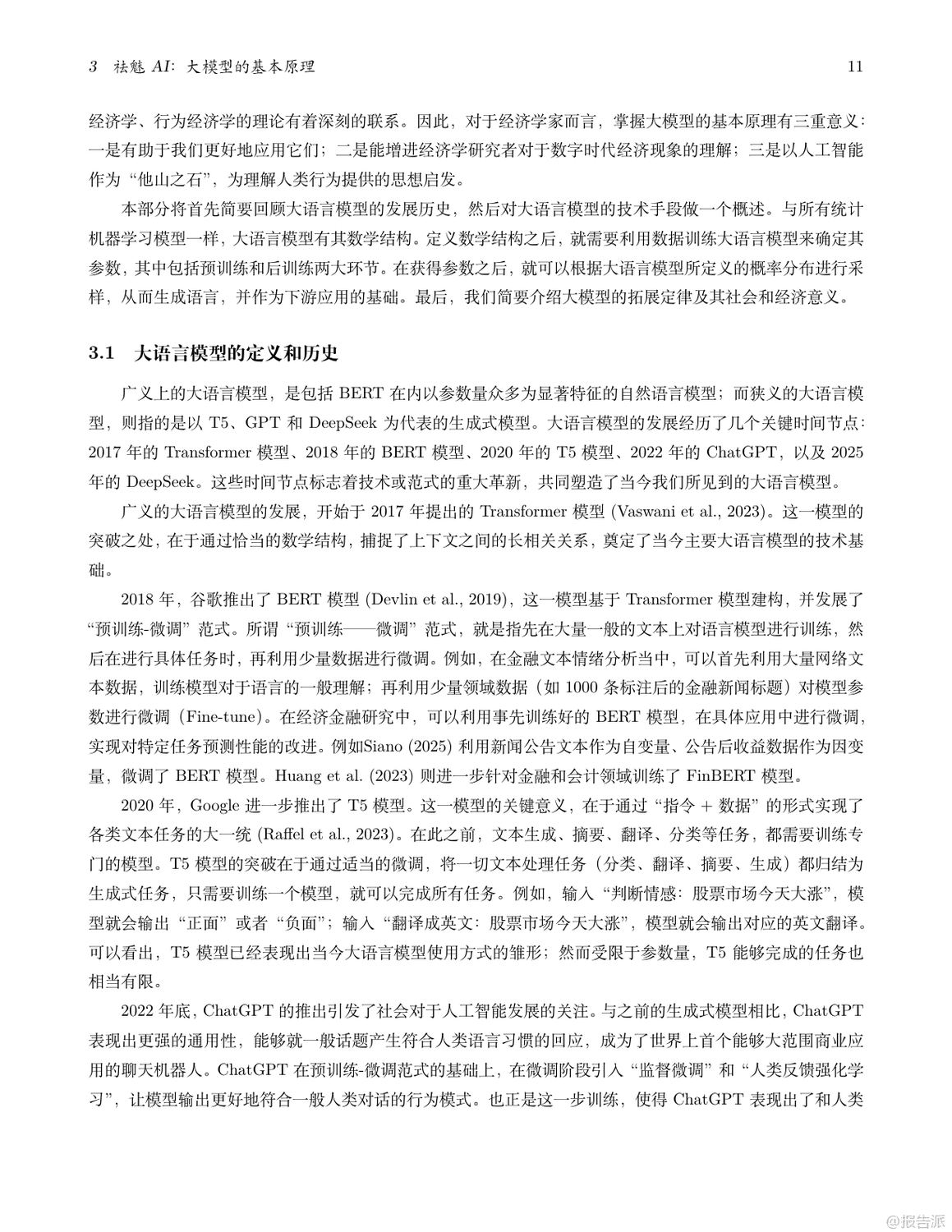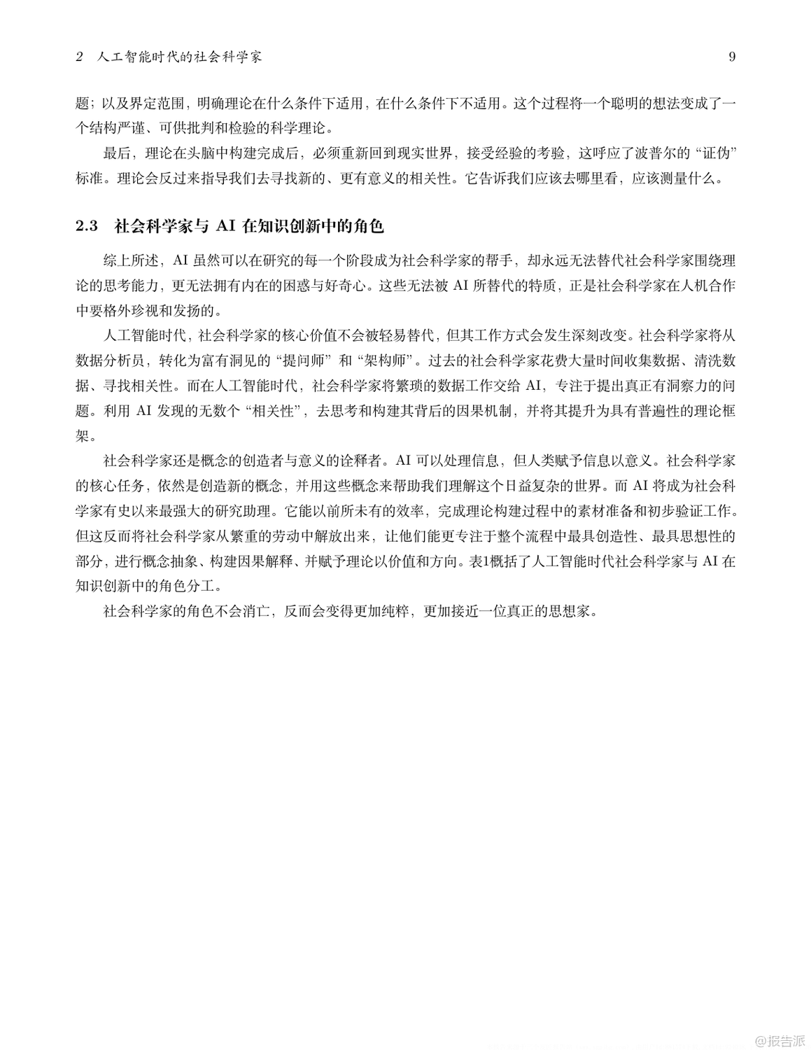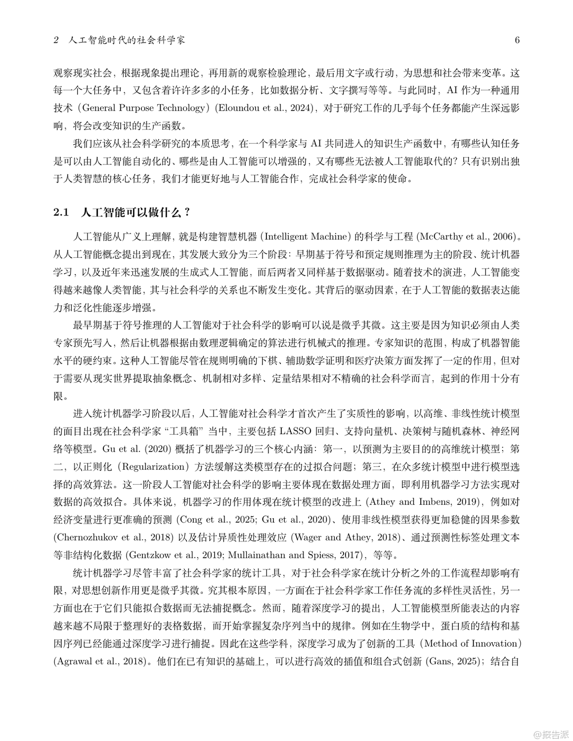 | 人工智能大语言模型(如ChatGPT、DeepSeek)正深刻重塑经济管理研究范式,推动学术工作迈入“人机协作”的新时代。 北京大学国家发展研究院胡诗云、易君健在《2025智能之光:人机协作的经济管理研究新时代报告》中系统阐述了这一变革。 报告指出,大模型的本质是“下一词预测器”,其核心能力在于实现认知工作的自动化,而非替代人类科学家。 研究者的核心价值在于围绕理论工作的能力——提出根本性问题、构建因果机制、创造抽象概念并赋予研究以意义和方向。 AI无法自发产生像亚当·斯密“看不见的手”那样的理论飞跃,也无法拥有源于价值判断的规范性目标。 报告提出,大模型将在研究全流程中扮演四大角色。 第一,作为“参谋”,AI是研究者的思想伙伴,能协助资料收集、深化文献理解、澄清概念并提供研究反馈。 例如,通过深度检索功能,AI可在几分钟内整合数十个信息源,生成关于衰退与收入分配的系统综述。 第二,作为“助研”,AI承担研究助理职能,自动化处理文献整理、参考文献格式转换、代码撰写、数据清洗等重复性任务,将研究者从“脏活累活”中解放。 第三,作为“智能体”,大模型本身成为研究对象与实验工具。 研究者可利用单智能体模拟个体行为(如测试AI在博弈中的风险偏好),或多智能体系统模拟复杂社会互动(如市场交易、政策影响),为经济学理论提供前所未有的实验场景。 第四,作为“朋友”,AI超越学术角色,提供职业发展建议、心理辅导和人际交往策略,为研究者提供全方位支持。 报告强调,有效利用AI的关键在于“提示工程”(Prompt Engineering),即通过精心设计的提示词引导AI。 研究者需具备“AI素养”,懂得如何提出高质量问题。 同时,报告警示了潜在风险:一是“前视偏差”,即大模型因知晓历史数据而高估预测能力,需通过实时预测或对比知识截止日前后表现来规避;二是结果的敏感性,模型输出可能随提示词或模型版本变化,需建立人工标注的基准进行校准。 此外,多智能体模拟的因果推断效力也需谨慎解读,其结果本质仍是条件期望,未必反映真实因果。 总而言之,大模型并非研究者的替代品,而是强大的“智力放大器”。 它通过自动化执行常规任务,极大地提升了研究效率,更通过人机深度协作,扩展了人类思维的广度与深度。 未来,研究者的核心竞争力将从数据处理转向创造性思考、批判性分析和理论构建。 该报告为经济管理学者如何拥抱AI时代提供了兼具技术深度与哲学高度的全景式指南,预示着一个以人机协同为核心特征的智能研究新时代的到来。 出品方:北大国发院 发布时间:2025年 文档页数:57页