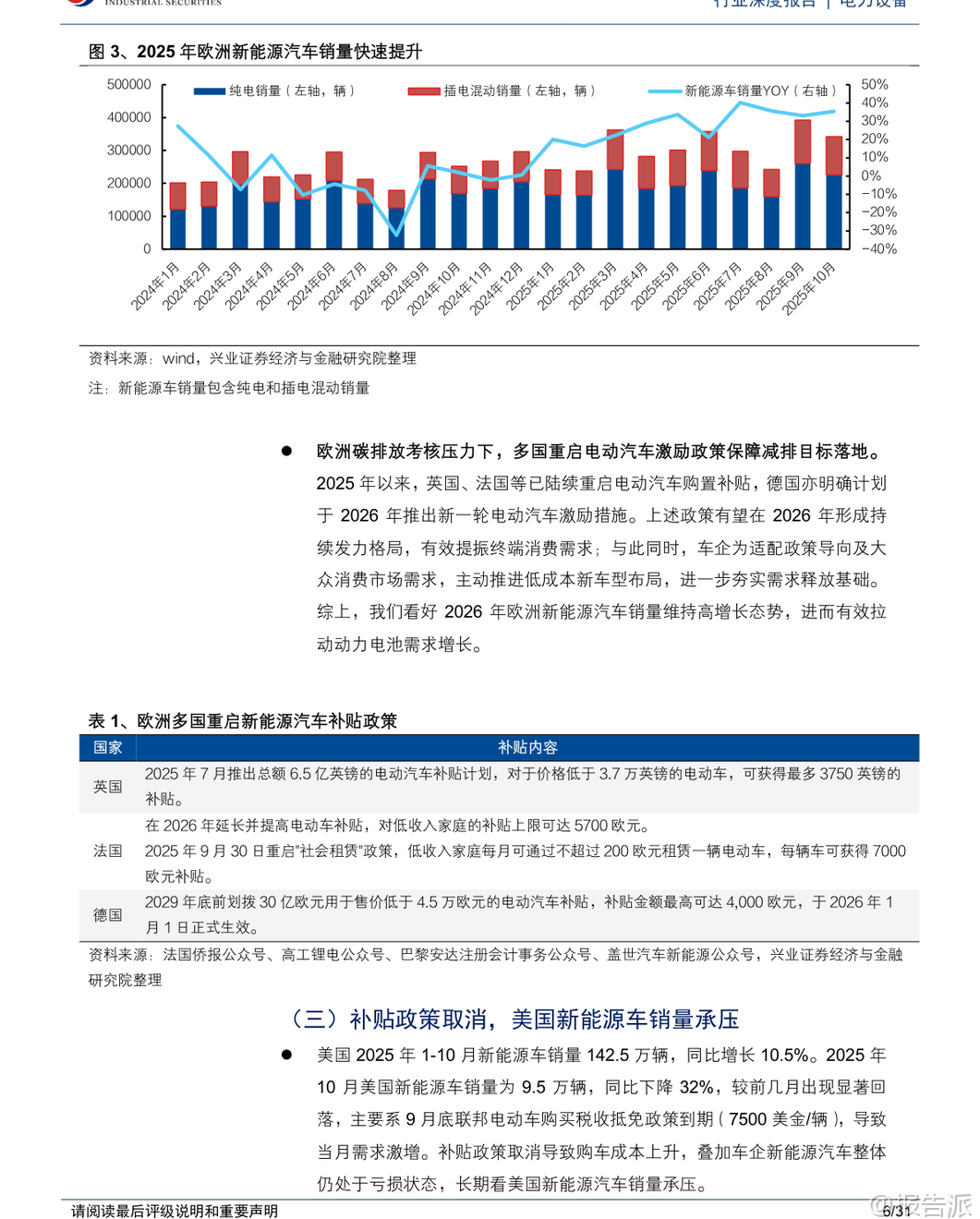 : 本文由【报告派】研读,输出观点仅作为行业分析!原文标题:2026-01-12-兴业证券-兴业证券-锂电材料行业:需求双轮驱动+供给刚性约束,行业景气上行发布时间:2026年报告出品方:兴业证券 以上截图为原文节选内容, ...