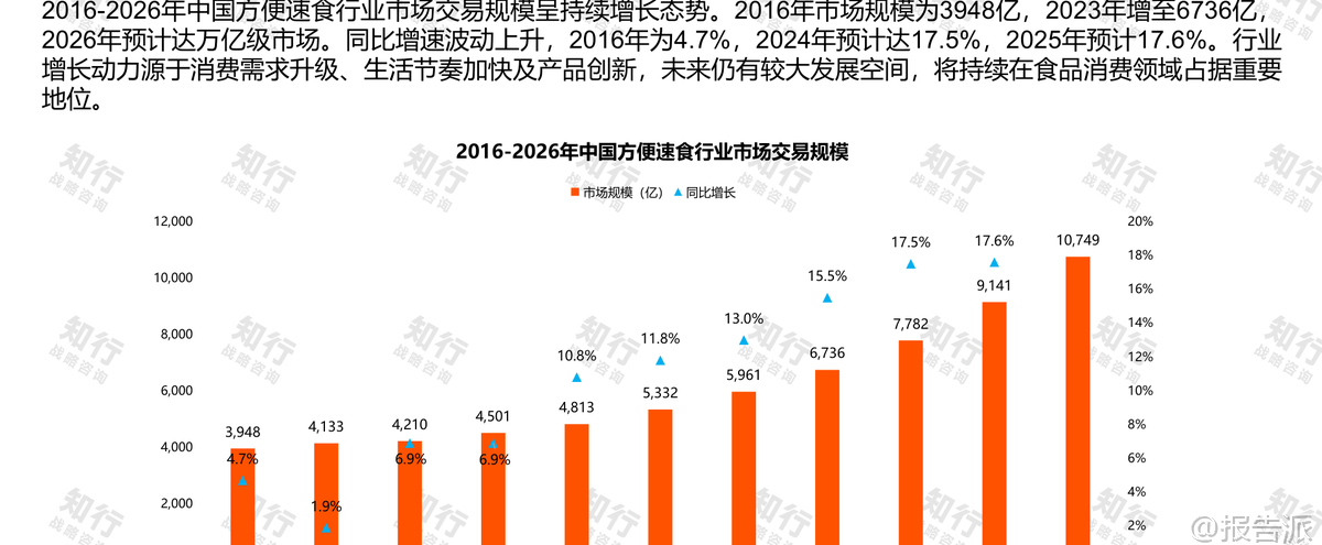 | 近年来,中国方便速食行业持续高速增长,正迈向万亿级市场。 根据知行战略咨询发布的《方便速食品类》数据观察报告显示,2016年中国方便速食市场规模为3948亿元,到2023年已增长至6736亿元,预计2026年将突破万亿元大关。 年同比增长率从2016年的4.7%上升至2025年预计的17.6%,展现出强劲的增长动能。 驱动这一增长的核心因素包括生活节奏加快、消费需求升级以及产品持续创新。 政策层面,国家对食品安全与健康导向日益重视。 2022年以来,多项法规出台推动行业规范化发展。 例如,《食品安全标准与监测评估“十四五”规划》强化了风险监测体系;2023年六部门联合发布通知,首次在国家层面明确“预制菜”定义,并将方便食品等品类排除在外,厘清监管边界。 同时,“非必要不添加”食品添加剂的原则被写入新修订的国家标准GB2760-2024,引导企业向低脂、低盐、清洁标签方向转型。 此外,《轻工业稳增长工作方案》明确提出大力发展方便食品、自热食品等品类,从顶层设计上支持行业发展。 消费趋势方面,方便食品的应用场景不断拓展。 除了传统的家庭和办公场景外,外出露营/野餐(占比46.6%)、出差旅途等新兴场景渗透率显著提升。 近四成消费者表示2024年方便食品消费金额较去年增加,反映出其已成为现代人饮食结构中的重要组成部分。 在线上渠道表现中,抖音平台异军突起,成为方便速食销售的新引擎。 截至2025年9月,抖音与淘宝双平台合计销售额达264.2亿元,其中抖音凭借“低价高销”策略实现反超,市场份额跃居第一。 数据显示,2025年抖音方便速食销量达141.2亿件,远超淘系的123亿件。 价格方面,抖音均价从2023年的49.2元降至2025年的26.5元,而淘系则波动回升至28.4元,体现出抖音以性价比吸引大众消费者的竞争逻辑。 细分品类表现分化明显。 在淘宝平台,传统大品类如冲泡方便面、粉类速食增速放缓甚至下滑,而粽子(+19%)、西式速食(+23%)等人气品类增长强劲;抖音平台上,方便面/面饼类销售额高达40.77亿元,同比增长36%,螺蛳粉类达34.23亿元,增长12%。 更值得关注的是新兴细分赛道的爆发式增长,如“速食料理”同比增长238%、“人造肉/植物肉速食”增长196%、“轻食面”增长80%,显示出消费者对健康、新颖、功能化产品的强烈偏好。 品牌格局呈现平台差异。 淘宝仍由康师傅、白象等传统巨头主导,但多数品牌增长乏力;抖音则涌现出芯蒸呈(增长363.1%)、三只松鼠(增长276.2%)等黑马品牌,白象也以5.26亿元销售额位居榜首。 整体来看,抖音CR5和CR10集中度均高于淘宝,市场更趋头部化。 值得注意的是,螺蛳粉在抖音的表现尤为突出,相关话题总播放量超700亿次,远超方便面的166亿次,其强社交属性、视觉冲击力和年轻化定位使其成功“抢走”传统方便面的风头。 以新兴品牌“臭宝”为例,其通过精准布局抖音渠道实现了快速增长。 2025年1-9月,臭宝线上销售额达4.39亿元,其中抖音贡献76%(3.34亿元),形成“抖音冲量、淘宝稳盘”的运营模式。 品牌采取分层产品策略:基础款主打性价比(<50元),创新口味如榴莲、臭豆腐螺蛳粉满足猎奇需求,礼盒装适配节日送礼场景。 营销上,借助邓超代言、山姆会员店合作及“请15万人吃螺蛳粉”等事件制造话题,结合达人矩阵分层投放(头部破圈、肩部种草、腰部铺量),成功构建从内容种草到转化的闭环。 总体而言,方便速食行业正处于结构性升级阶段。 一方面,传统品牌面临增长压力,需加速数字化转型;另一方面,新锐品牌依托内容电商崛起,推动产品创新与营销变革。 未来,谁能更好地把握健康化、场景化、社交化趋势,并在抖音等新兴平台建立高效的运营体系,谁就有望在万亿市场的竞争中占据先机。 本文由【报告派】研读,输出观点仅作为行业分析! 原文标题:2026-01-14-知行战略咨询-方便速食行业知行数据观察:方便速食品类 发布时间:2026年 出品方:知行咨询