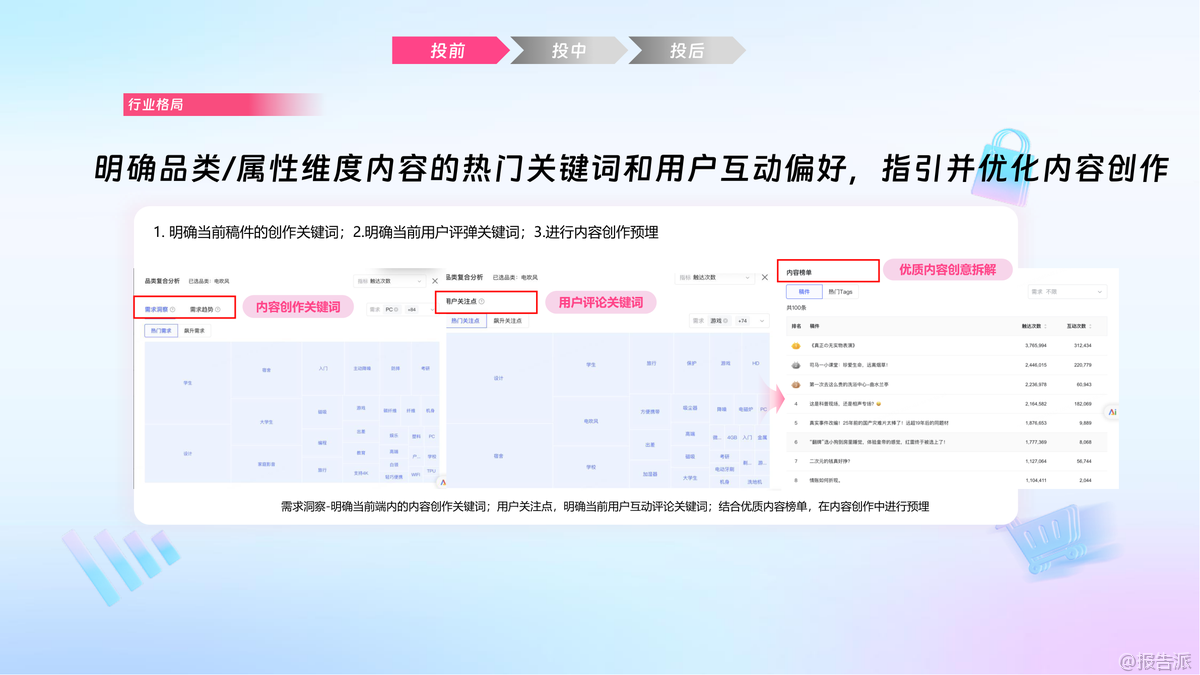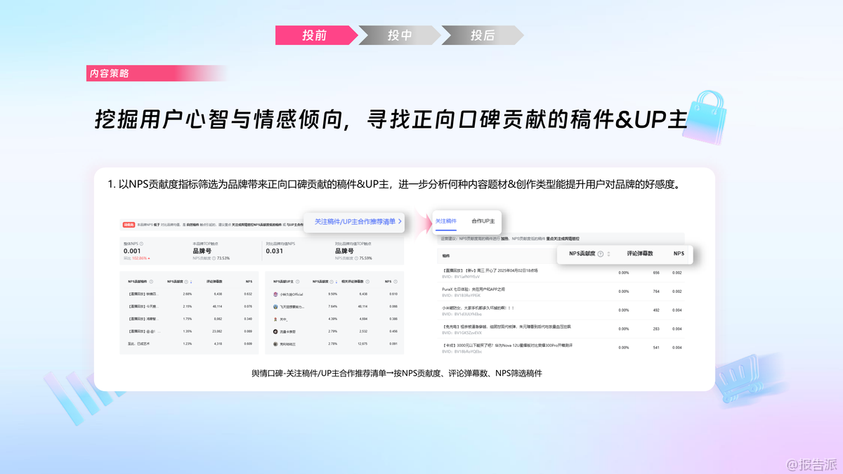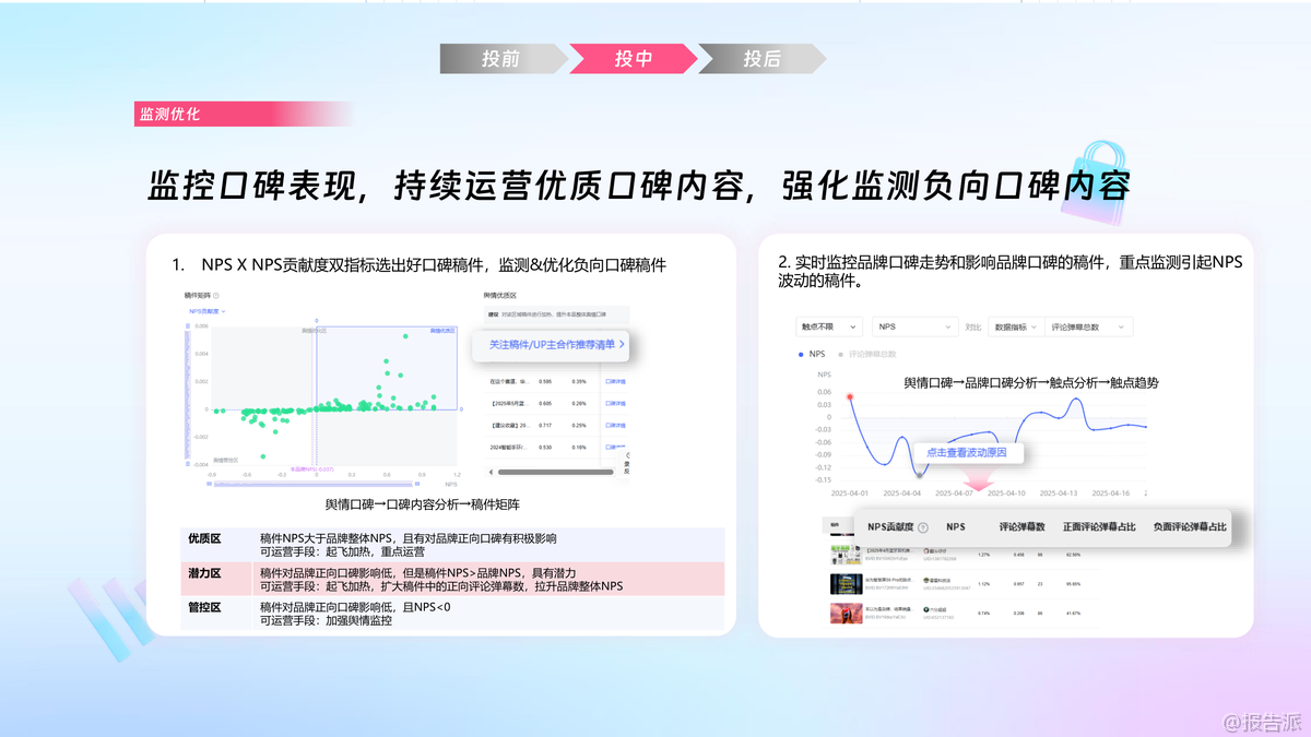 | 在2025年的汽车营销生态中,哔哩必达数据产品正成为连接品牌与Z世代用户的关键桥梁。 本次培训聚焦汽车行业代理场景,系统性地展示了从投前策略制定、投中监控调优到投后度量复盘的全链路数据赋能方案,旨在帮助汽车品牌实现“找对人、说对话、投精准”的精细化运营目标。 投前阶段,核心在于人群与内容的双重策略构建。 通过“人群资产诊断”与“SPU人群资产分析”,品牌可基于MATES模型快速识别自身在市场中的位置,并结合竞品对比发现结构性机会。 尤其值得关注的是“机会人群挖掘”能力——通过融合品牌已有资产人群与B站特色人群,利用相似度与渗透率双维度筛选出高潜增量群体,实现从核心人群向泛人群的有效外溢。 在内容侧,“内容资产诊断”从声量、心智、转化三个维度拆解品牌内容健康度,辅以“舆情口碑分析”和“爆文潜力判断”,帮助品牌提前锁定具备传播爆发力的内容方向。 与此同时,“行业机会点捕捉”与“用户偏好洞察”模块,则让品牌能够紧跟站内热点趋势,解码热门关键词与用户真实需求,为创意预埋提供数据支撑。 投中阶段强调动态优化与实时响应。 通过“优质爆文挖掘”功能,系统以“量爆”(短期高曝光)与“质爆”(高心智影响)双指标定位投放中的爆款稿件,指导品牌倾斜起飞加热、热搜推荐等商业资源,最大化内容杠杆效应。 同时,“人群渗透追踪”可实时监控目标人群与特色人群的覆盖进展,若发现渗透停滞或下滑,可及时调整UP主合作或内容策略。 “品牌口碑监测”则构建了舆情防御机制,通过NPS贡献度与稿件口碑矩阵划分优质区、潜力区与管控区,实现正向口碑的持续运营与负面舆情的快速干预。 投后环节注重价值还原与长期经营。 MATES度量体系不仅复盘人群资产增量与流转效率,更通过“品牌指数变化”呈现品牌在行业内的相对竞争力演变。 一方数据度量能力允许品牌回传大促转化人群,直接评估营销活动对实际生意的贡献。 而“爆款稿件追投”与“品牌口碑复盘”则推动优质内容的生命周期延长与用户情感资产沉淀。 典型案例显示,某家清品牌借助必达“精细人群投放+黄金UP主智选+热力内容挖掘”三位一体策略,成功实现新客率从32%跃升至65%,品牌总人群资产提升45%以上。 这背后正是数据驱动下人、内容、流量三者的精准耦合。 对于汽车行业而言,面对用户决策周期长、信息密度高、情感共鸣强等特点,哔哩必达所提供的这套方法论不仅适用于新品上市、大促攻坚,更可作为品牌长期数字资产经营的标准操作流程。 出品方:哔哩必达 发布时间:2025年
