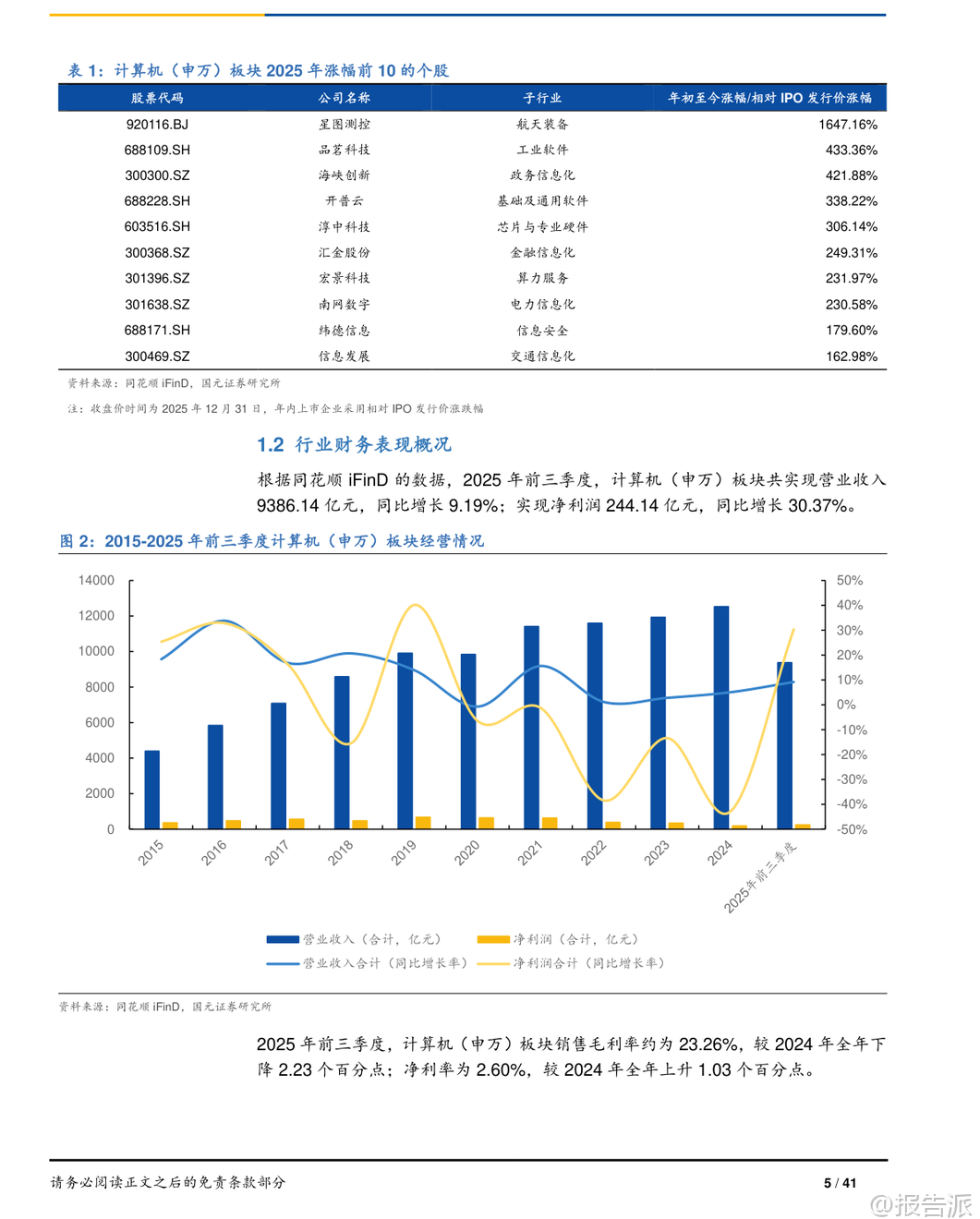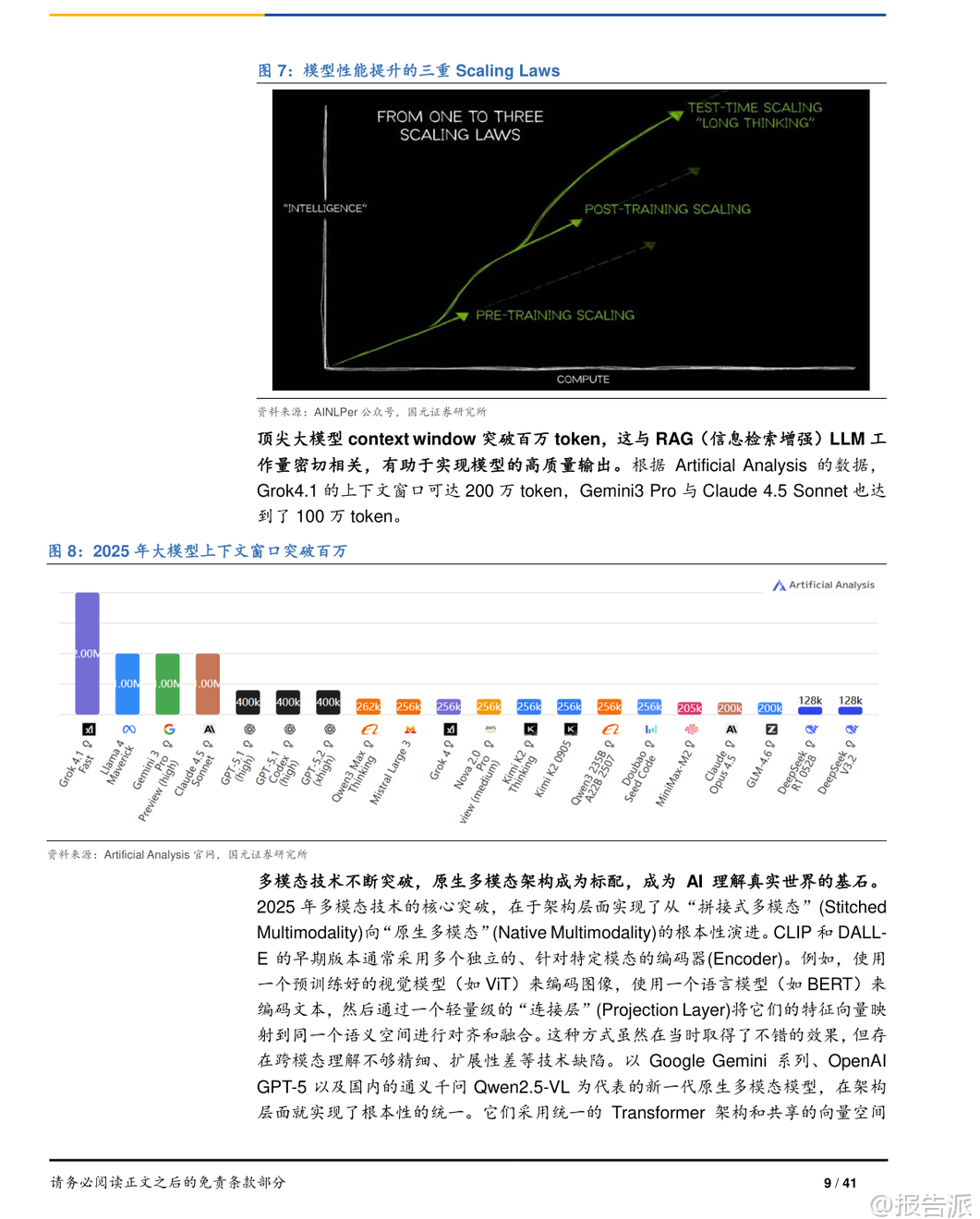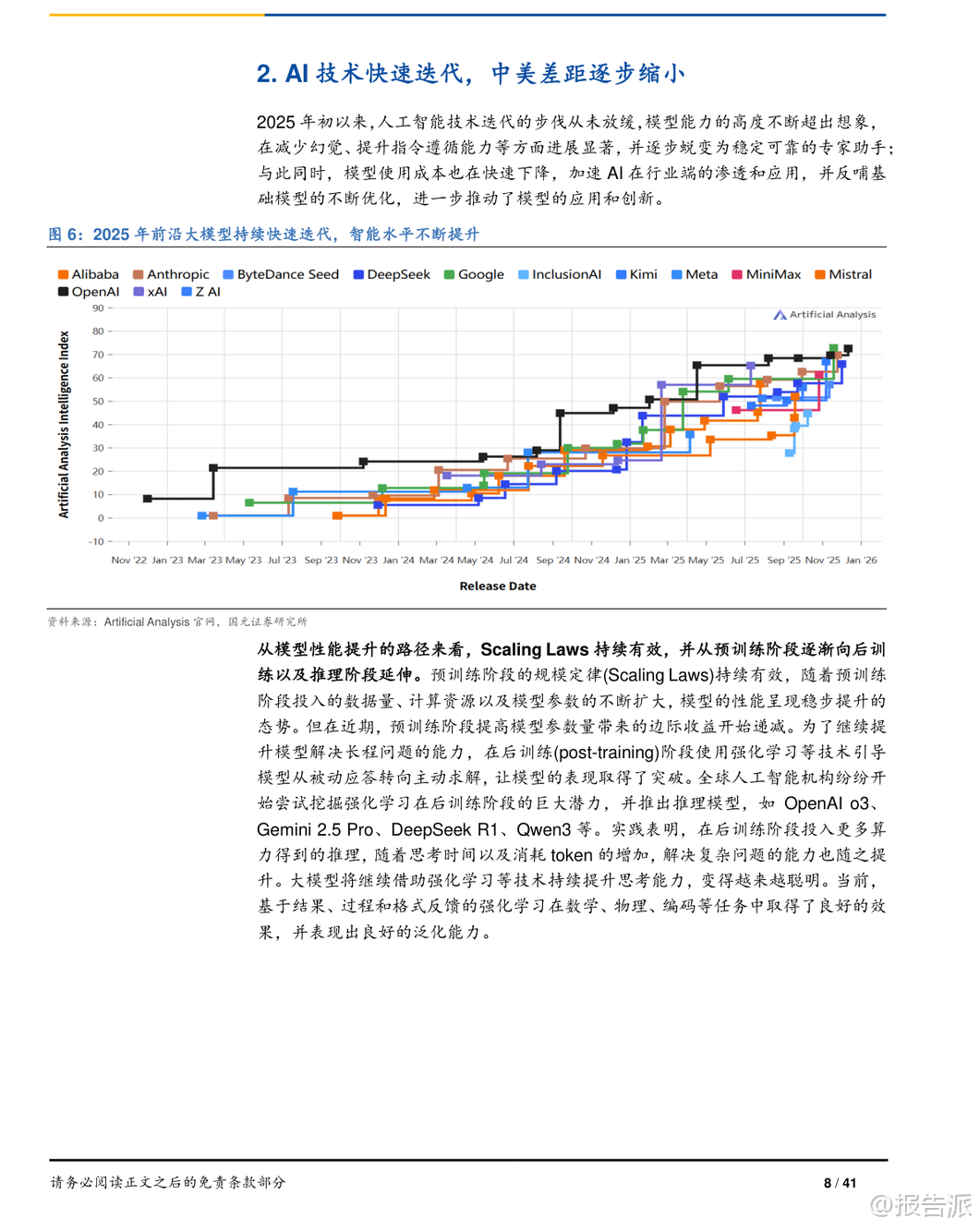 | 在2025年,计算机(申万)指数上涨18.24%,跑赢沪深300但落后于创业板指和科创50,位居申万行业涨幅第14位。 行业创新持续加速,AI技术快速迭代,模型性能不断提升的同时推理成本显著下降,推动大模型在千行百业的广泛应用。 token消耗量实现成倍增长,AI应用访问流量迅猛攀升,ChatGPT、Gemini及中国的DeepSeek等产品用户规模不断扩大,其中DeepSeek以3.55亿次访问量位列全球第三,显示出国产模型的强劲竞争力。 从技术演进来看,生成式AI正经历从“拼接式多模态”向“原生多模态”的根本性转变,Google Gemini、OpenAI GPT-5以及阿里通义千问Qwen系列已采用统一Transformer架构处理文本、图像、音频等多种模态数据,实现端到端深度融合。 同时,Scaling Laws不仅适用于预训练阶段,也延伸至后训练与推理阶段,通过强化学习提升模型主动求解复杂问题的能力。 顶尖模型上下文窗口突破百万token,为长文本理解与信息检索增强提供了强大支持。 中美AI差距正在迅速缩小。 得益于DeepSeek-R1、Qwen3、Kimi K2等国产先进模型的发布,中国在前沿大模型能力上已接近美国同期水平。 根据Artificial Analysis Intelligence Index排名,Gemini 3 Pro与GPT-5.2并列第一,而Kimi K2 Thinking排名第五,DeepSeek-V3.2、MiniMax-M2等也进入前列,标志着国产模型在全球竞争中占据重要位置。 商业化进程全面提速。 海外方面,OpenAI年化收入逼近200亿美元,Anthropic达80亿美元,xAI快速增长;国内智谱、MiniMax、阿里巴巴等企业也在加速商业化落地。 智谱2024年营收3.12亿元,在独立通用大模型开发商中居首;阿里通义大模型开源超300个模型,全球下载量破6亿次,衍生模型达17万个,服务超百万客户,市场占有率领先。 IDC预测,2029年中国AI总投资将达1114亿美元,五年复合增长率25.7%,生成式AI占比将从2024年的18.2%升至41.1%,成为核心驱动力。 资本市场积极响应。 摩尔线程、沐曦股份等国产GPU厂商成功上市,智谱、MiniMax计划2026年初登陆港股,AI全栈国产替代趋势明确。 政策层面,《中共中央关于制定国民经济和社会发展第十五个五年规划的建议》明确将量子科技纳入未来产业布局,国家对前沿科技的战略支持力度持续加大。 量子科技迎来历史性发展机遇。 英特尔前CEO帕特·基辛格预言量子计算将在两年内进入主流市场,与经典计算、AI构成“三位一体”的计算革命。 当前量子信息技术分为三大方向:量子计算解决经典算力瓶颈,量子通信保障信息安全,量子测量实现超高精度感知。 国际巨头如微软发布拓扑量子比特处理器Majorana 1,谷歌Willow芯片实现可验证量子优势,IBM规划2029年前实现容错量子计算,英伟达推出NVQLink连接量子与经典超级计算机。 国内企业同步突破。 国仪量子发布钻石单自旋传感器、量子磁力仪等高精度测量设备,应用于芯片检测、心脑血管疾病早期诊断等领域;本源量子推出支持500+量子比特的测控系统“本源天机4.0”,其第三代超导量子计算机“本源悟空”已为163个国家和地区提供服务,完成超71万项任务,并在药物分子性质预测等场景实现真机验证,商业化路径逐步开启。 风险方面需关注:AI大模型在软件和服务领域落地节奏不及预期;量子技术开发路径未收敛,存在不确定性;市场开拓与商业化进展缓慢;行业竞争加剧导致价格战;宏观经济波动影响下游需求;国际贸易与技术管制可能制约高端环节发展。 总体而言,2025年计算机行业在AI商业化与量子科技双轮驱动下展现出强劲增长动能。 AI正从技术探索迈向规模化应用,国产模型性能与生态齐头并进;量子科技从实验室走向产业化,政策、资本与技术形成共振。 尽管面临多重挑战,但长期成长空间广阔,具备战略性投资价值。 本文由【报告派】研读,输出观点仅作为行业分析! 原文标题:2026-01-16-国元证券-国元证券-2026年计算机行业策略报告:AI商业化加速推进,量子科技前景广阔 发布时间:2026年 出品方:国元证券 文档页数:41页