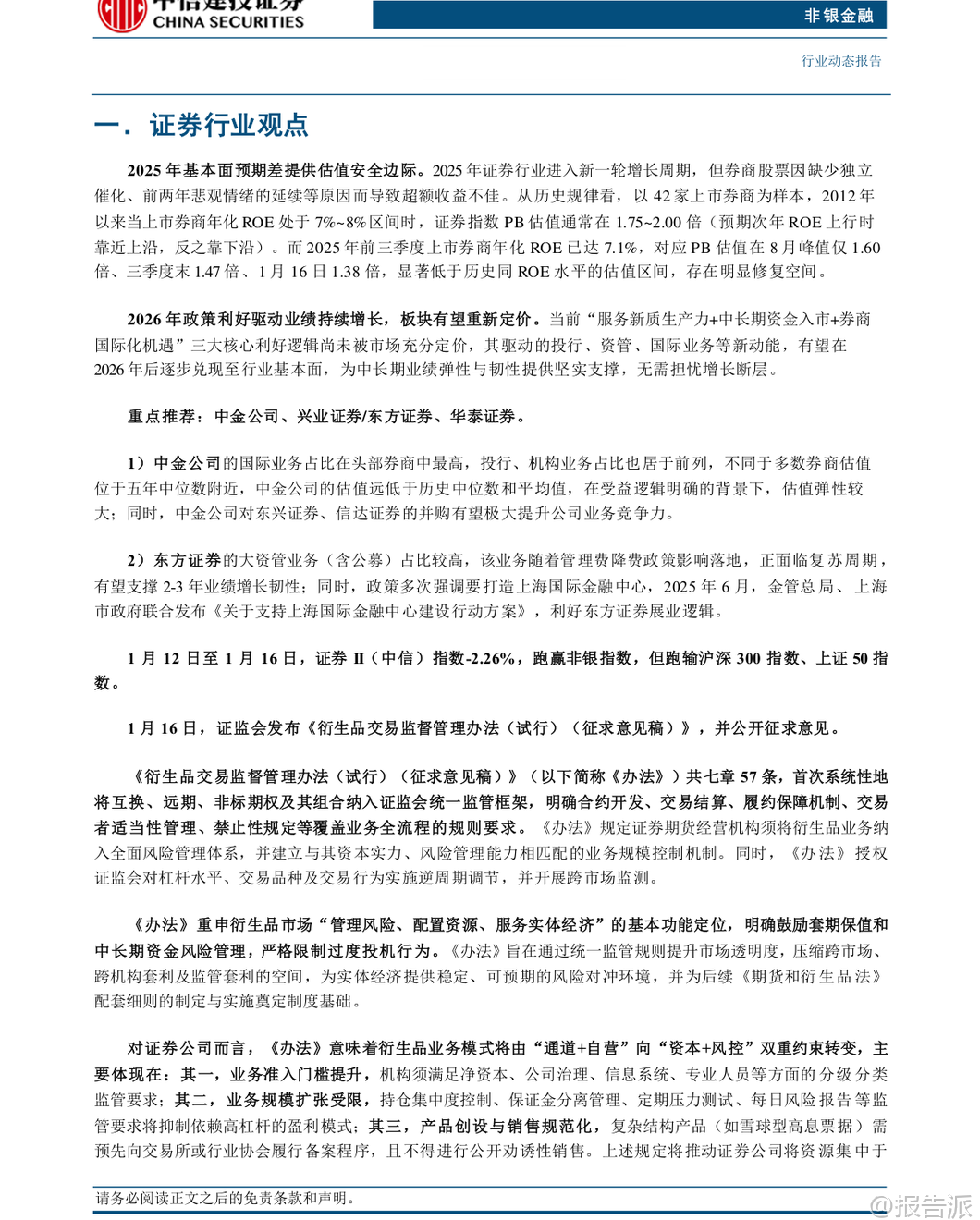 : 本文由【报告派】研读,输出观点仅作为行业分析!原文标题:2026-01-19-中信建投-非银金融行业:非银行情也许迟到,不会缺席发布时间:2026年出品方:中信建投文档页数:27页 以上截图为原文节选内容,输出观点仅作 ...