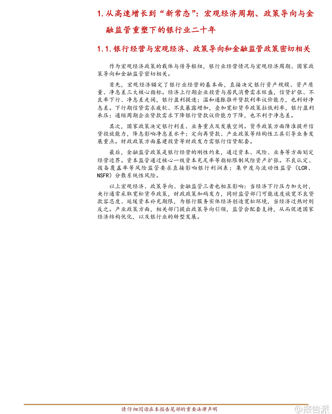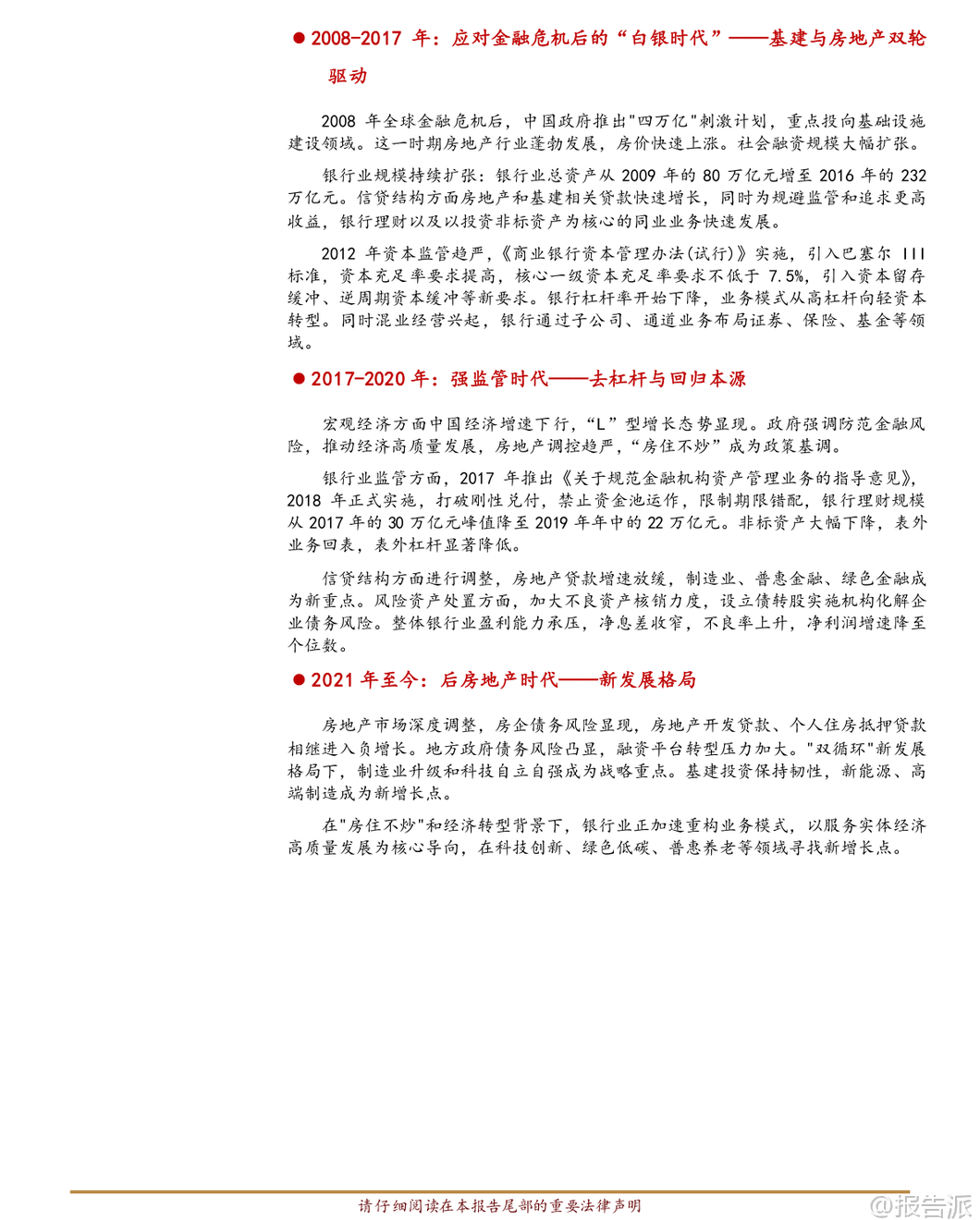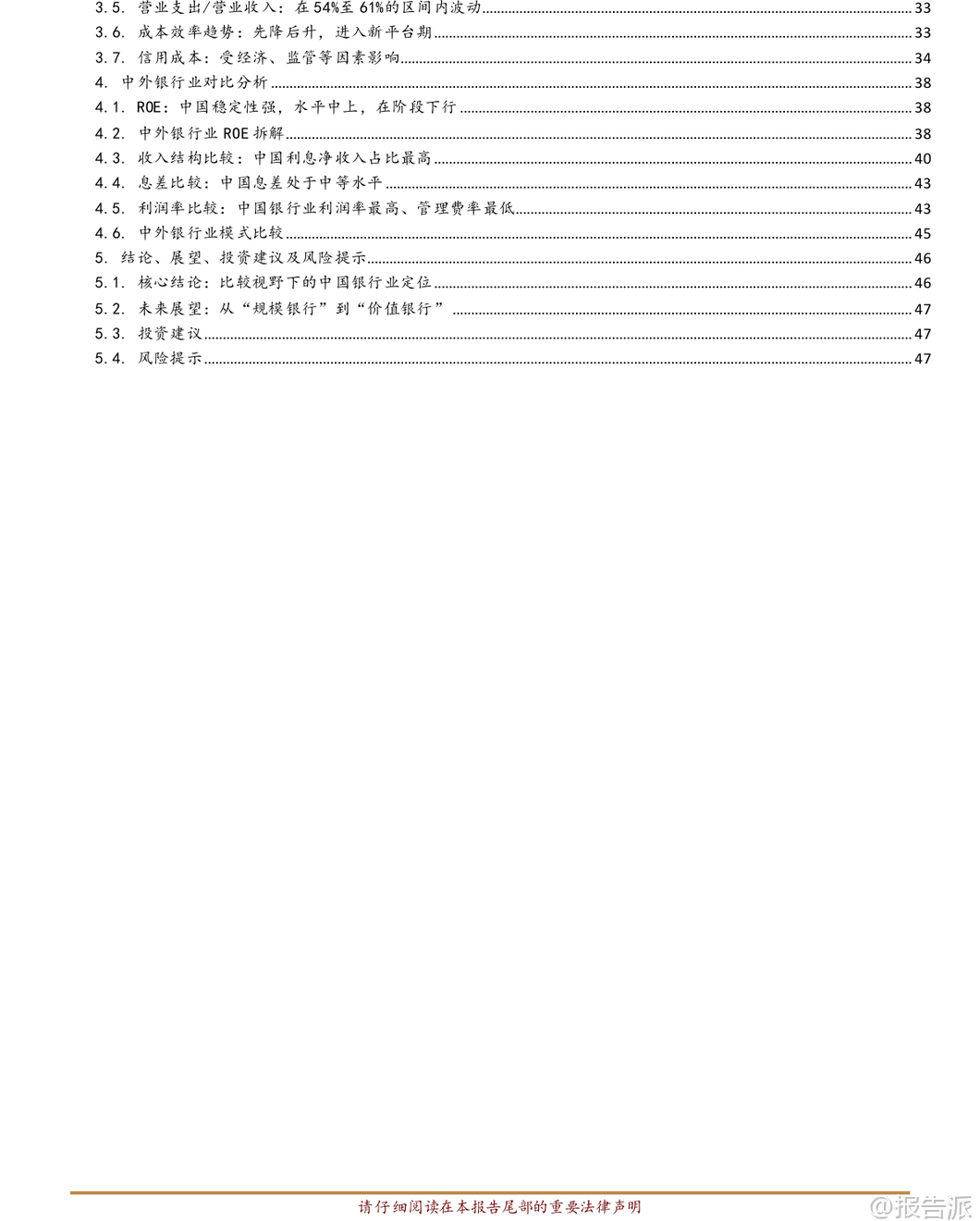 | 中国银行业正经历一场深刻的历史性转型,从过去依赖规模扩张的“黄金时代”,迈入以价值创造为核心的“新常态”。 这份由华西证券发布的深度研究报告,系统回顾了中国银行业近二十多年的发展历程,并通过与美国、欧洲、日本等主要经济体银行业的对比分析,揭示了当前行业所处的阶段、面临的挑战以及未来的战略方向。 报告指出,尽管近年来中国银行业的净资产收益率(ROE)进入阶段性下行区间,目前约为9.50%,在全球主要经济体中仍处于中上水平,且历史波动最小,体现出极强的经营韧性和稳定性。 然而,这一下行趋势背后反映出驱动增长的核心动能已发生根本转变。 杜邦分解显示,资本约束趋严(RWA/Equity下降)是ROE下滑的首要原因,其次则是净息差持续收窄导致的资产回报率(ROA)降低。 这意味着依靠高杠杆和利差红利的时代已经结束,行业彻底告别了过去的“规模驱动”模式。 在经营模式方面,报告强调中国银行业对净利息收入的依赖度高达39.92%,远高于国际同业,而作为现代金融中介核心能力体现的手续费及佣金收入占比仅为7.40%,明显偏低。 这种收入结构的失衡不仅限制了盈利的多样性,也暴露了在财富管理、投资银行、交易服务等高端金融服务领域的短板。 相比之下,美国银行业展现出“全能型”特征:依托长期经济增长、较高的净息差以及多元均衡的收入结构(尤其在财富管理和投行业务表现强劲),实现了高且稳定的盈利能力。 其高管理费率投入支撑了专业能力建设,形成了“高投入—高回报”的良性循环。 而欧洲与日本银行业则属于“适应型”模式,在长期低利率甚至负利率环境下,息差极度微薄。 为求生存,这些地区的银行普遍采取增持低风险权重资产(实现高Asset/RWA)、大力发展非息收入等方式应对,但整体盈利水平较低,增长乏力,难以形成有效突破。 中国银行业正处于从“规模驱动、利息主导”向“轻重平衡、多元驱动”的关键转型期,可称为“转型中的效率领先者”。 虽然在成本控制和利润率方面具备突出优势,但收入结构单一的问题亟待解决。 未来必须在稳固宏观经济基本盘的同时,全力突破中间业务收入的“天花板”。 展望未来,中国银行业的发展路径将在宏观经济走势、监管政策导向与自身转型节奏的共同作用下展开,核心是从传统的“规模银行”迈向现代化的“价值银行”。 宏观与息差层面,将构筑稳健的基本盘。 银行业与实体经济共生共荣的关系不会改变。 在经济高质量发展和现代化产业体系建设过程中,围绕科技创新、绿色低碳、普惠金融、养老金融等领域的信贷需求将成为新的增长点。 尽管净息差面临持续下行压力,但通过负债端成本的有效管控、资产端结构的优化调整(如提高科技、绿色、普惠贷款占比),以及央行稳健的货币政策支持,息差有望在新的中枢水平上保持相对稳定,成为行业转型的压舱石。 轻资本转型则被视为开辟成长“第二曲线”的关键。 在资本约束常态化与贷款增速放缓的新常态下,发展资本节约型业务已成为提升ROE、穿越经济周期的必然选择。 国际经验表明,财富管理与资产管理、投资银行、交易银行及托管业务将是未来转型的重要方向。 这些业务不仅能带来稳定的非息收入,还能增强客户黏性,提升综合服务能力。 投资建议方面,报告对中国经济的长期发展前景保持信心,并在此基础上持续看好银行业的长期投资价值,维持“推荐”评级。 建议投资者重点关注两类机构:一是具备强大客户基础、全面综合服务能力以及较强风险抵御能力的国有大型银行和头部股份制银行;二是在细分领域如财富管理、小微金融、科技赋能等方面拥有鲜明特色和卓越执行力的优质区域性银行。 当然,风险也不容忽视。 主要包括:宏观经济复苏不及预期可能影响资产质量和信贷需求;房地产及相关领域潜在风险若演化超预期,将对银行资产质量构成冲击;此外,利率进一步快速下行可能导致息差再度收窄,加剧盈利压力。 总体来看,中国银行业正站在新旧动能转换的关键节点。 过去的高速增长模式难以为继,未来的竞争力将更多体现在精细化管理、差异化服务、创新驱动和价值创造能力上。 谁能率先完成从“规模扩张”到“价值创造”的跨越,谁就能在下一个周期中占据主动,赢得未来。 本文由【报告派】研读,输出观点仅作为行业分析! 原文标题:原文标题:从规模扩张到价值创造:中国银行业二十年演进与中外模式比较——基于“黄金时代”到“新常态”的基本面深度复盘 发布时间:2026年 报告出品方:华西证券