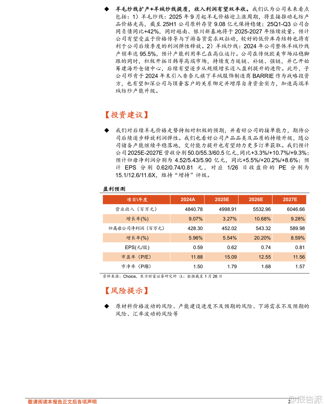 原文标题:原文标题:2026-01-27-东方财富证券-东方财富证券-新澳股份(603889)深度研究:宽带战略助力品类及海外扩张,毛价上升周期或迎新机遇