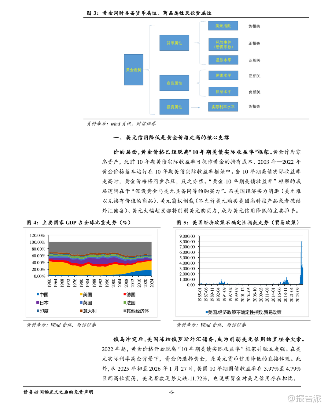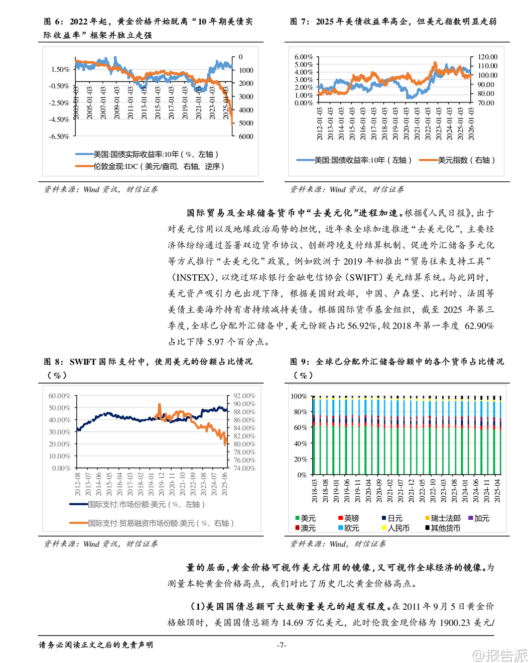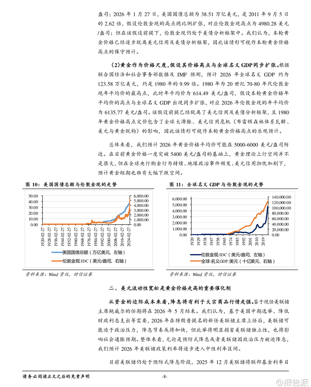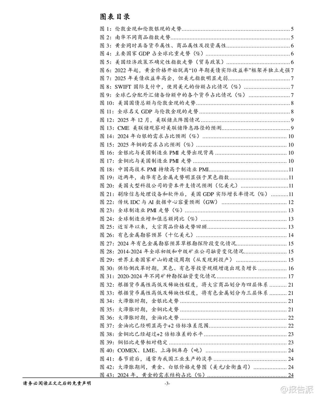 | 近期,财信证券发布《大宗商品专题报告》,深入剖析了2026年全球大宗商品市场的运行逻辑与未来趋势。 报告指出,本轮大宗商品涨价的核心驱动力来自美元信用弱化、全球产业链重构以及供需格局的持续紧张,尤其在黄金等贵金属已率先大幅上涨的背景下,预计2026年涨价行情将向工业金属和能源品扩散。 报告认为,美元信用降低是此轮大宗商品牛市的根本支撑。 俄乌冲突后美国冻结他国外汇储备的行为,严重削弱了美元作为全球储备货币的信任基础。 SWIFT支付体系中美元占比下降、多国加速“去美元化”、央行持续增持黄金等现象,均表明黄金正在脱离传统“10年期美债实际收益率”的定价框架。 基于历史债务规模与全球名义GDP的对比测算,2026年伦敦金现均价有望达到5000-6000美元/盎司区间,即便短期出现剧烈波动,其易涨难跌的趋势仍将延续。 从需求端看,新经济发展成为重要引擎。 新能源汽车、光伏风电、AI数据中心等产业对有色金属的需求激增。 例如,单辆电动车用铜量是燃油车的4倍;2026-2030年,全球数据中心耗铜量预计将以23.2%的复合年增长率攀升,到2030年用铜量或占全球消费总量的5%。 同时,全球“再工业化”浪潮兴起,美国《制造业回流》、德国《国家工业战略2030》、日本供应链回迁政策等,都增加了对原材料的长期需求。 供给端则面临长期资本开支不足的硬约束。 全球有色金属勘查预算在2012年见顶后持续下滑,尽管价格回升,但初级矿业公司融资困难,导致新矿项目稀缺。 矿山建设周期普遍长达10年以上,叠加资源品位下降(如全球铜矿平均品位已跌破0.7%),供给弹性极低。 此外,“反内卷”政策和地缘政治风险(如印尼镍出口管制、刚果钴管控)进一步加剧了供给扰动。 综合来看,2025-2026年中国十种有色金属产量预计年均增长1.5%,而同期消费量年均增速预计达2.2%,供需缺口将持续存在。 分品种看,金、锌、铅的供需格局有望改善,而铜等关键工业金属紧平衡状态难改。 报告最核心的观点在于:大宗商品的涨价行情正从贵金属向其他品类扩散。 历史规律显示,大周期通常始于贵金属(抗通胀、避险属性强),随后传导至工业金属(受益于经济复苏),最后轮动至能源和农产品。 当前,金油比(85.65)和金铜比(899.64)均已远超近2年均值及+2倍标准差水平,表明金价相对油价、铜价已明显超涨。 这种极端分化预示着原油和工业金属存在强烈的补涨动能。 具体操作策略上,报告建议:2026年应重点关注处于扩圈阶段的工业金属(如铜、铝)和能源品(原油、化工),把握其补涨机会。 日历效应也支持这一判断——春节后中国制造业复工将推升铜需求,而上海期货交易所库存偏低,将进一步支撑铜价。 待行情进入尾声缩圈阶段(可能在2027年后),可考虑“做多黄金、做空其他”的多空策略,因黄金的上涨持续性最强。 此外,报告提醒投资者关注权益市场信号。 周期股(如锂矿、猪产业指数)的价格变动往往领先于商品现货价格,可作为预判周期拐点的重要参考。 虽然波动率指标对判断黄金长周期顶部作用有限,但仍是短期风险监控的辅助工具。 综上所述,该报告描绘了一幅由货币信用危机引发、供需失衡强化的大宗商品全景图。 在“布雷顿森林体系III”的叙事下,黄金锚定价值重估,带动整个商品链条重定价。 对于投资者而言,2026年的主线并非追逐已高飞的黄金,而是布局即将启动补涨的工业金属与能源品,紧跟“涨价扩散”的轮动节奏。 本文由【报告派】研读,输出观点仅作为行业分析! 原文标题:原文标题:2026-01-30-财信证券-财信证券-大宗商品专题报告:大宗商品行情扩散,关注工业金属及能源品 发布时间:2026年 报告出品方:财信证券 文档页数:31页