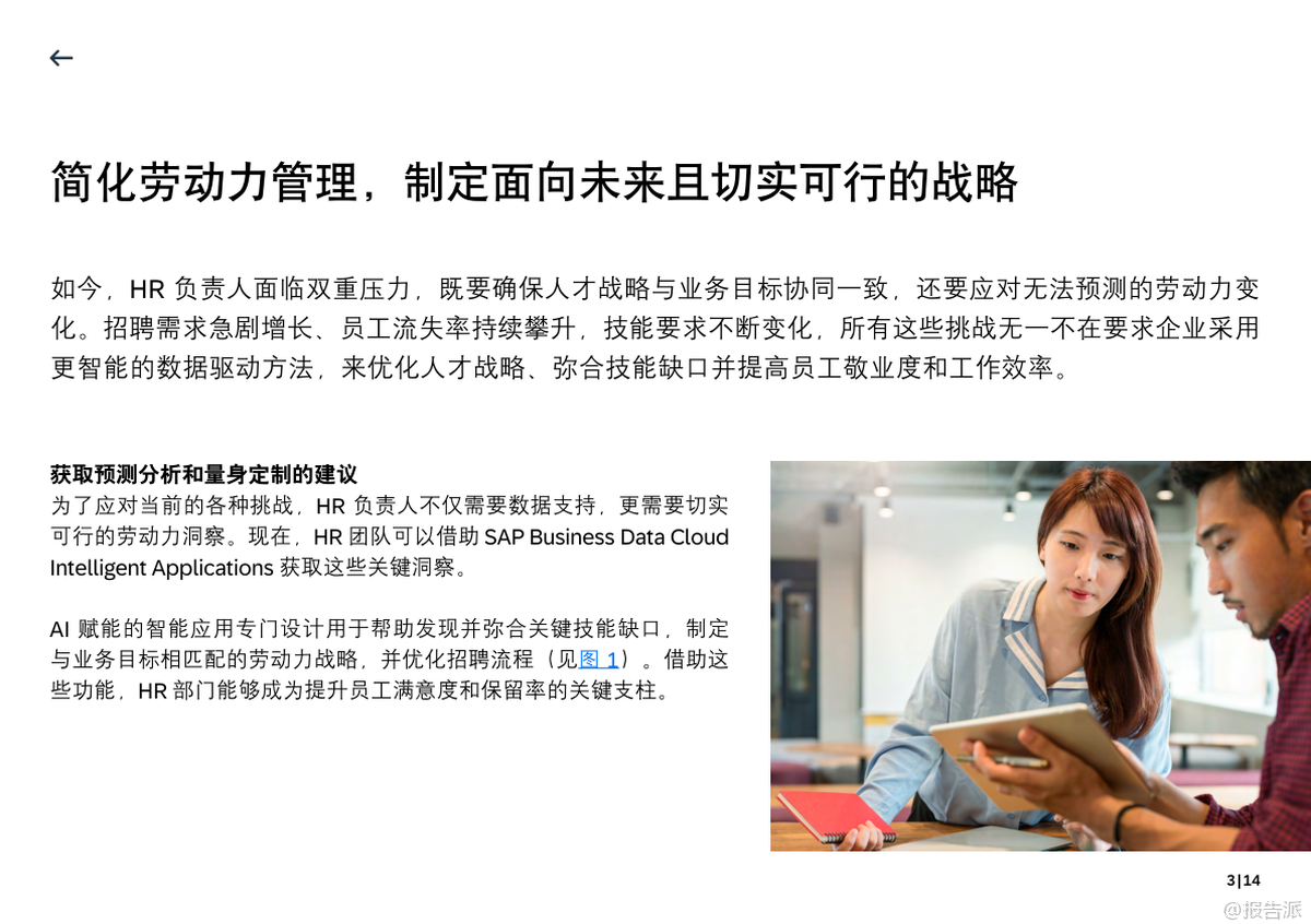 | 在数字化转型加速的背景下,企业正面临前所未有的人才管理挑战:招聘需求激增、员工流失率上升、技能迭代加快。 传统的经验驱动型HR管理模式已难以应对复杂多变的组织环境。 思爱普(SAP)最新发布的《用数据优化人才决策的五个途径》报告指出,通过AI驱动的智能数据分析,企业可以从被动响应转向主动规划,真正实现人才战略与业务目标的高度协同。 报告强调,当前HR面临的核心痛点在于“数据孤岛”——招聘、绩效、学习、薪酬等系统各自为政,导致决策缺乏全局视角。 而破解之道在于构建统一的业务数据云平台,打通HR、财务、供应链等多部门数据链路,形成可行动的综合性劳动力洞察。 SAP Business Data Cloud Intelligent Applications正是为此设计,它融合AI、预测分析与自动化技术,帮助HR团队获取实时、情境化的决策支持。 其中,AI员工助手Joule成为连接洞察与行动的关键桥梁。 它不仅能自动生成报告、预警流失风险,还能基于自然语言交互提供个性化建议,让管理者在人才发展、学习激励等场景中做出更敏捷、精准的判断。 这种智能化升级,使HR从行政事务执行者转变为战略价值创造者。 报告重点提出了五大数据驱动的应用场景。 第一是劳动力与薪酬洞察,通过分析人才分布、流动趋势和薪酬结构,企业可识别不公平现象,优化激励机制,增强员工信任感。 第二是技能洞察,借助可视化工具比对现有能力与未来业务所需技能的差距,提前布局人才培养路径。 第三是学习管理,追踪培训成果与员工晋升、留存之间的关联,确保学习投入真正转化为组织竞争力。 第四是招聘管理,通过分析渠道效能、填补周期等指标,识别流程瓶颈,提升招聘效率与质量。 第五是职业与人才发展,识别高潜员工,构建继任梯队,推动人才发展与企业战略同频共振。 尤为值得关注的是,这些智能应用并非孤立存在,而是嵌入在SAP SuccessFactors等一体化HCM解决方案中,实现数据流与工作流的无缝衔接。 这意味着企业不仅能看见问题,更能快速采取行动。 例如,当系统识别出某关键岗位存在技能缺口时,可自动触发学习计划推荐或内部人才搜寻流程。 最终,报告呼吁HR领导者重新定义数据的价值——不再是年终汇报的静态图表,而是驱动日常决策的动态引擎。 通过整合统一数据视图、运用预测性分析、引入AI辅助决策,企业能够打造更具韧性、敏捷性和战略性的员工队伍。 在不确定性成为常态的时代,谁掌握了数据驱动的人才决策能力,谁就能在竞争中赢得先机。 出品方:思爱普 发布时间:2025年