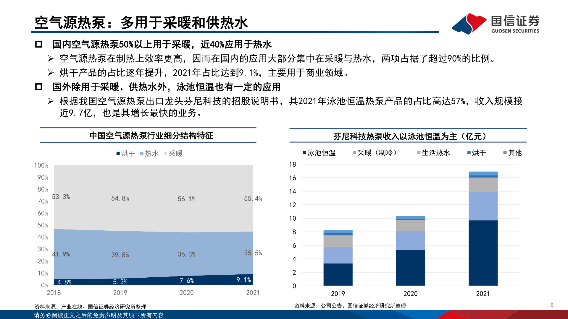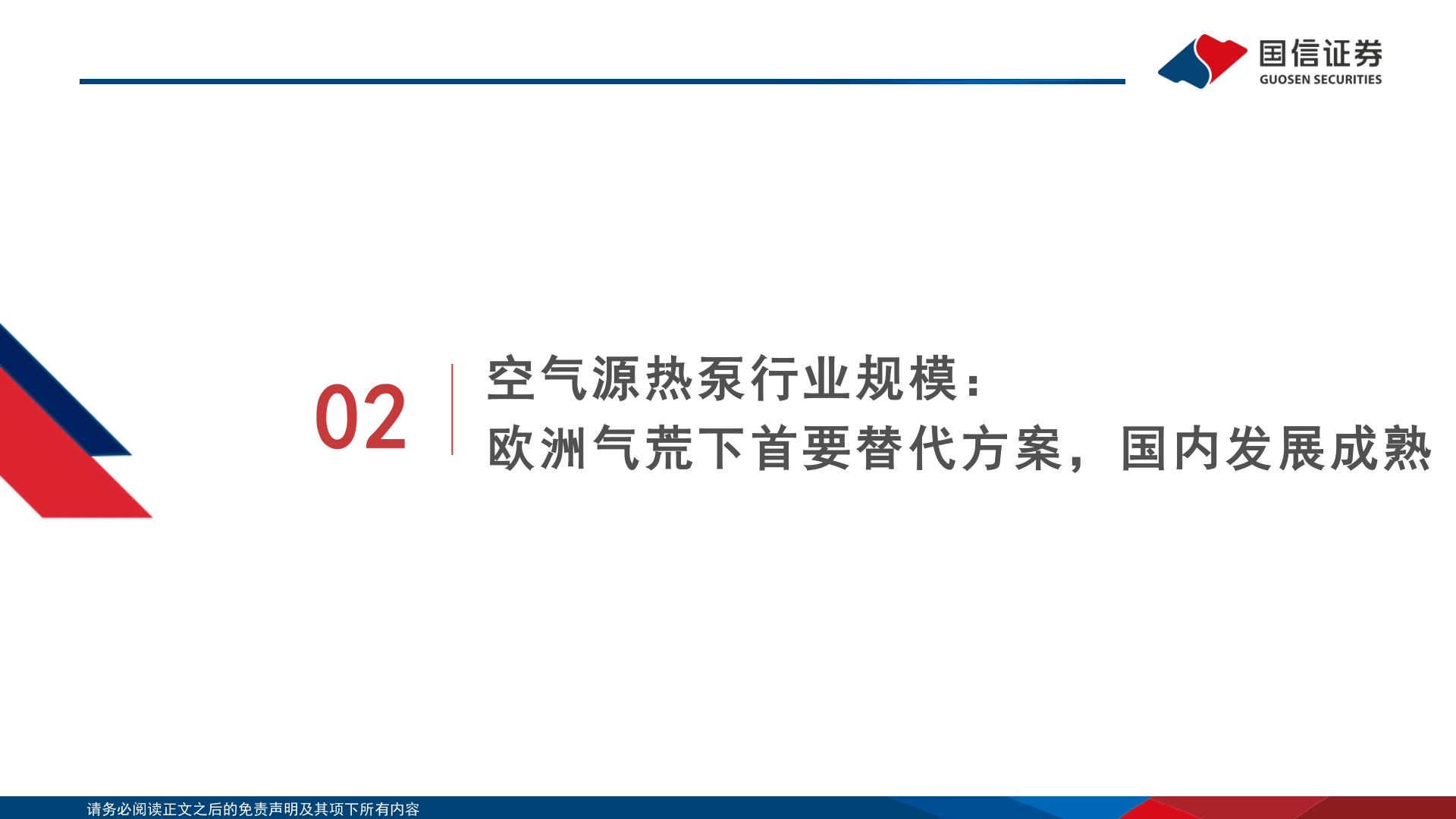 欧洲热泵渗透率仍低,较高的增长预期受能源危机影响加速。能源紧张背景下,2021年欧洲热泵销量同比增长34%至 218万台,增速创下近10年新高。2022年受到大环境的影响,欧盟各国加快了能源转型的步伐,纷纷推出购置补贴 等刺激政策,促进热泵的销售。EHPA(欧洲热泵协会)预计,2026年欧洲热泵销量将实现实现翻倍,达到400万台。