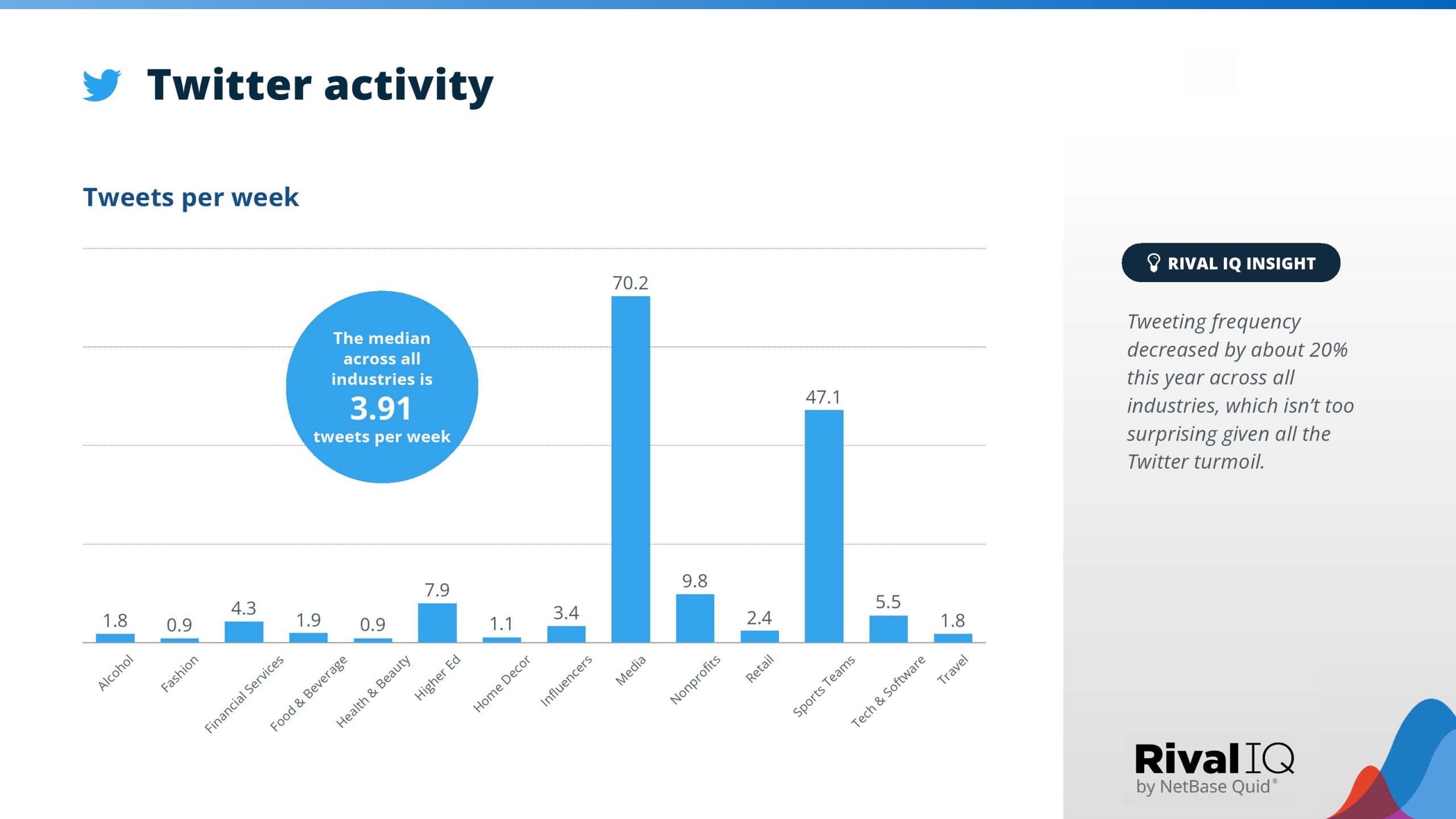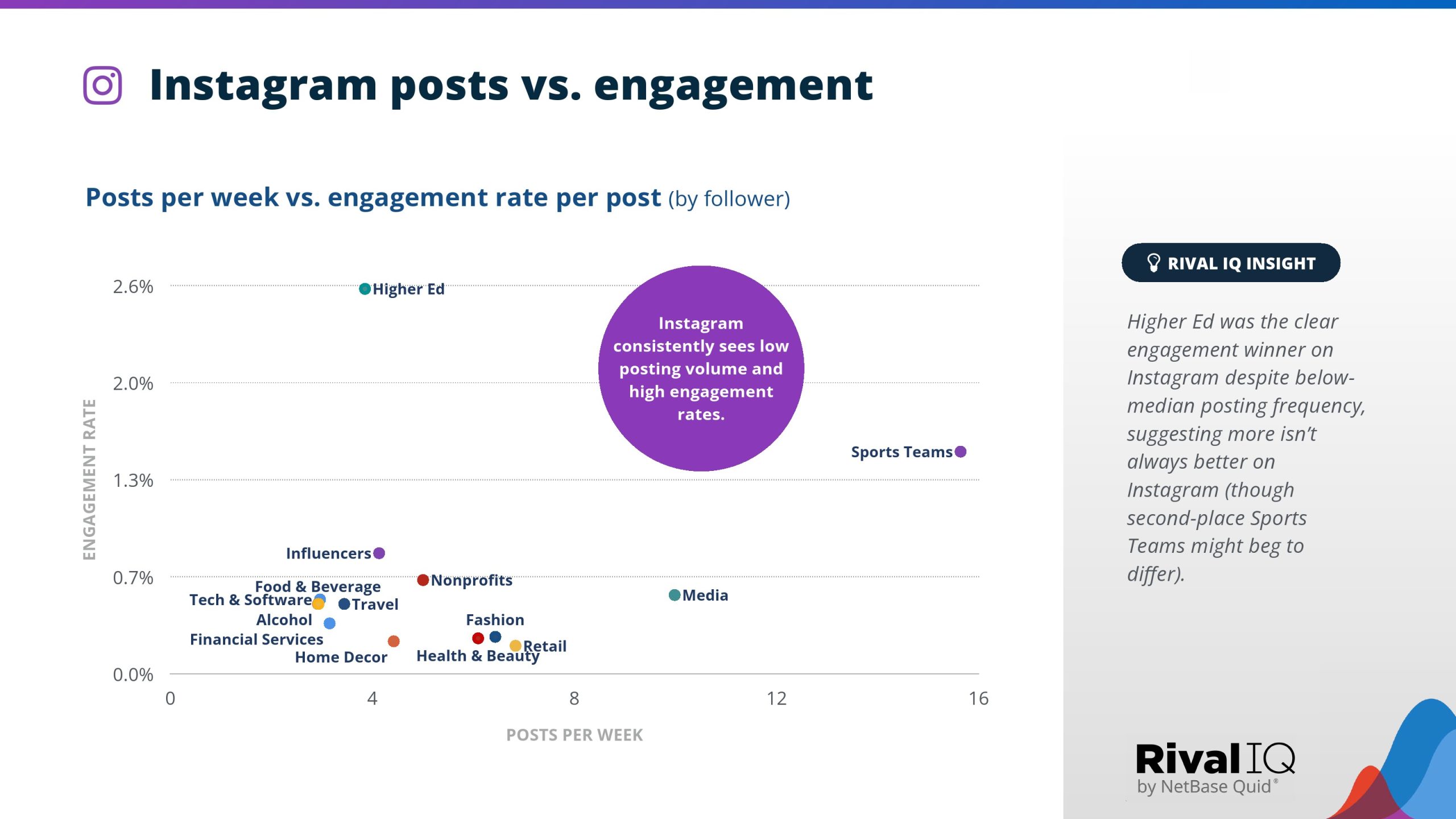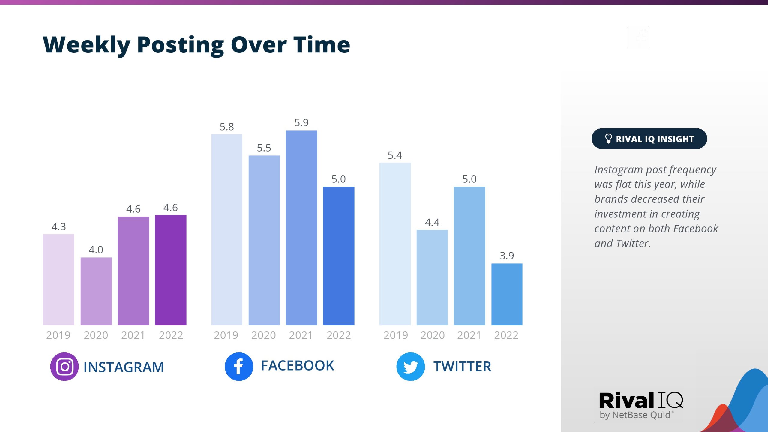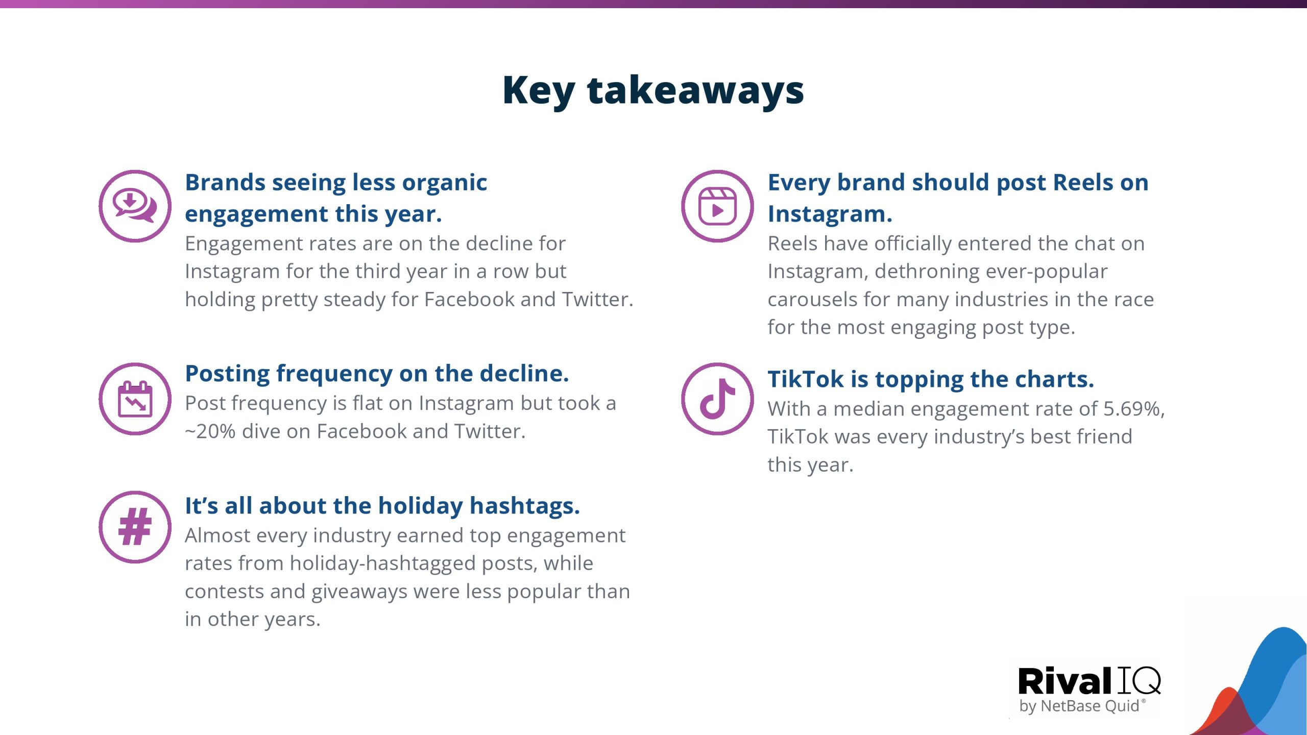RivalIQ发布了“2023年社交媒体行业基准报告”。今年的品牌有机参与度有所下降。Instagram的参与度连续三年下降,但Facebook和Twitter的参与度保持稳定。 发布频率也在下降。Instagram上的发帖频率持平,但Facebook和Twitter上的发帖率下降了约20%。 这都是关于节日标签的。几乎每个行业都从节日主题帖子中获得了最高的参与度,而比赛和赠品则不如其他年份受欢迎。 每个品牌都应该在Instagram上发布Reels。Reels已经正式进入Instagram的聊天室,在最吸引人的帖子类型的竞争中,它取代了许多行业一直使用的Carousels。 TikTok在排行榜上名列前茅,平均参与度为5.69%,是今年各个行业最好的伙伴。 Facebook参与度 今年,全行业的Facebook中值略有下降。科技和软件品牌略有增长,零售和旅游保持平稳。 Facebook广告活动 今年,Facebook上的发帖频率中值下降了几个百分点。 Facebook帖子与互动 意见领袖(很少发帖)和运动团队(经常发帖)在Facebook上获得了一致的高分,尽管发帖频率有很大的差异。 Instagram互动率 今年,Instagram的互动率下降了约30%,这并不是勤奋的内容创作者所希望的。 Instagram广告活动 今年在Instagram上,所有行业的平均发帖频率都增长了一点点。 Instagram帖子与互动 尽管在Instagram上的发帖频率低于媒体,但高等教育显然是参与度的赢家,这表明在Instagram上更多并不总是更好,尽管第二名的运动业可能会有所不同。 Twitter参与度 Twitter上的参与度几乎持平,这提醒我们,有时没有消息就是好消息。 Twitter广告活动 今年,所有行业的平均发帖频率都下降了约20%,考虑到Twitter的动荡,这并不太令人惊讶。 推特推文与互动 今年,经常发推特的高等教育和运动团队在推特上遥遥领先,但并不是发帖频率越高就越好。