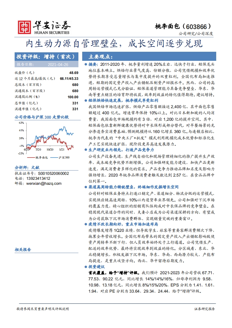 2021-04-26-华安证券-桃李面包-内生动力源自管理壁垒,成长空间逐步兑现