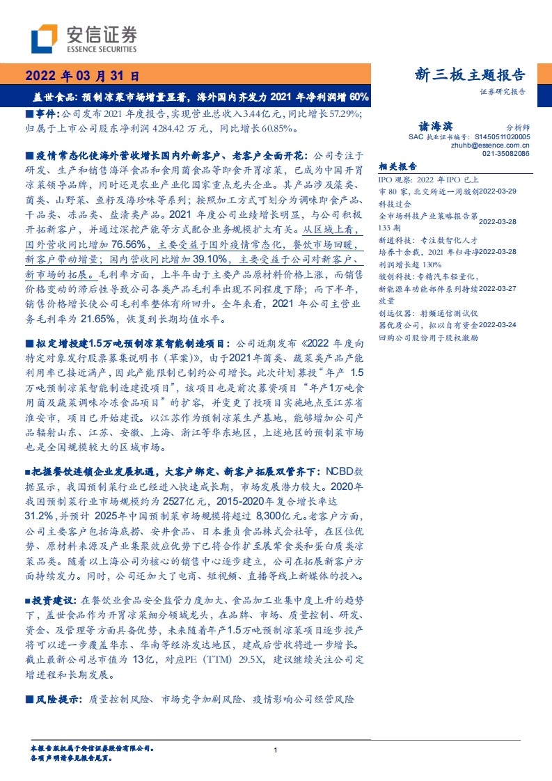 2022-04-01-安信证券-盖世食品-新三板主题报告:盖世食品:预制凉菜市场增量显著,海外国内齐发力2021年净利润增60%