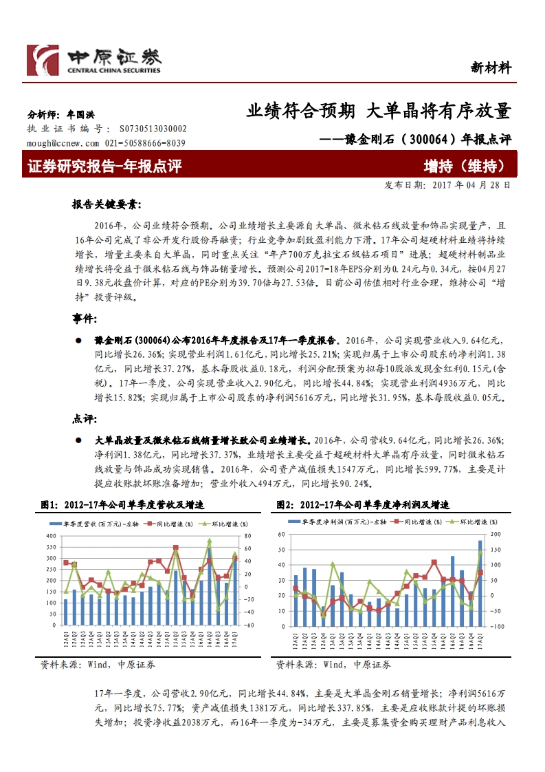 2017-05-09-中原证券-豫金刚石-年报点评:业绩符合预期 大单晶将有序放量
