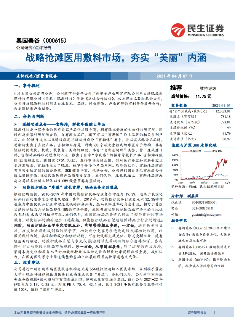 2021-04-07-民生证券-奥园美谷-战略抢滩医用敷料市场,夯实“美丽”内涵
