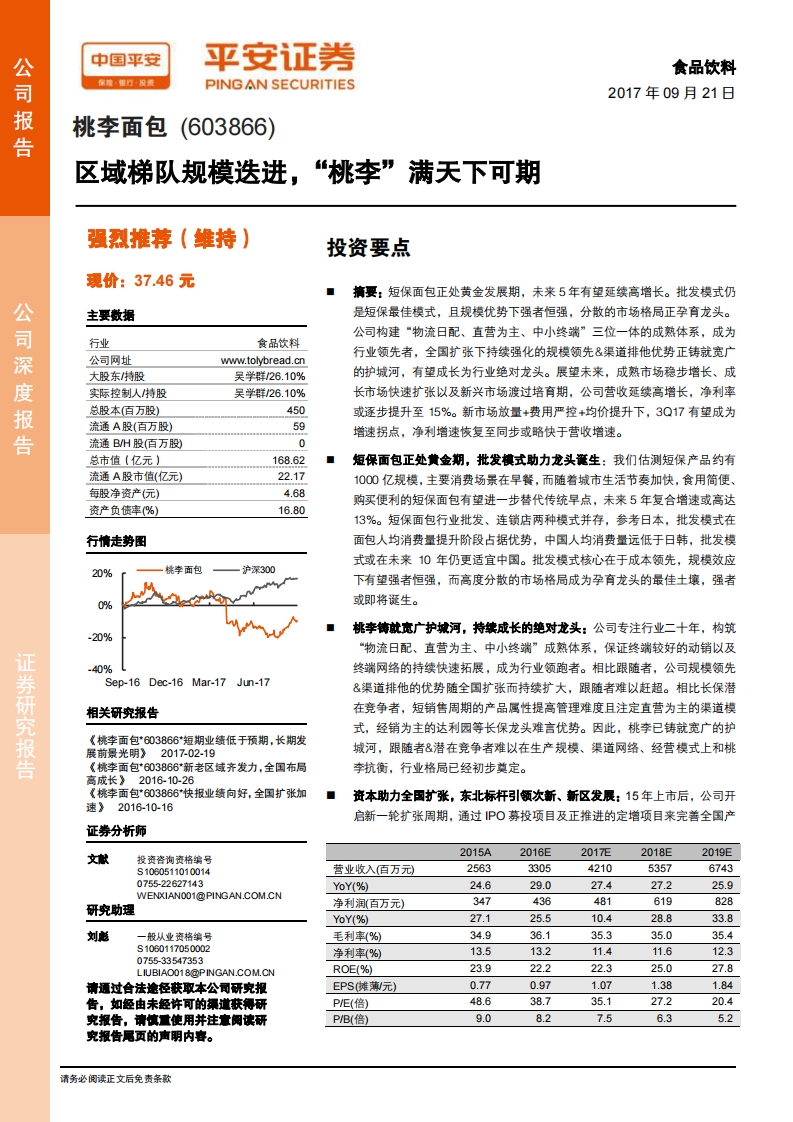 2017-09-21-平安证券-桃李面包-区域梯队规模迭进,“桃李”满天下可期