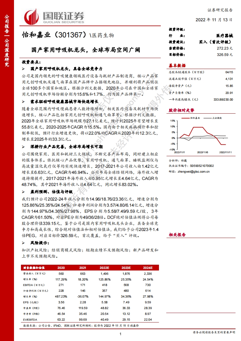 2022-11-14-国联证券-怡和嘉业-国产家用呼吸机龙头,全球布局空间广阔