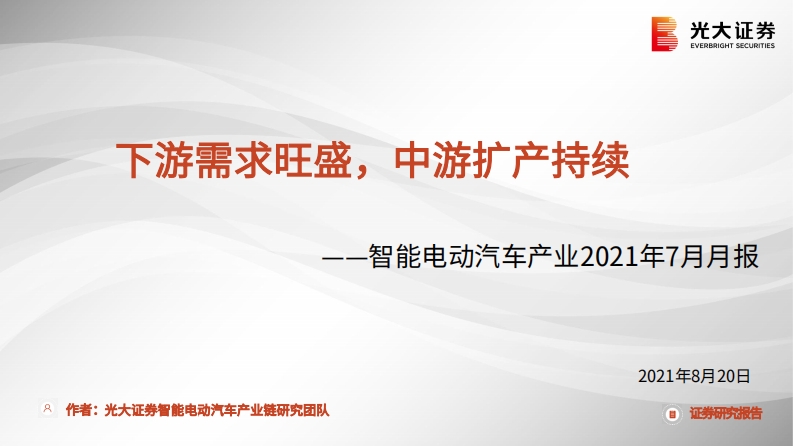 智能电动汽车产业2021年7月月报:下游需求旺盛,中游扩产持续