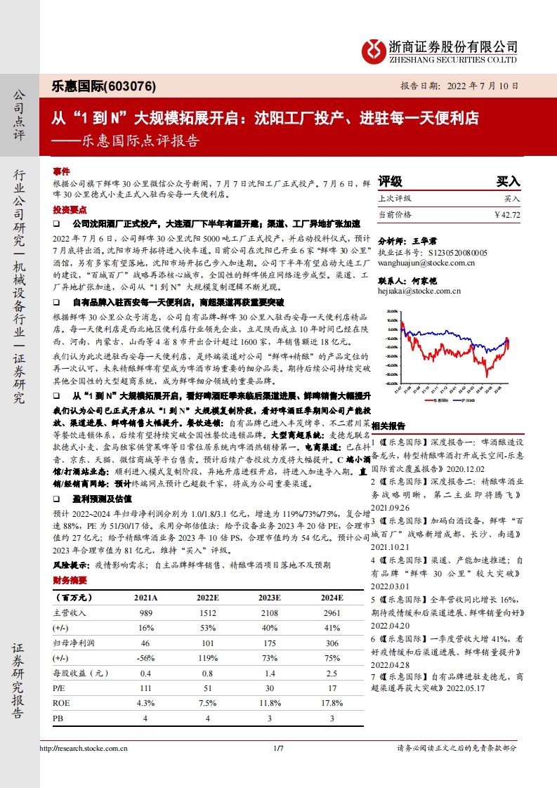 2022-07-11-浙商证券-乐惠国际-乐惠国际点评报告:从“1到N”大规模拓展开启:沈阳工厂投产、进驻每一天便利店