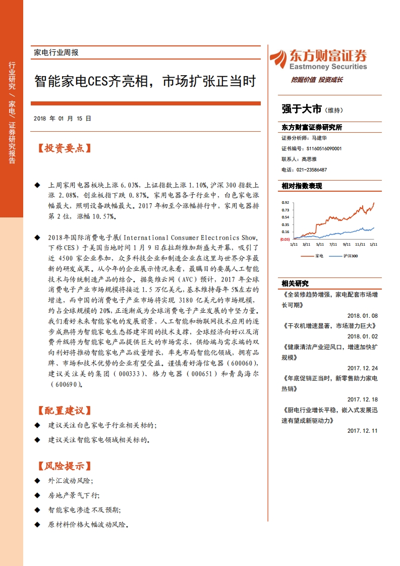 家电行业周报:智能家电CES齐亮相,市场扩张正当时