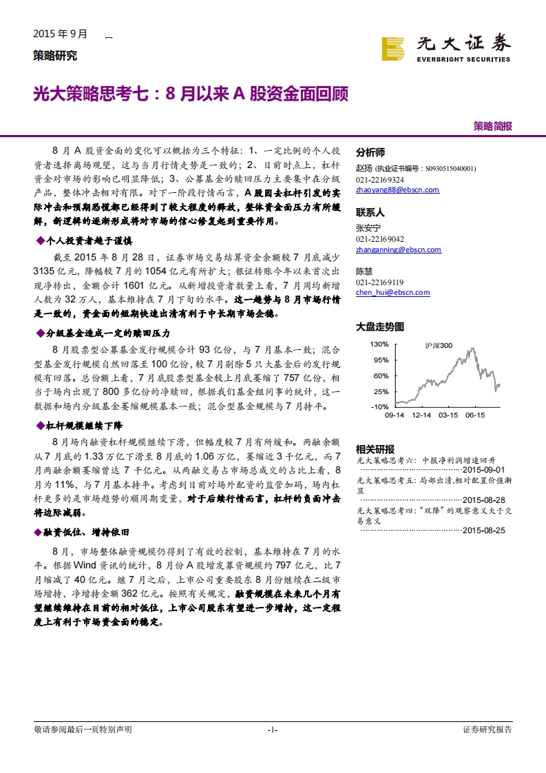 20150914-光大证券:光大策略思考七-8月以来A股资金面回顾-6页