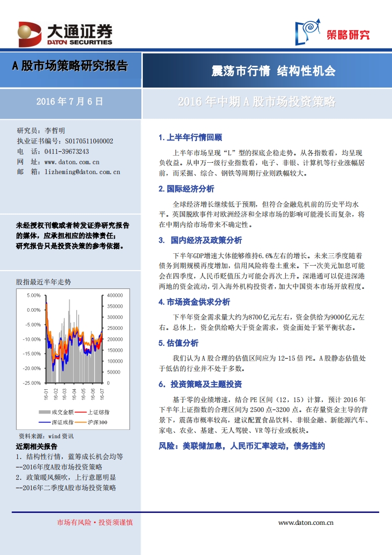 20160706-国防军工:-大通证券-2016年中期A股市场投资策略-震荡市行情,结构性机会-17页