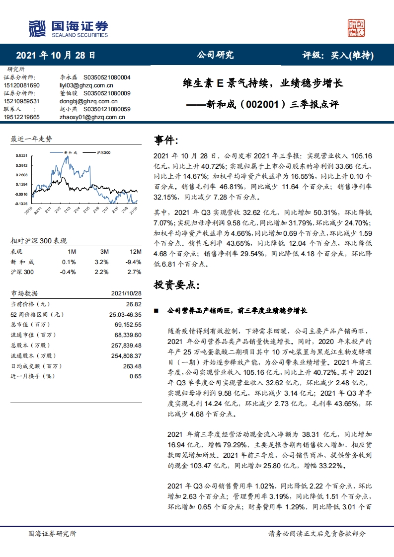 2021-10-30-国海证券-新和成-三季报点评:维生素E景气持续,业绩稳步增长