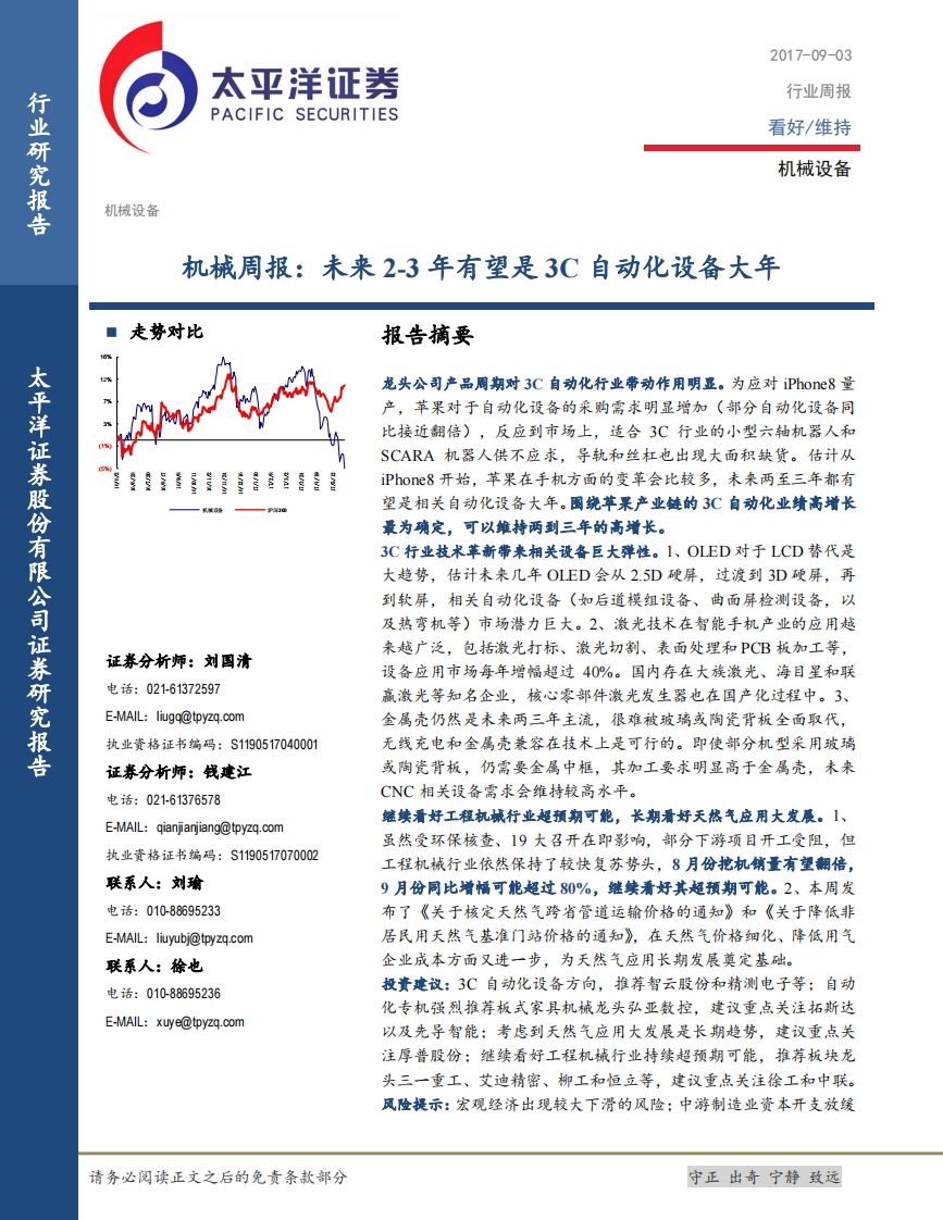 机械行业周报:未来2-3年有望是3C自动化设备大年