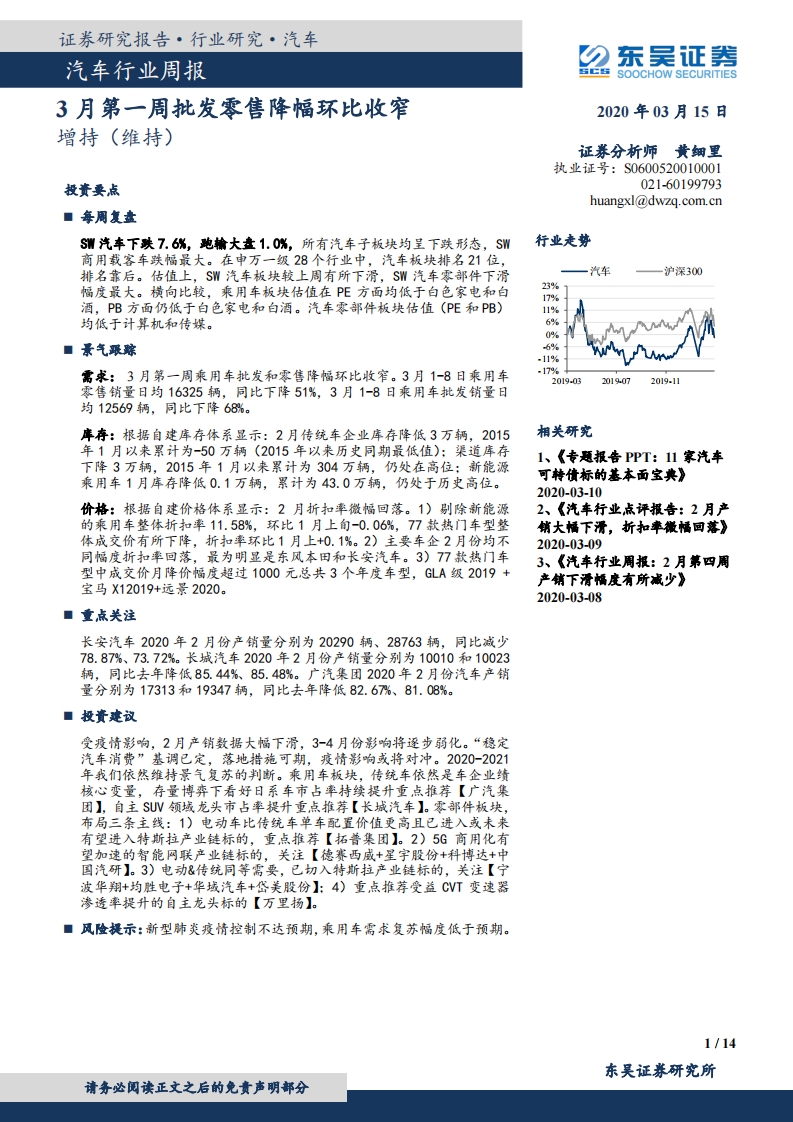 汽车行业周报:3月第一周批发零售降幅环比收窄