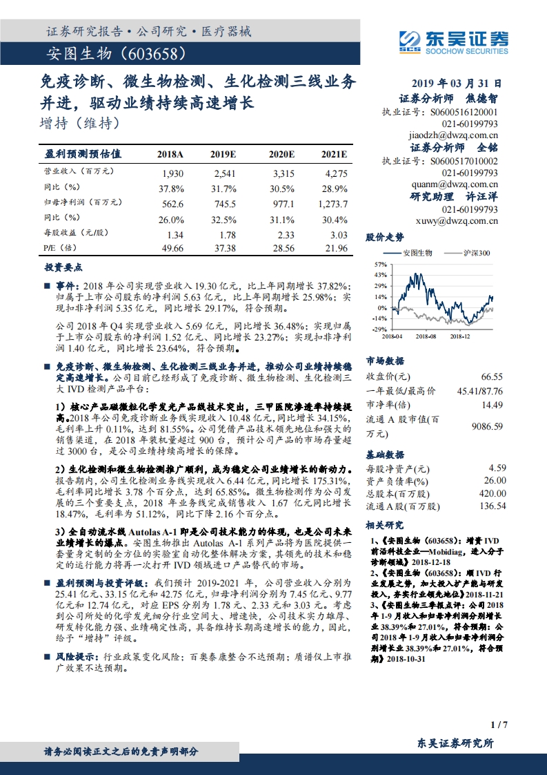 2019-04-01-东吴证券-安图生物-免疫诊断、微生物检测、生化检测三线业务并进,驱动业绩持续高速增长