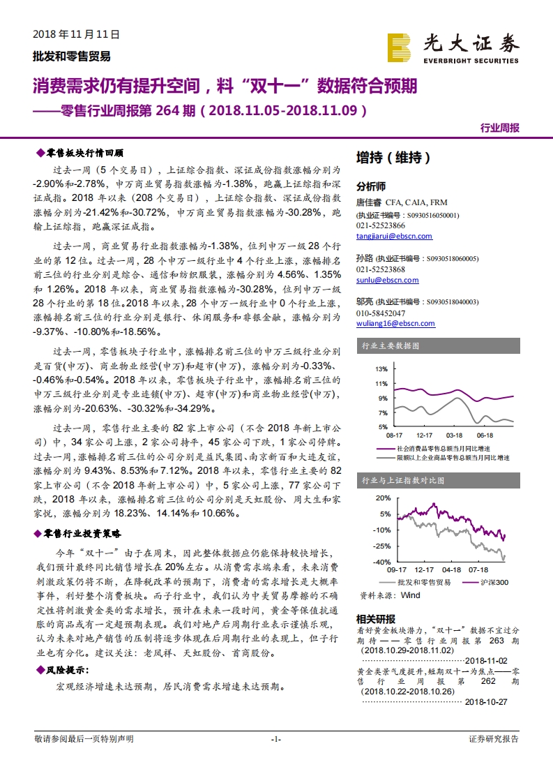 零售行业周报第264期:消费需求仍有提升空间,料“双十一”数据符合预期