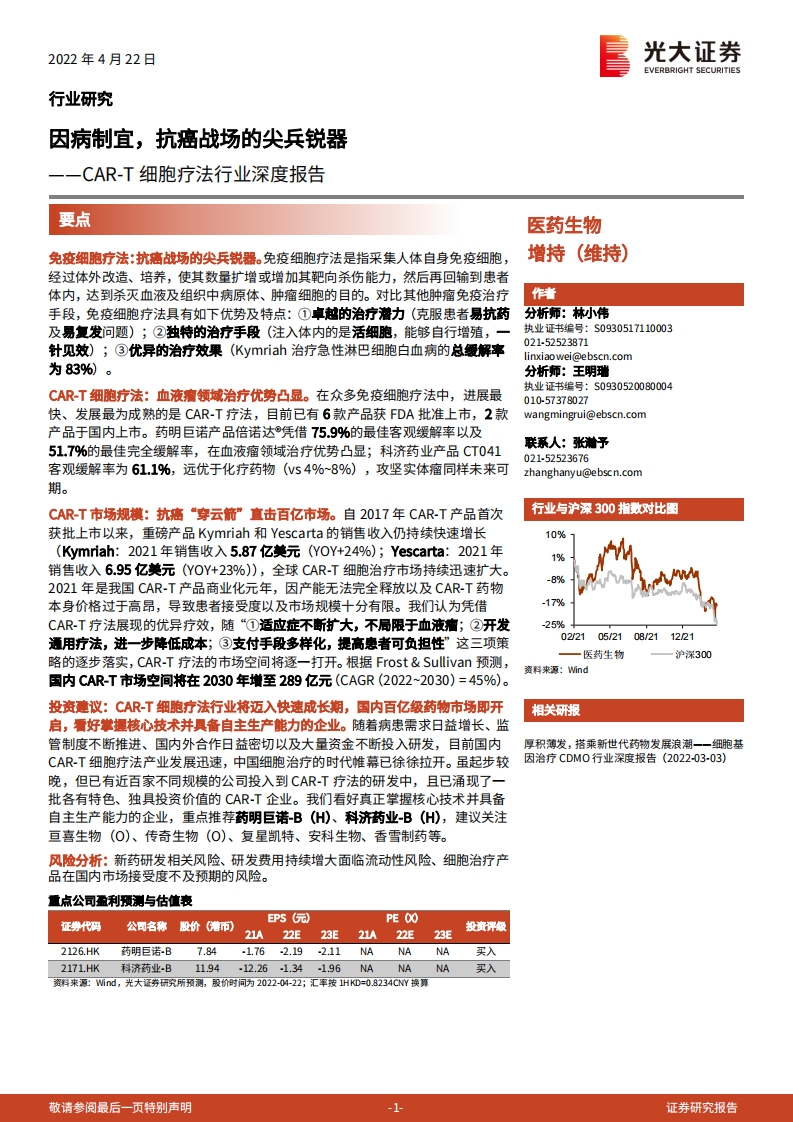 医药生物:CAR-T细胞疗法行业深度报告-因病制宜,抗癌战场的尖兵锐器