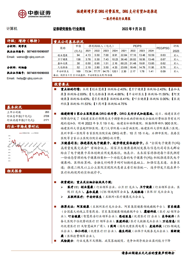 2022-09-27-中泰证券--医疗科技行业周报:福建新增多家DRG付费医院,DRG支付有望加速推进