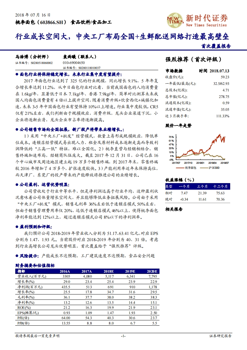 2018-07-17-新时代证券-桃李面包-首次覆盖报告:行业成长空间大,中央工厂布局全国+生鲜配送网络打造最高壁垒