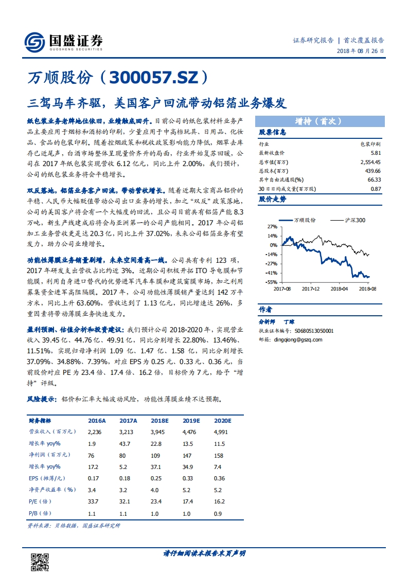 2018-08-27-国盛证券-万顺股份-三驾马车齐驱,美国客户回流带动铝箔业务爆发