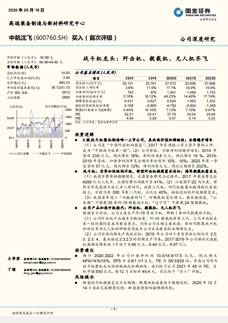 2020-05-19-国金证券-中航沈飞-战斗机龙头:歼击机、舰载机、无人机齐飞